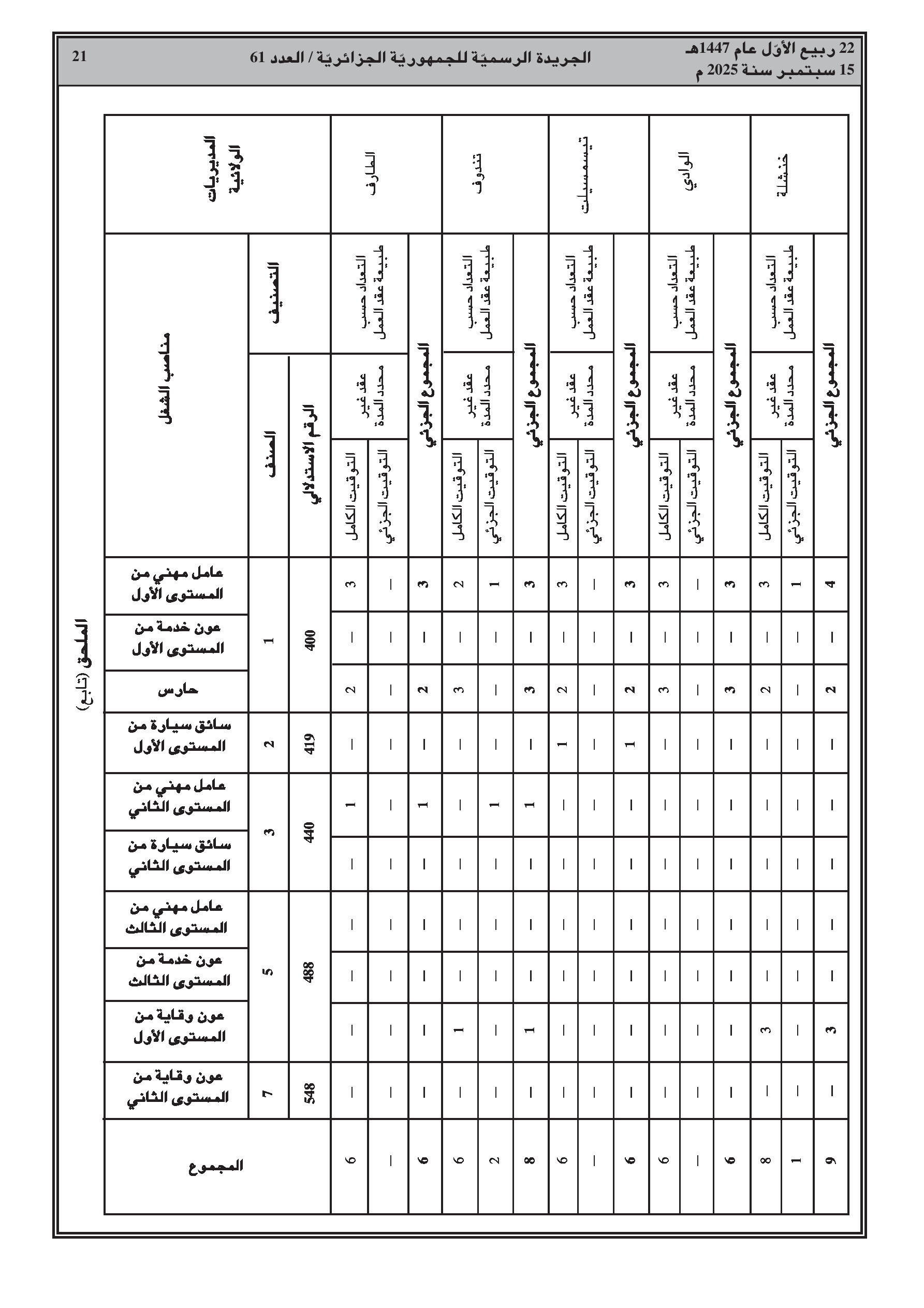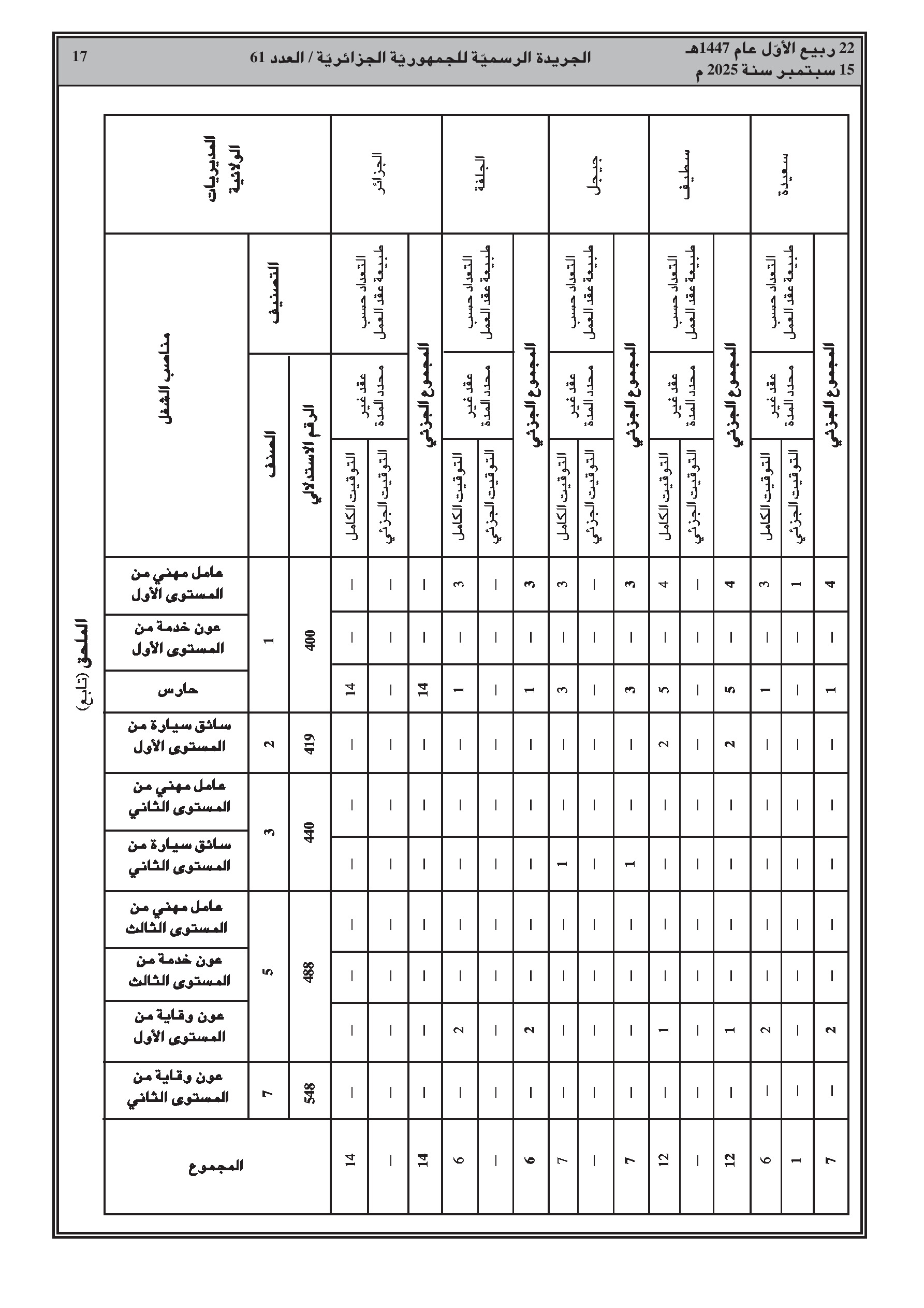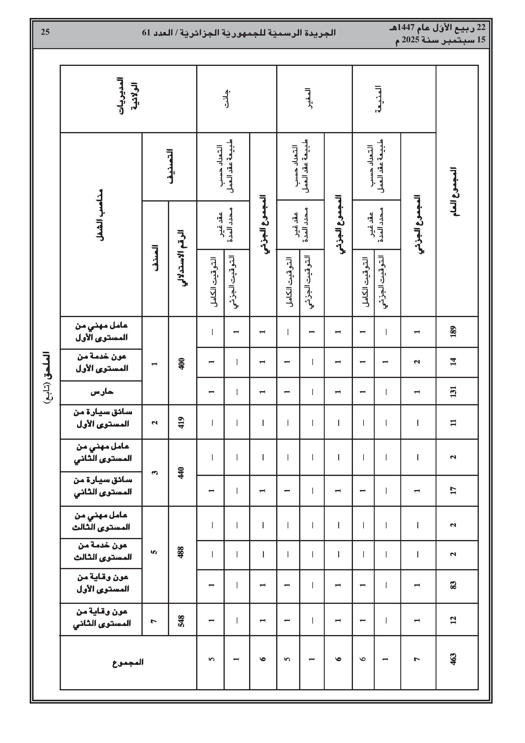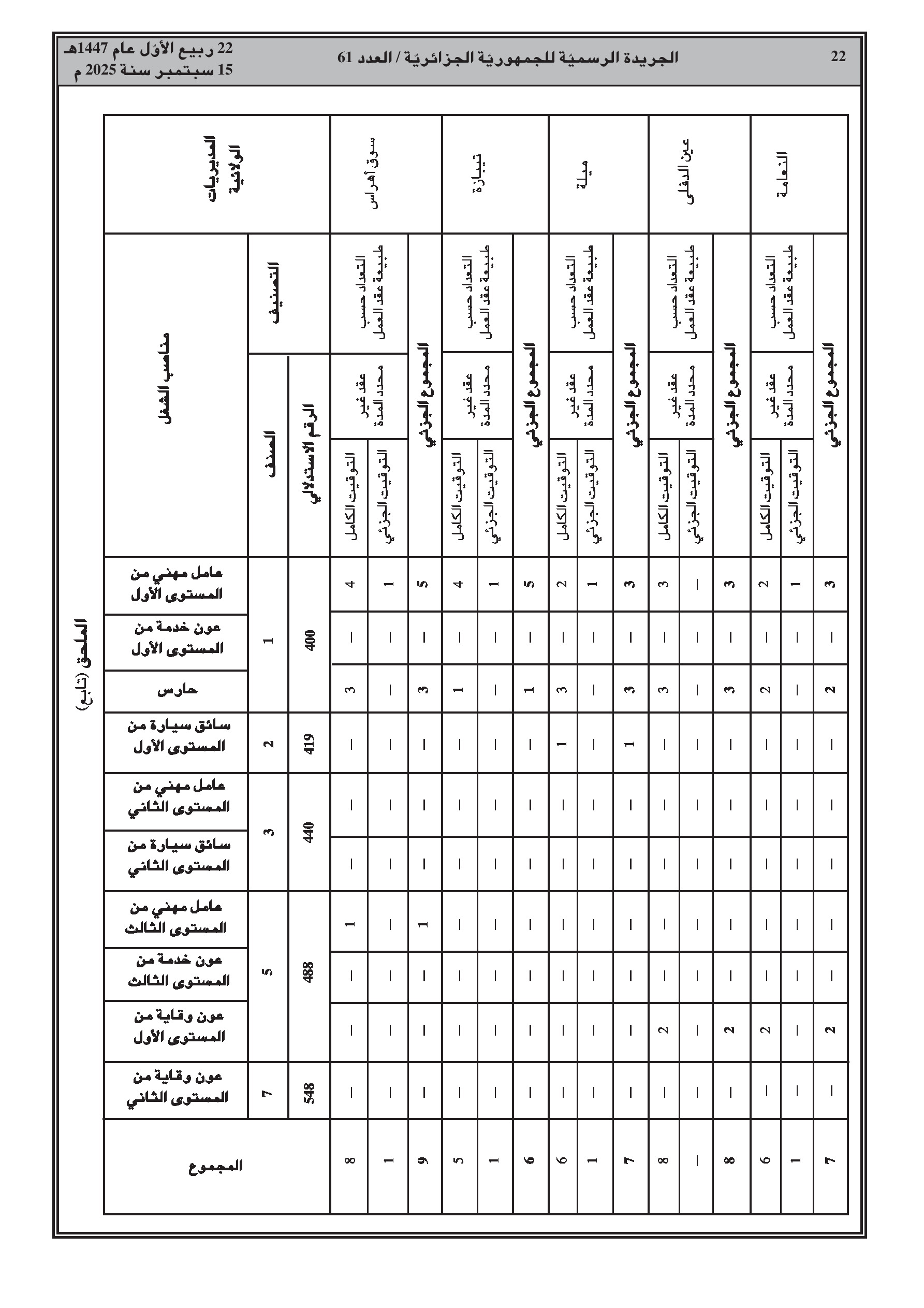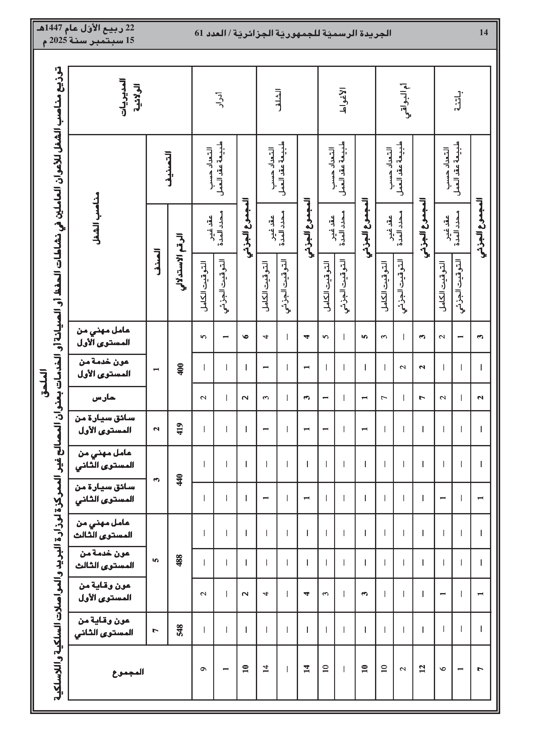 العدد 61 من الجريدة الرسمية الجزائرية الصادرة بتاريخ 15 سبتمبر 2025: تعديل حكومي، إطلاق برنامج دعم الأسر المنتجة، وتوسيع مهام هيئات وطنية