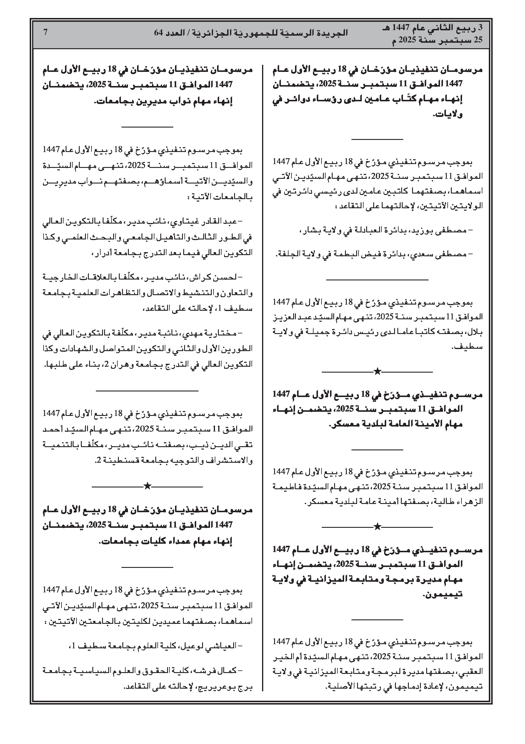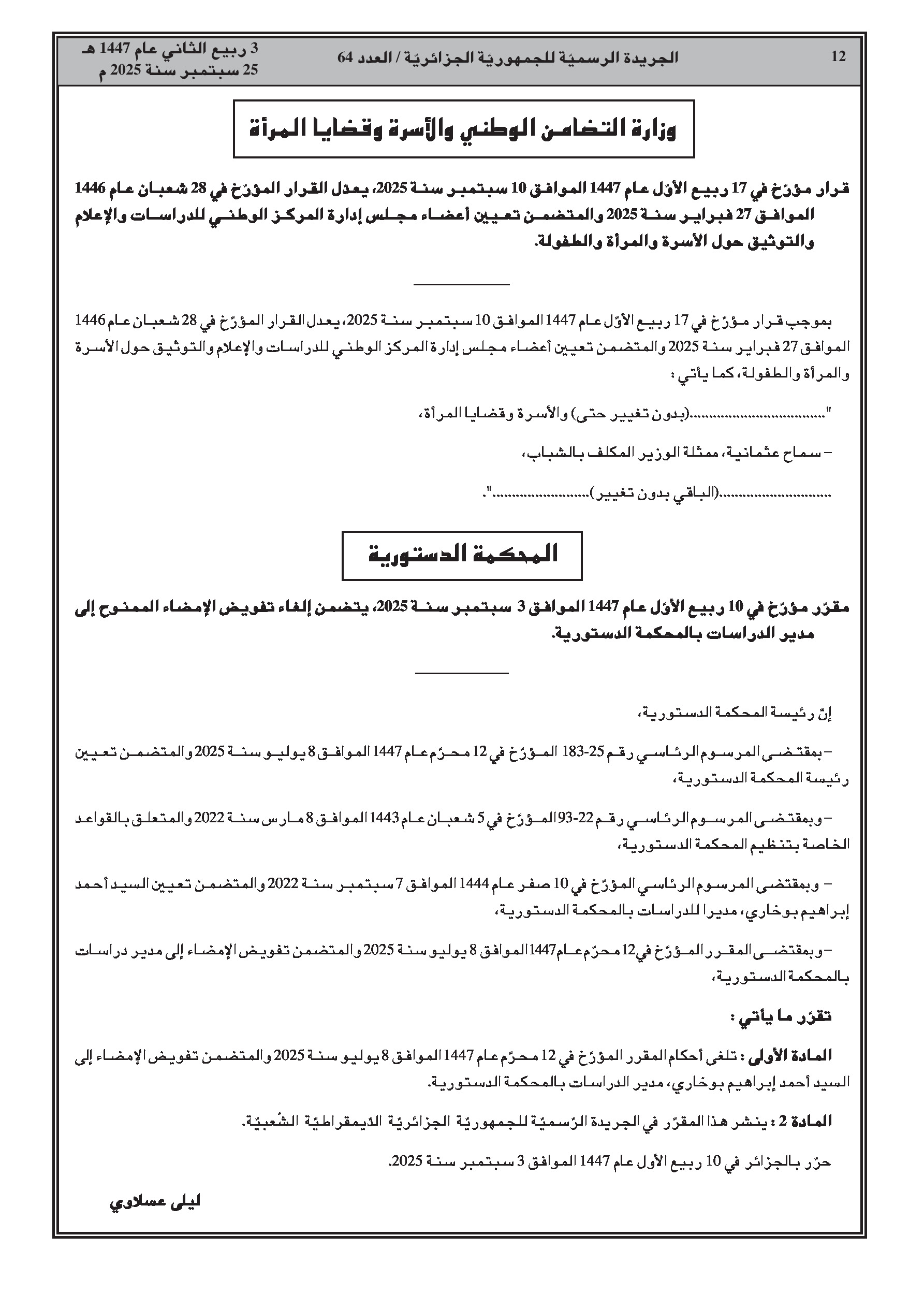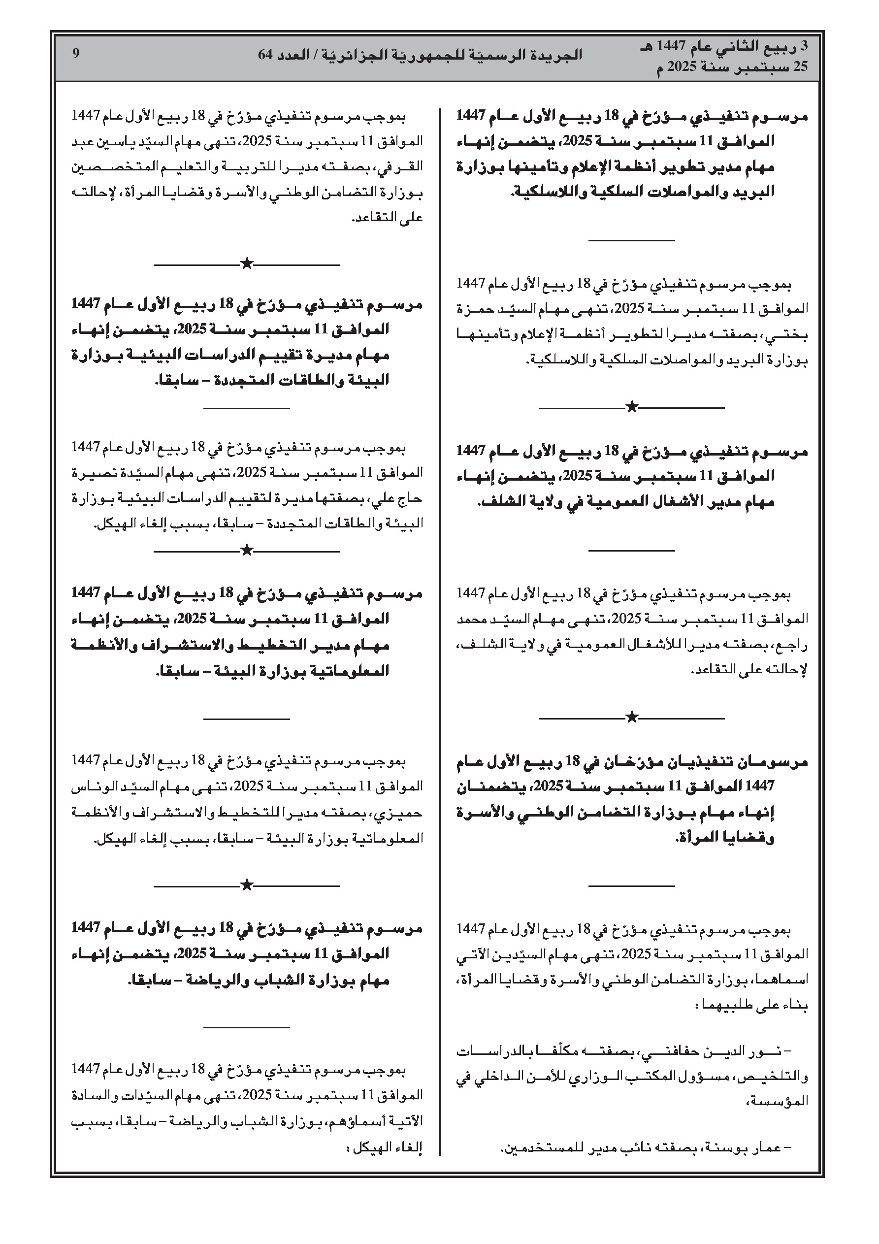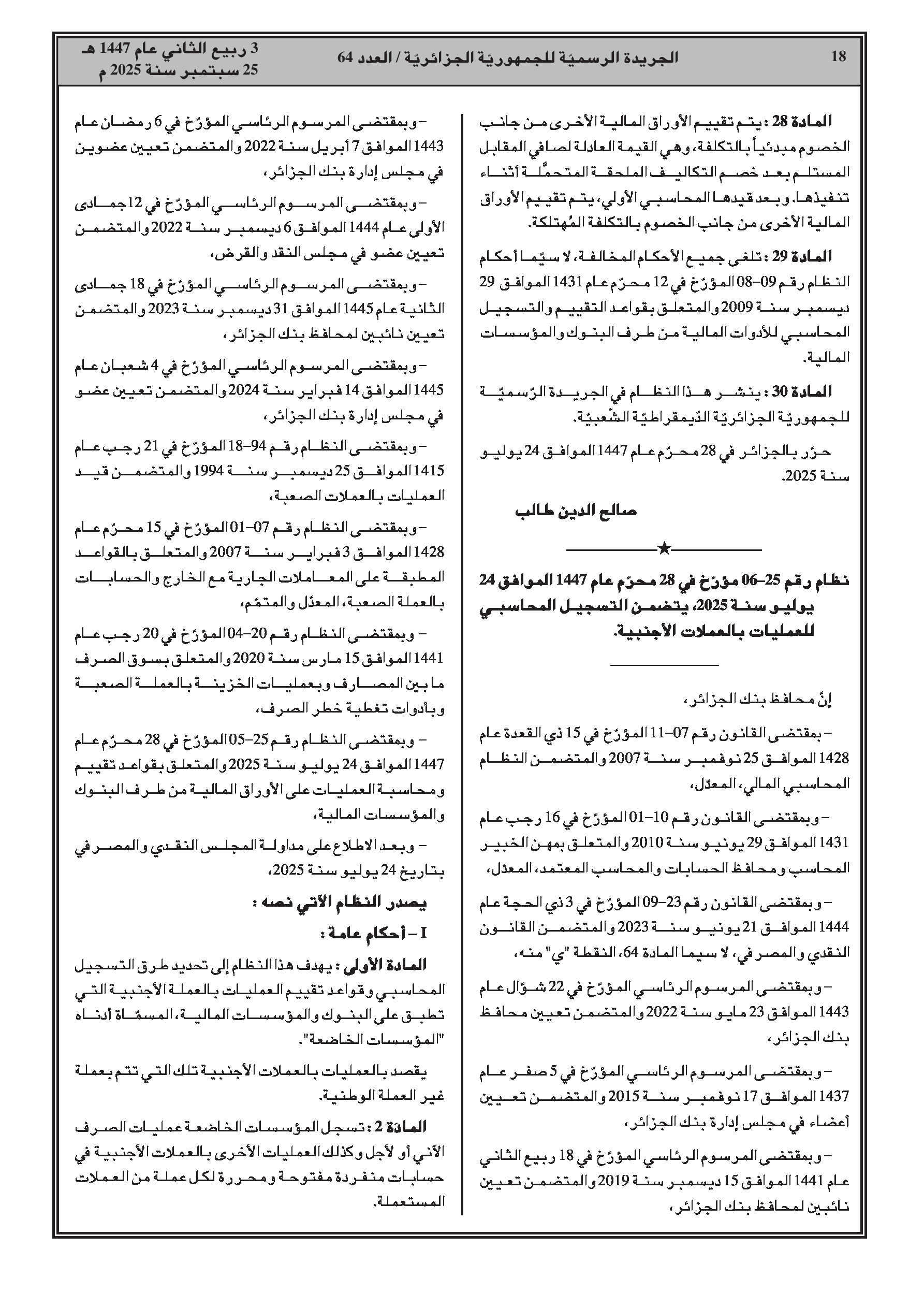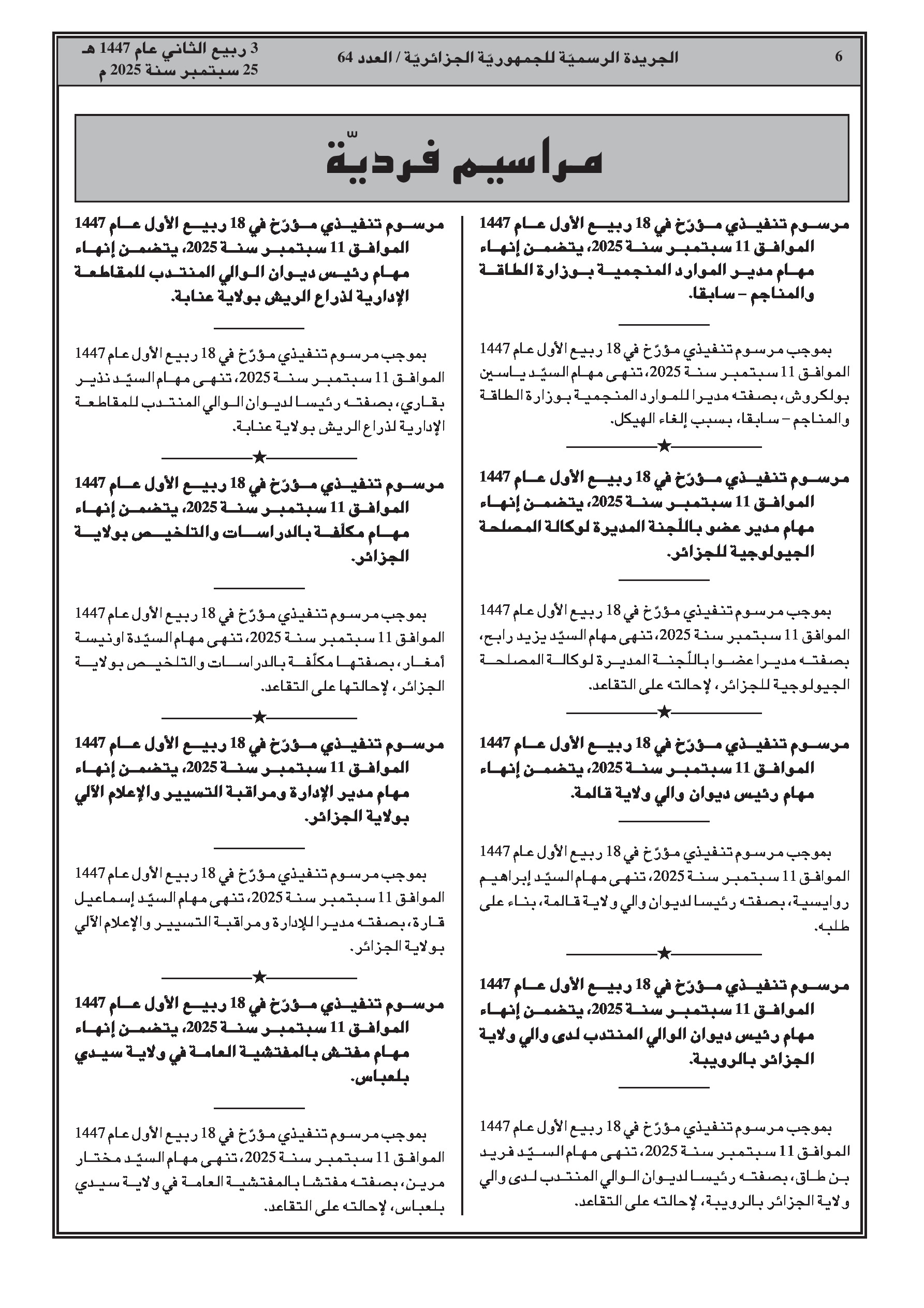 العدد الأخير من الجريدة الرسمية الجزائرية الصادرة في 25 سبتمبر 2025:
