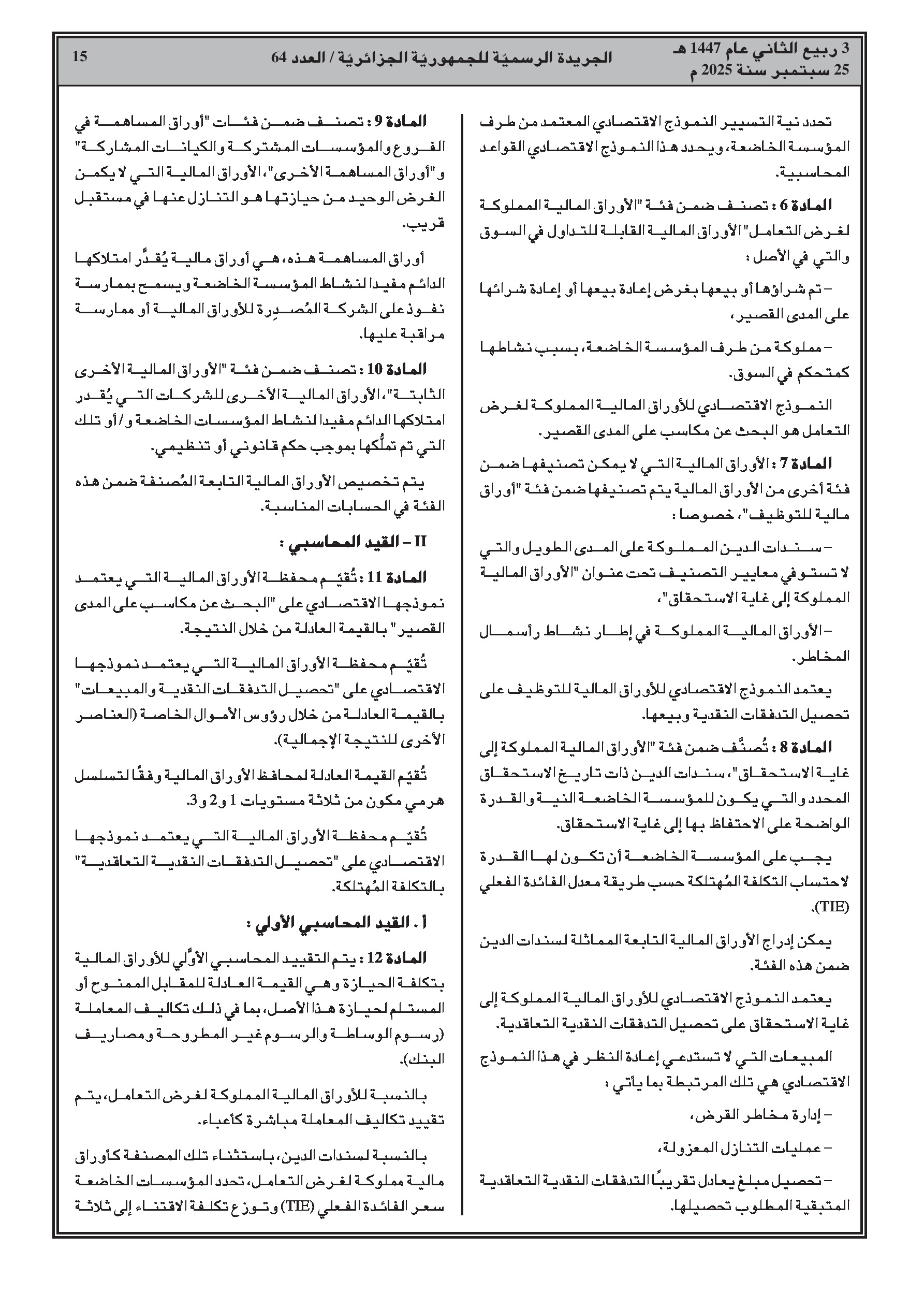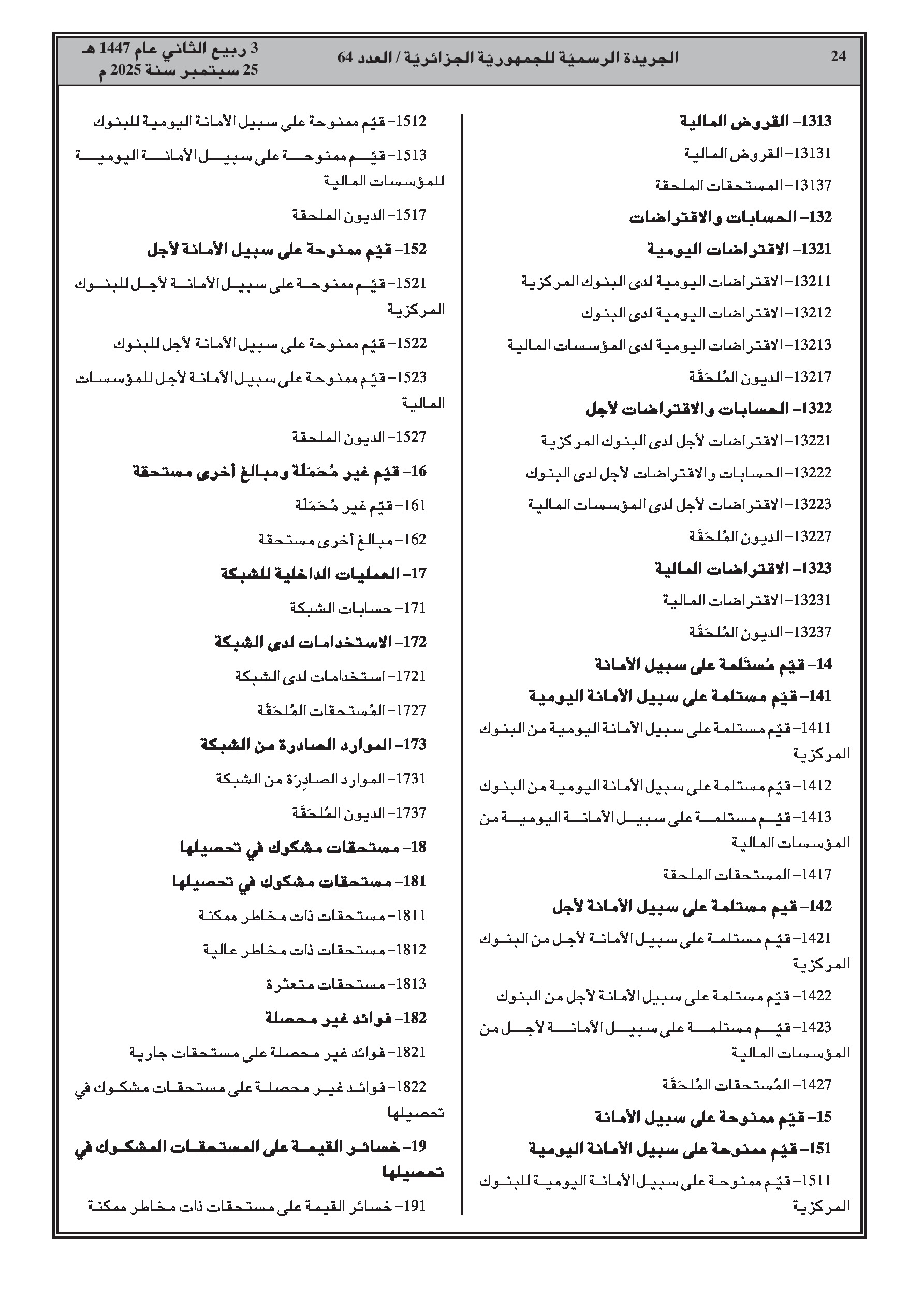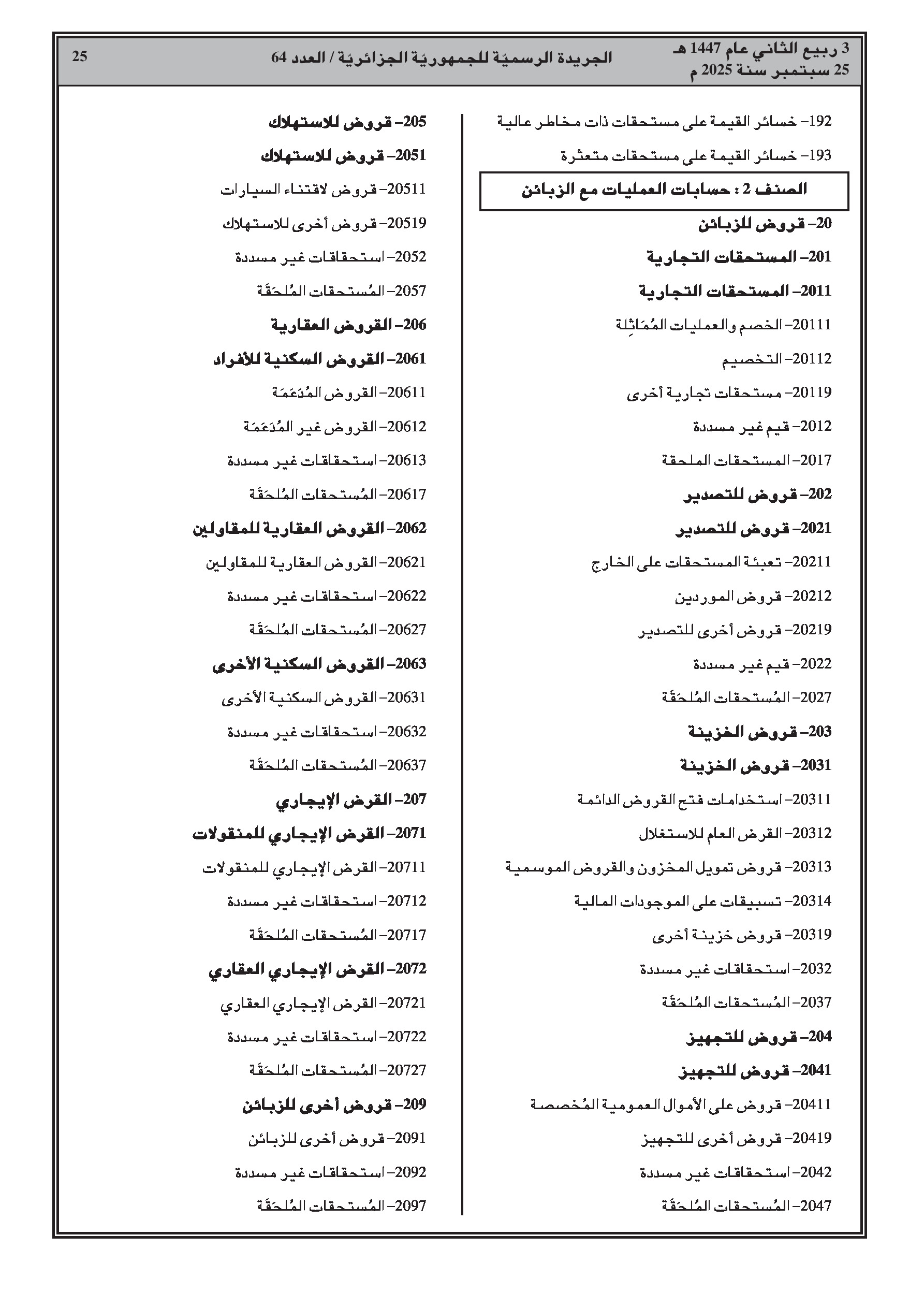 النظام 25-07: يضع مخطط الحسابات الجديد المطبق على البنوك والمؤسسات المالية.