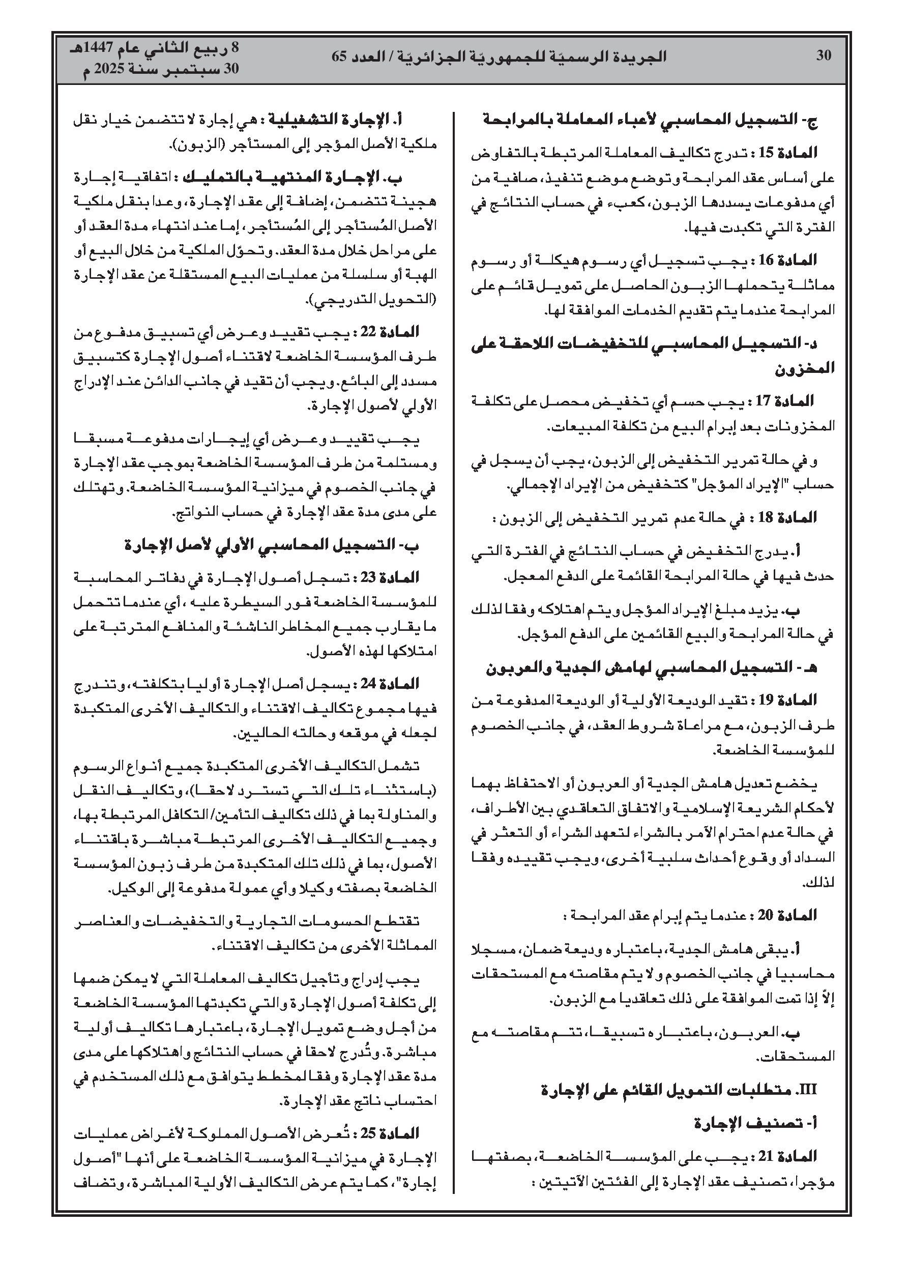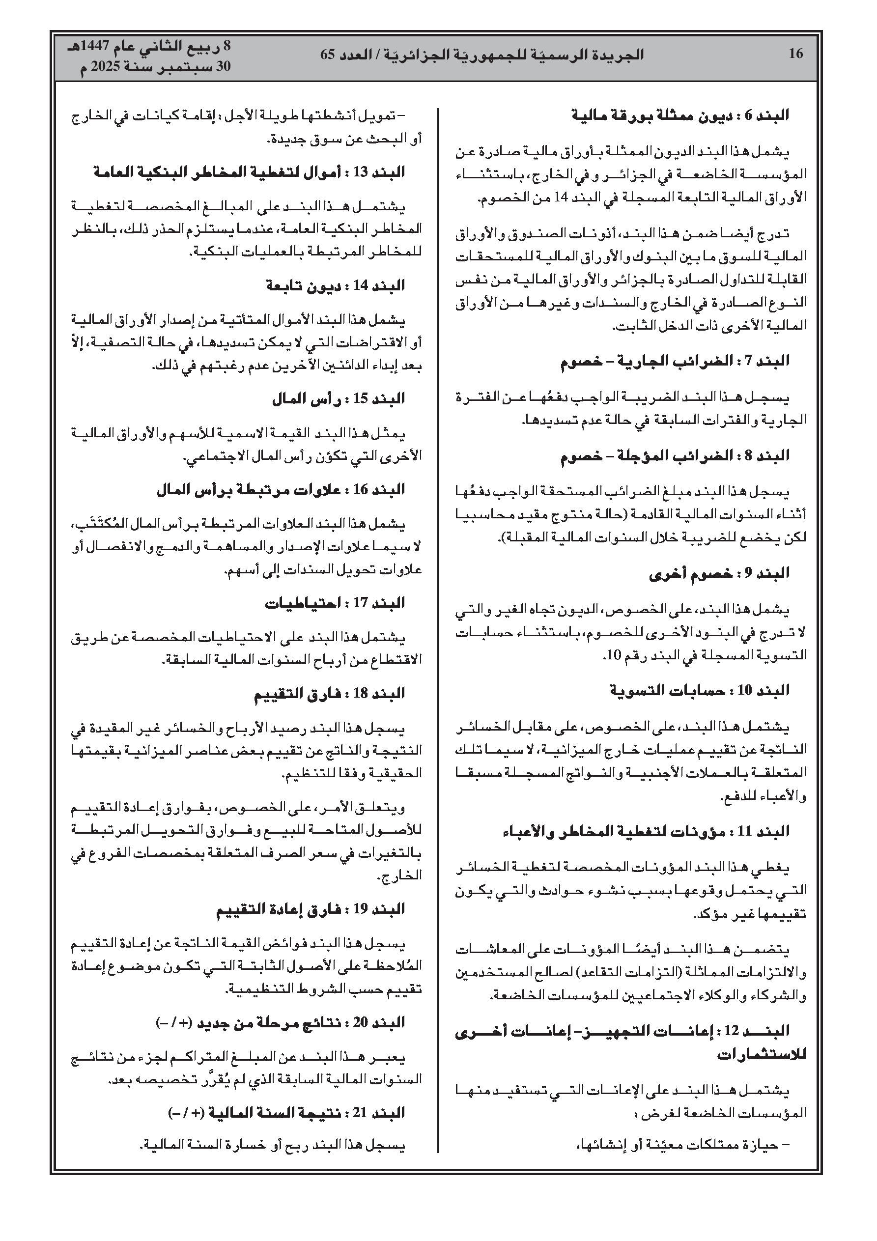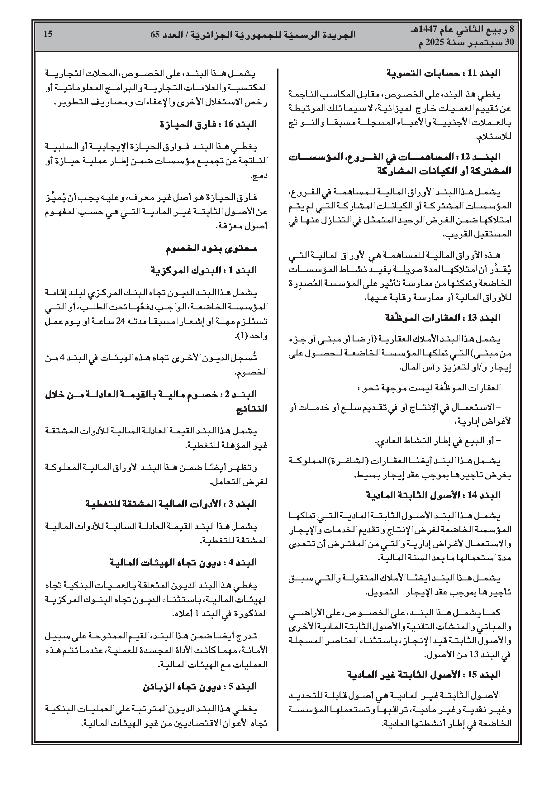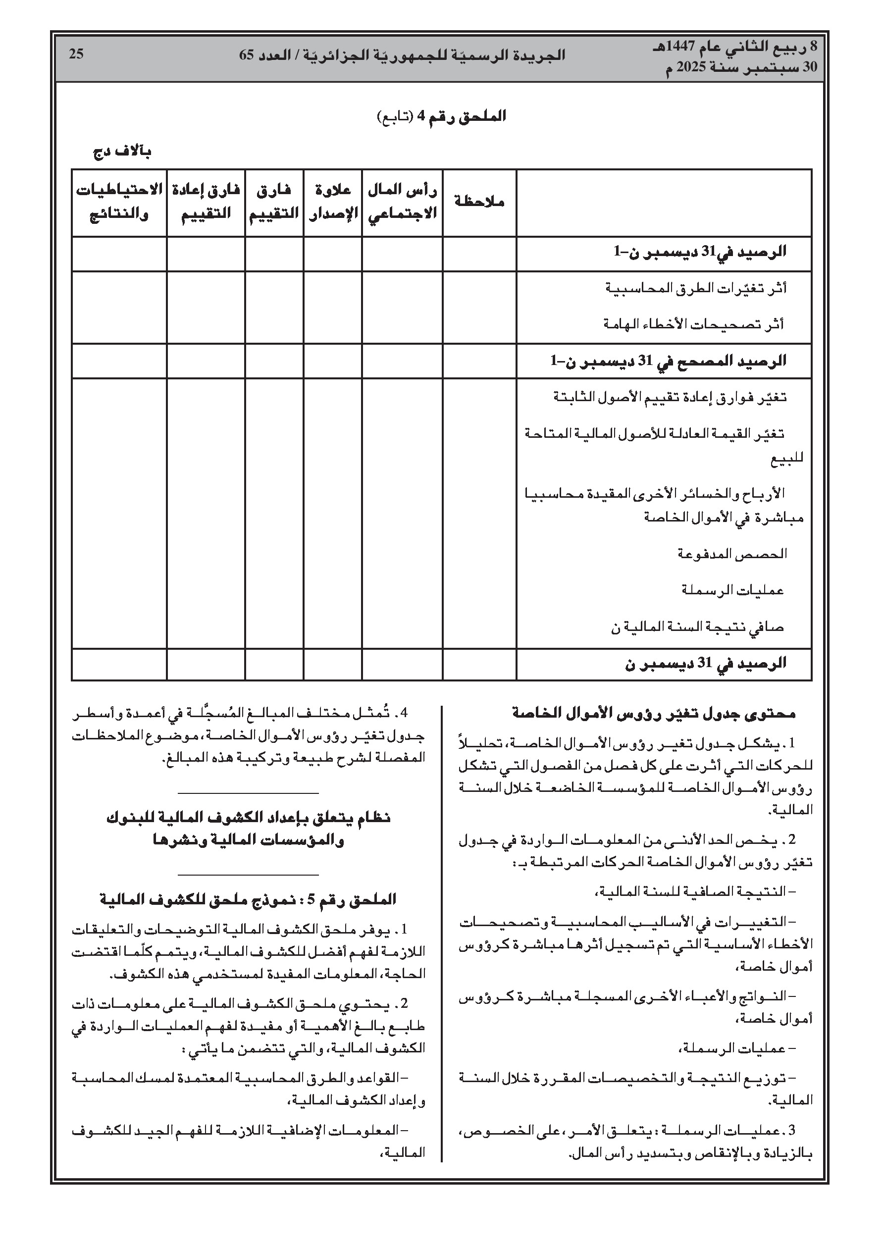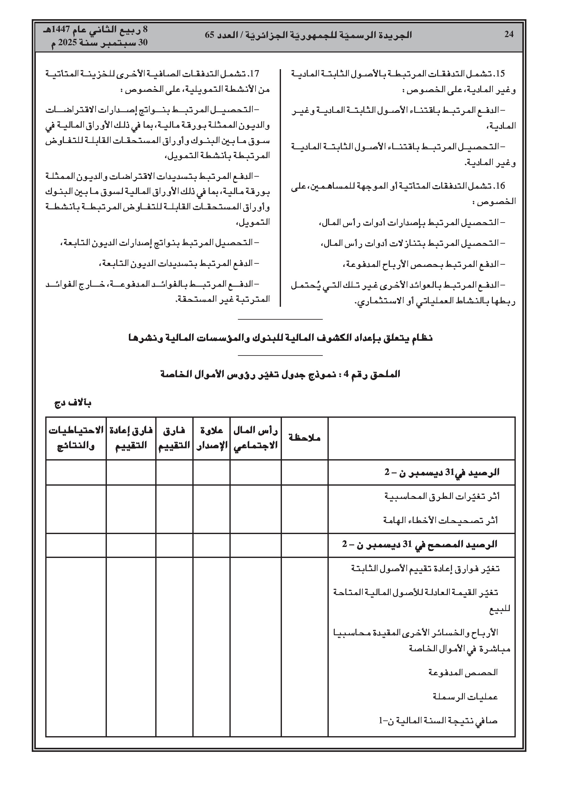 العدد 65 من الجريدة الرسمية الجزائرية الصادرة بتاريخ 30 سبتمبر 2025: تنظيمات بنكية جديدة: إصلاح شامل للقوائم المالية وقواعد الصيرفة الإسلامية