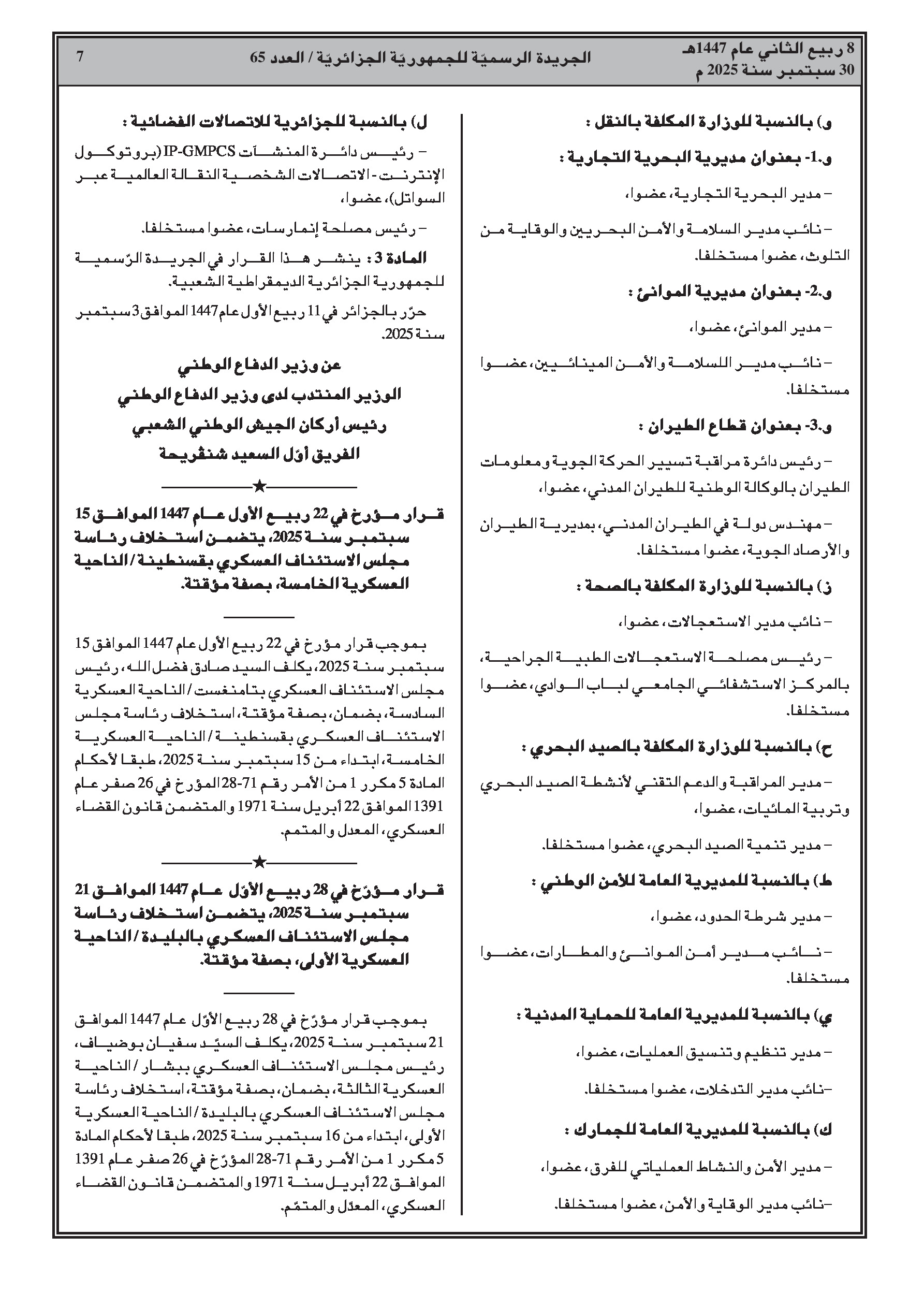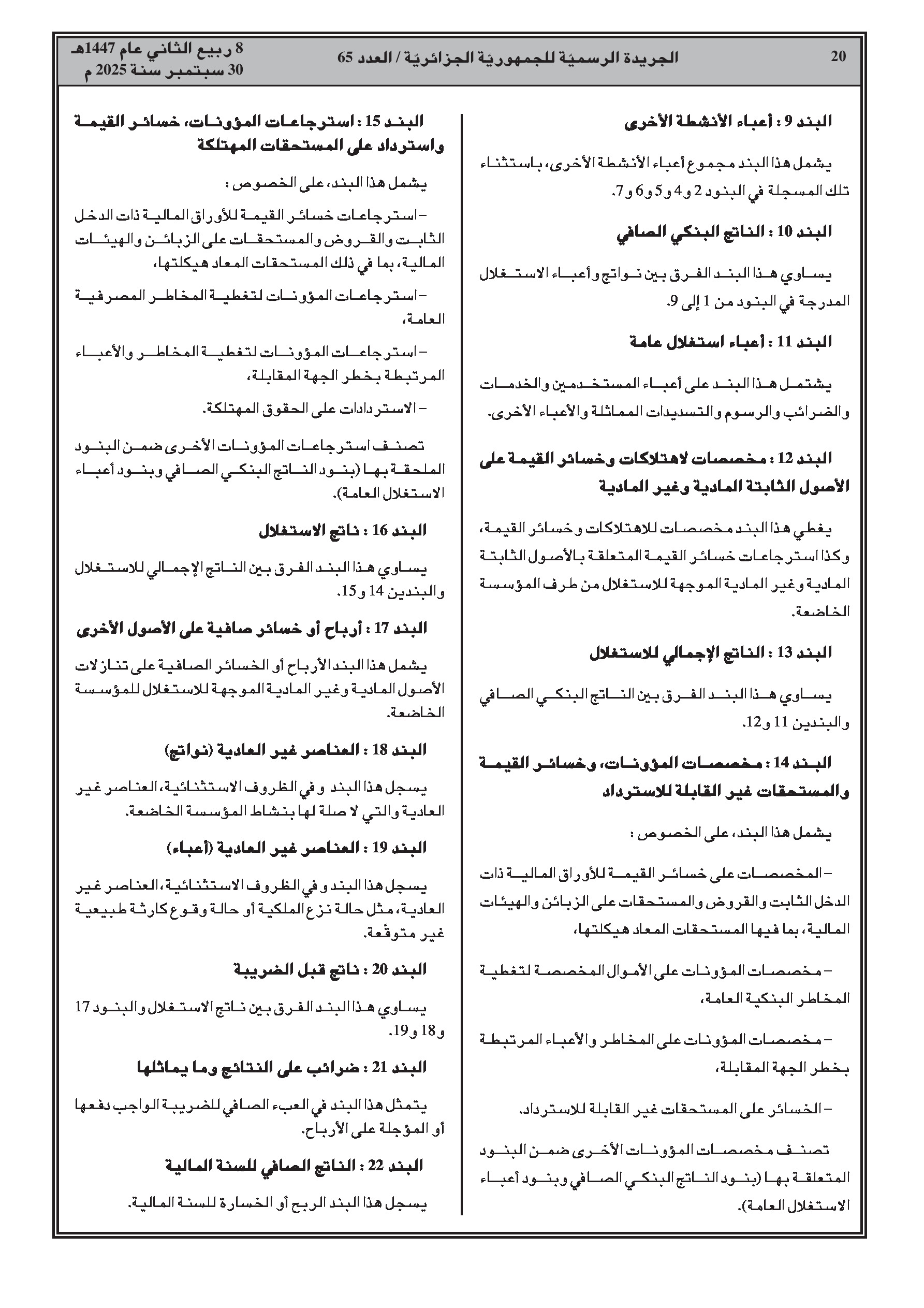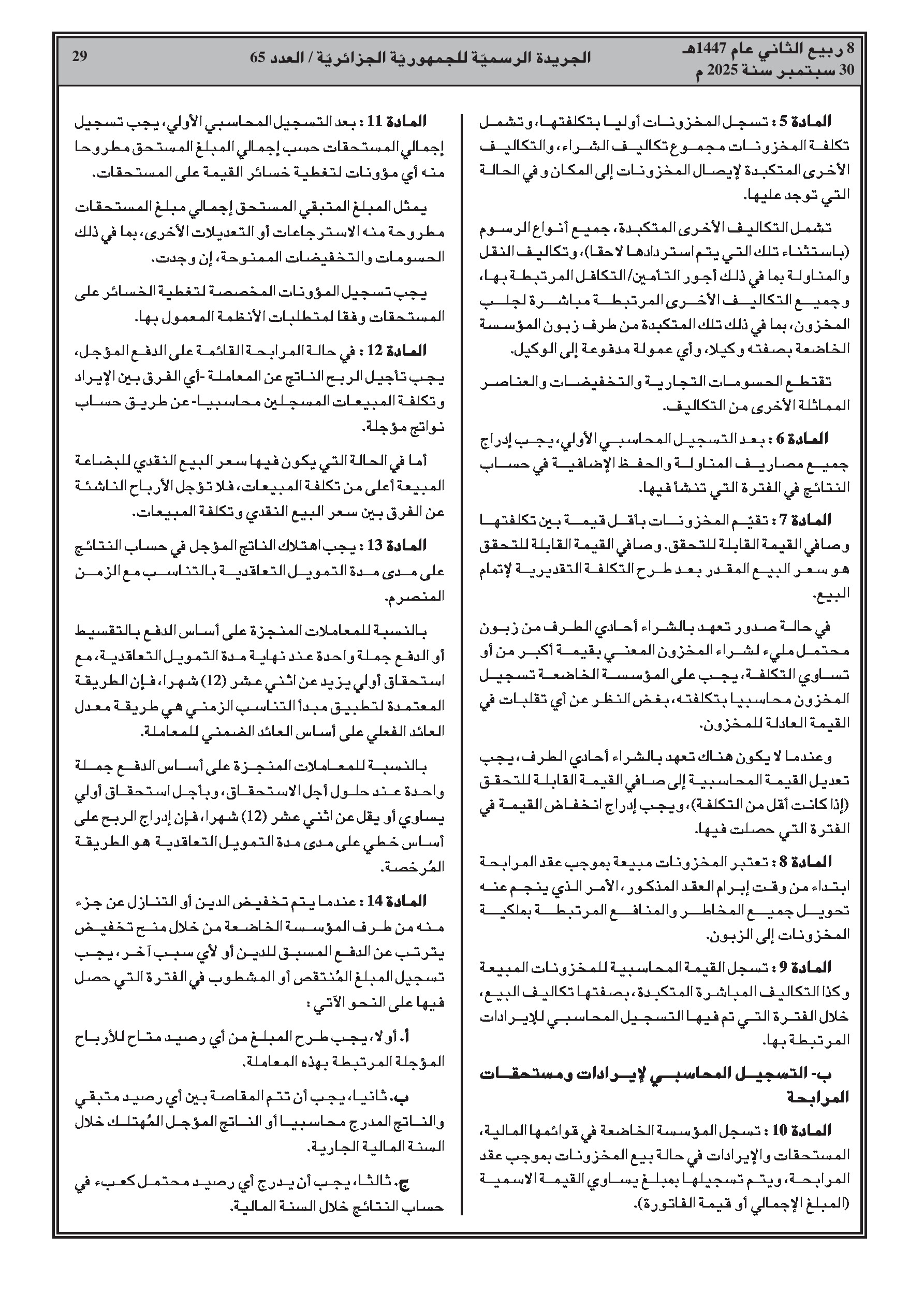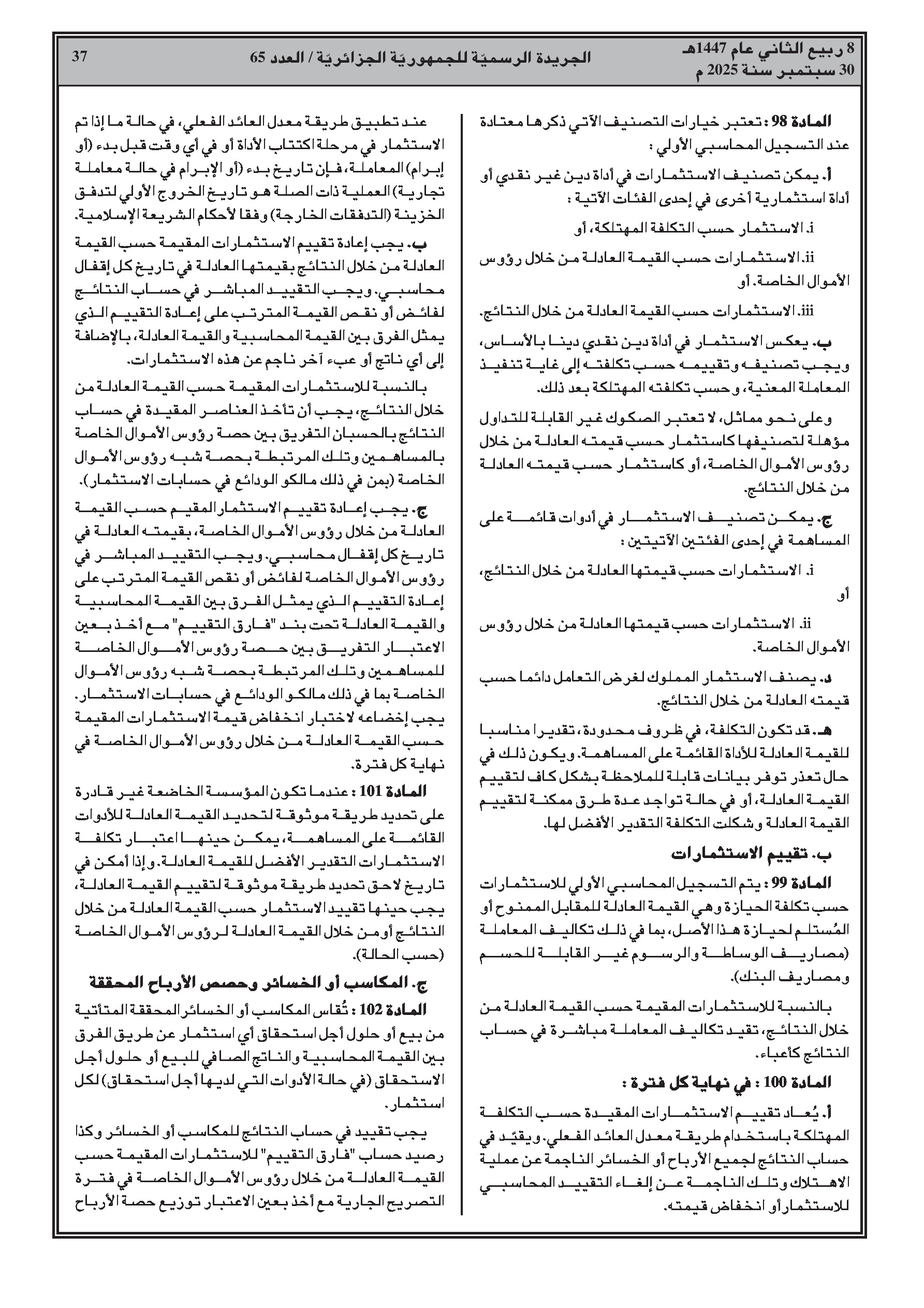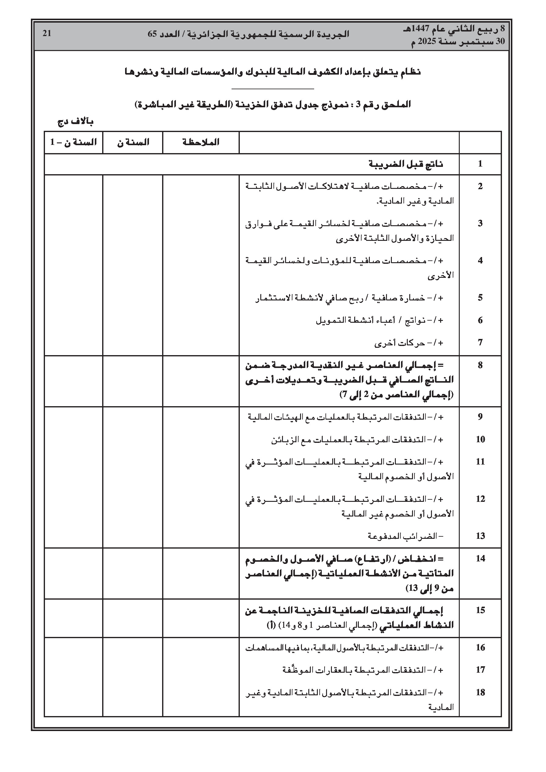 العدد 65 من الجريدة الرسمية الجزائرية الصادرة بتاريخ 30 سبتمبر 2025: تنظيمات بنكية جديدة: إصلاح شامل للقوائم المالية وقواعد الصيرفة الإسلامية