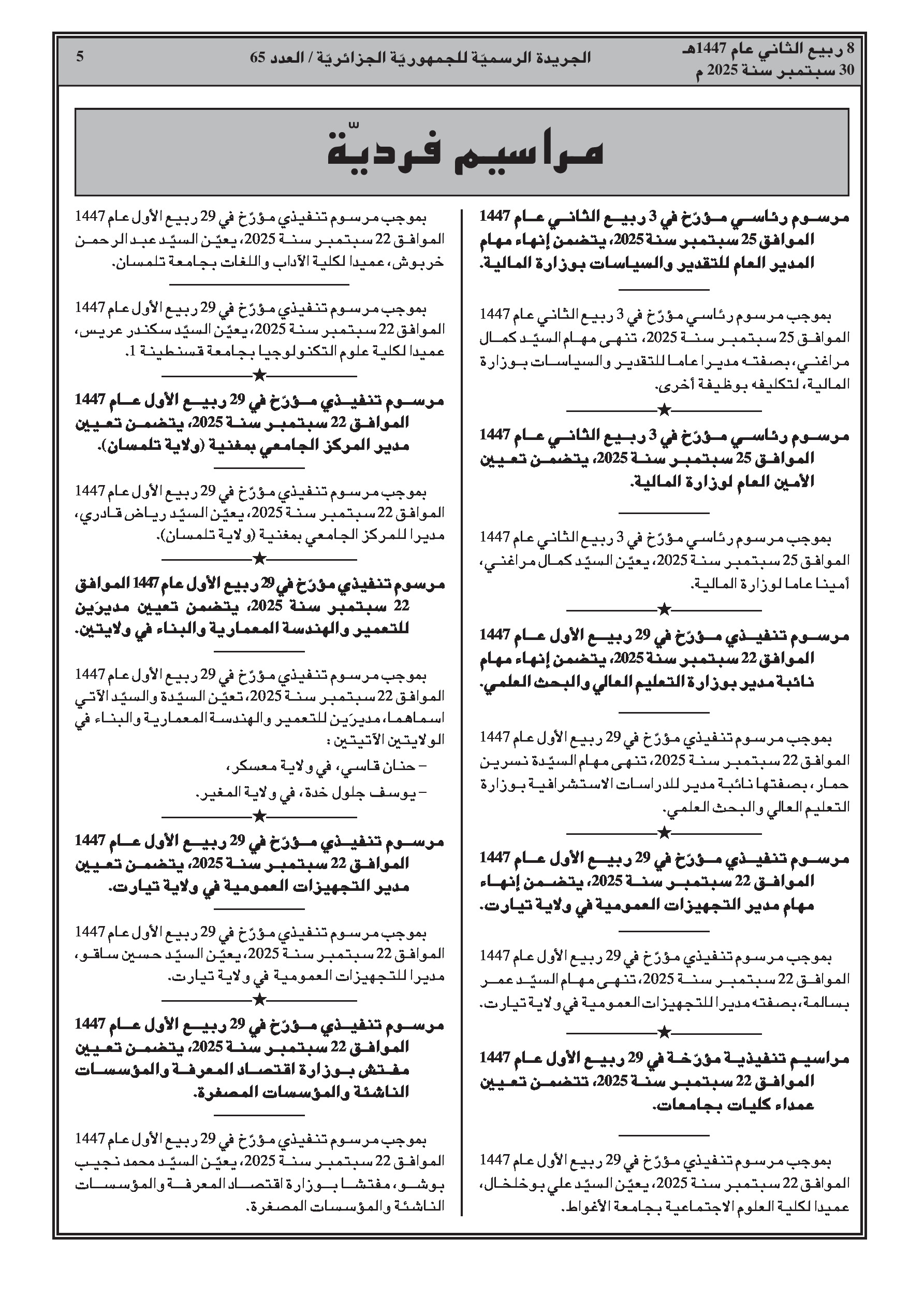 - تعيينات جديدة لعمداء كليات ومدراء في عدة جامعات وولايات.