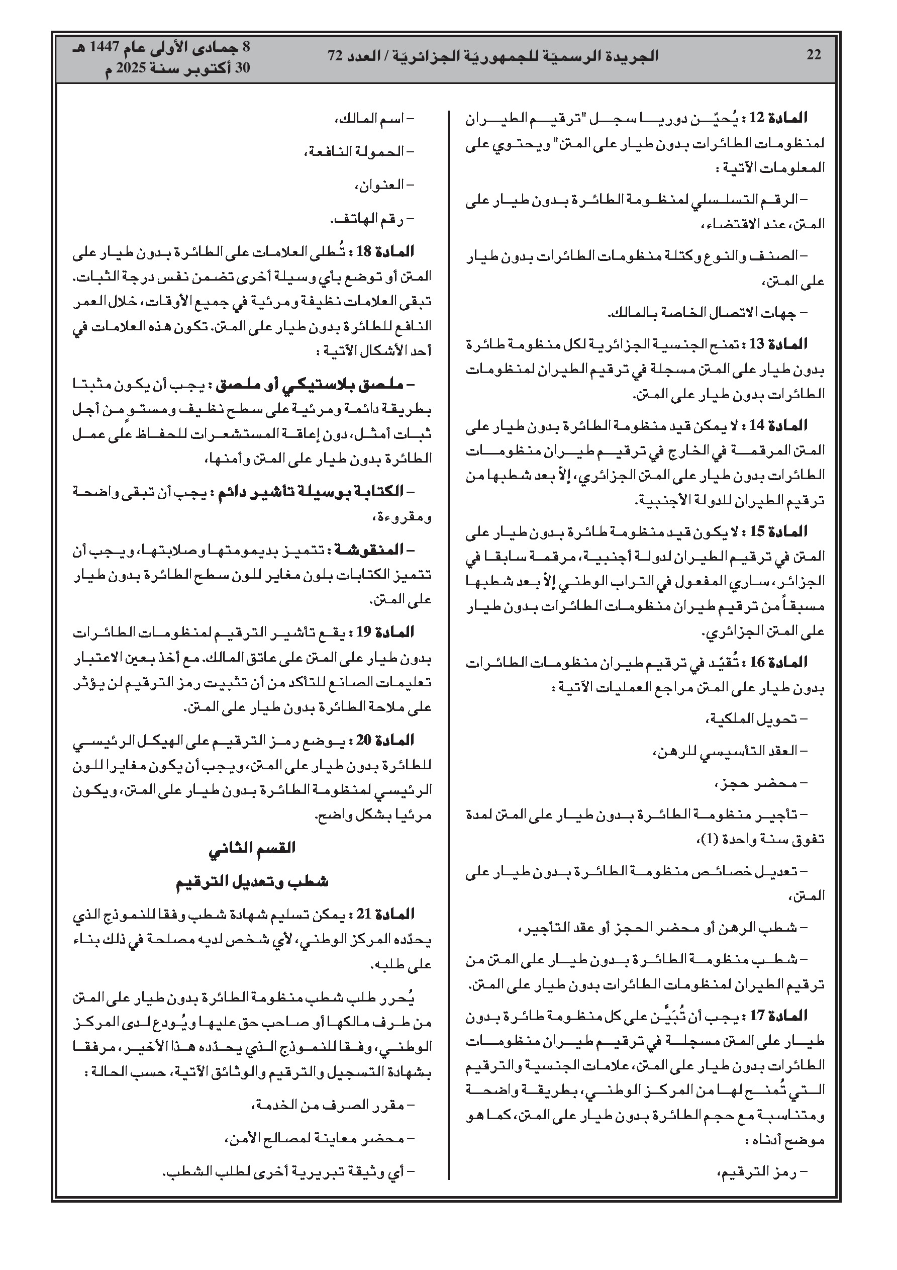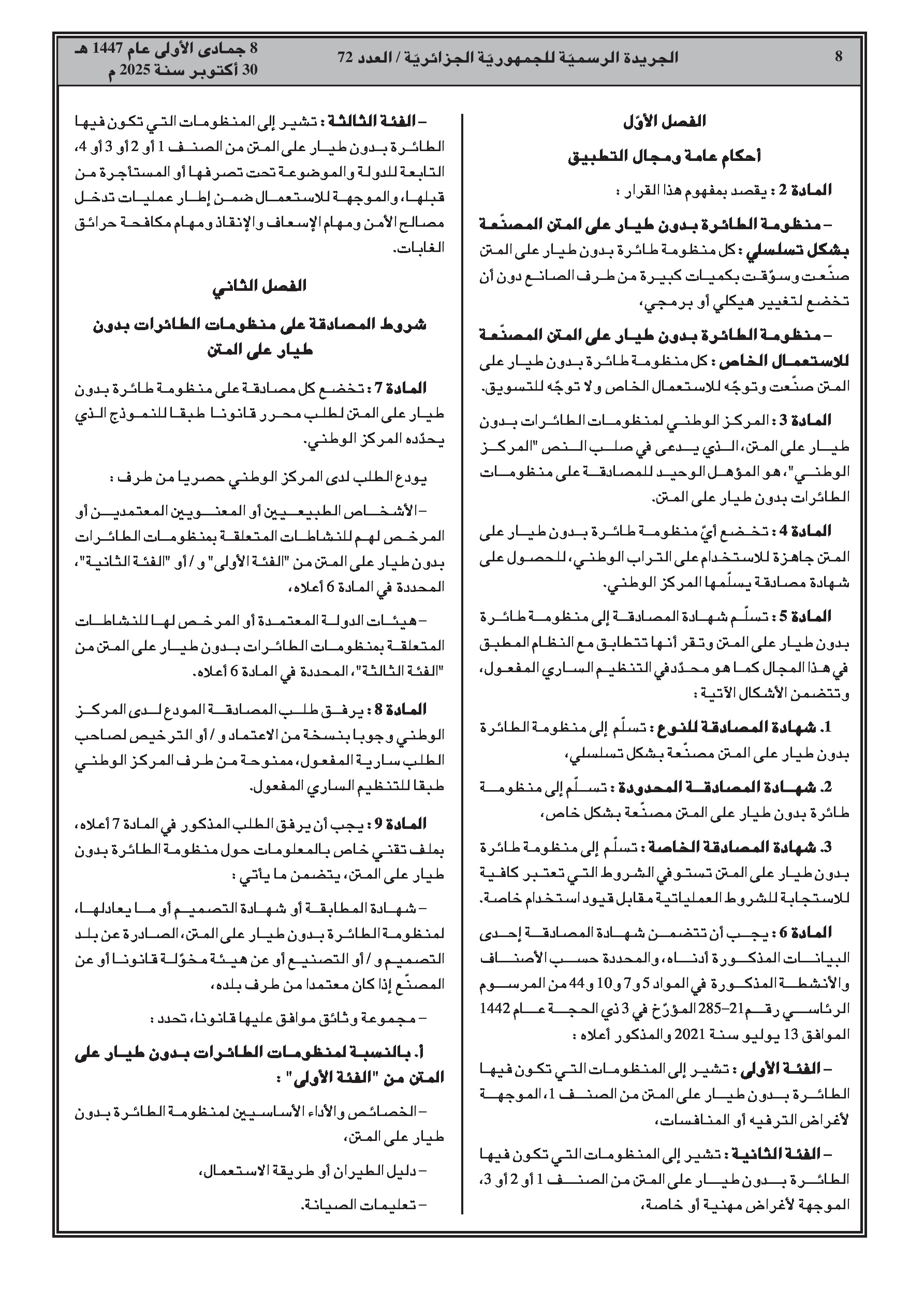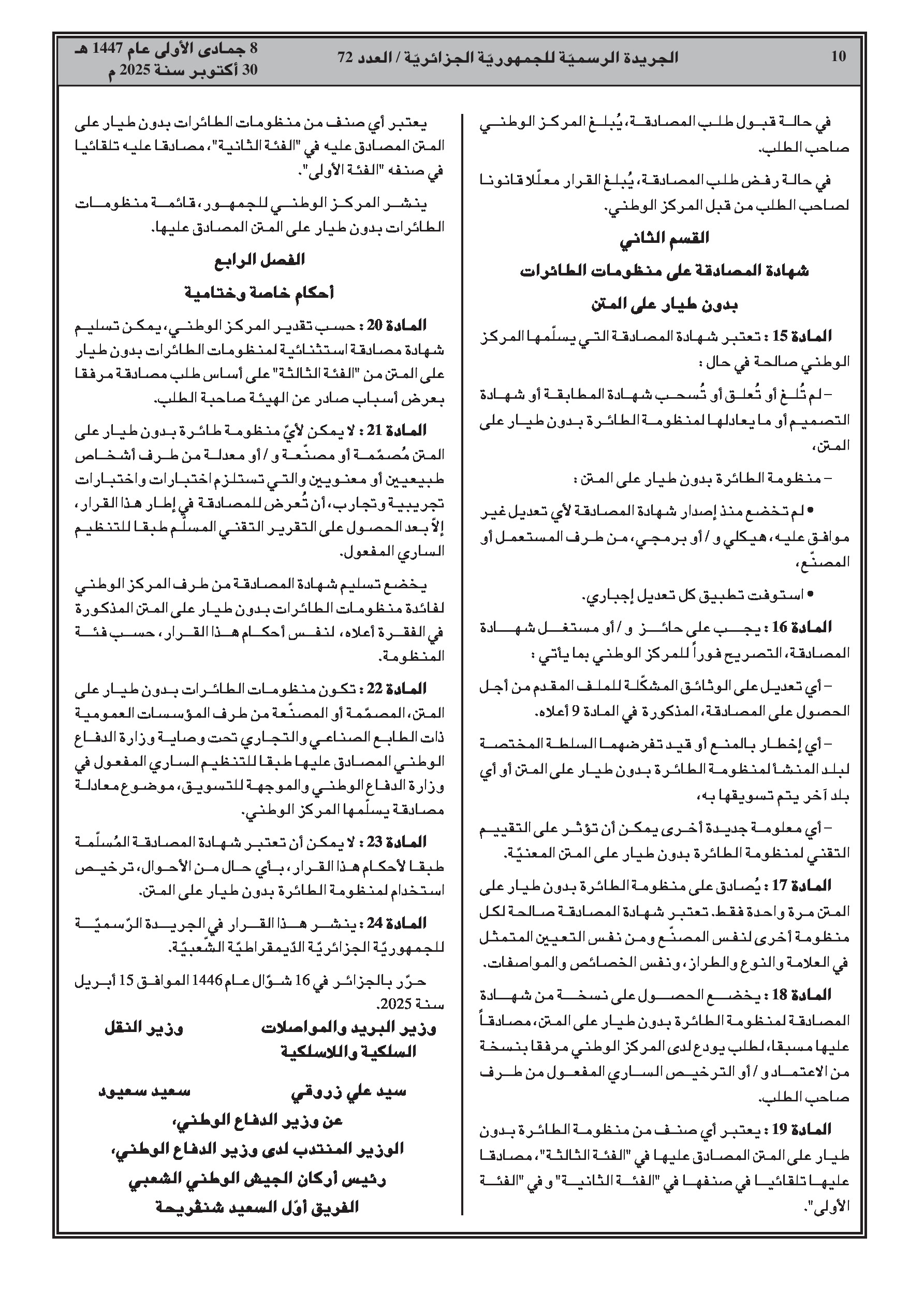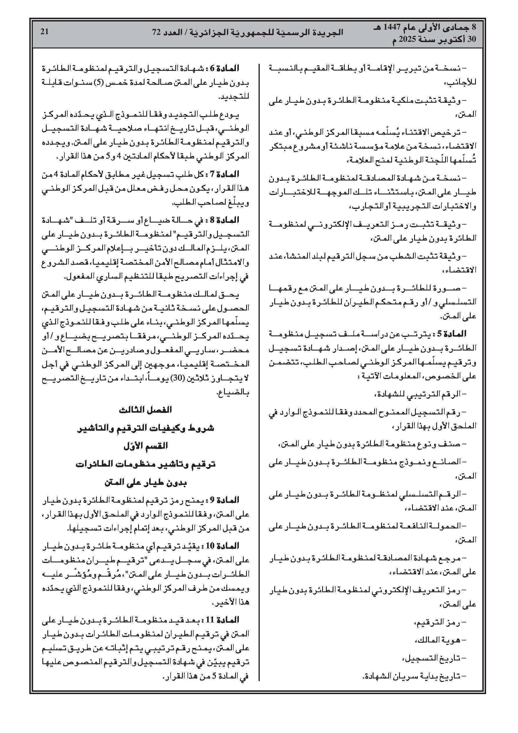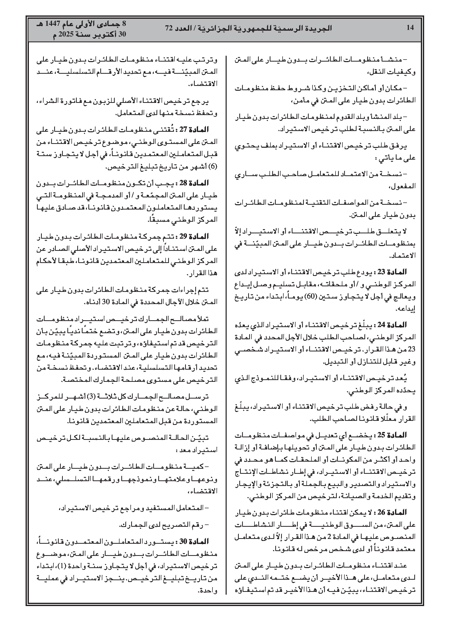 هذا العدد يقدم إطارًا قانونيًا شاملًا للطائرات بدون طيار، يغطي كل شيء من الشراء والتسجيل إلى الاستخدام. كما تم تعيين رئيس مدير عام جديد لسوناطراك وتخصيص ميزانية هامة للأشغال العمومية.