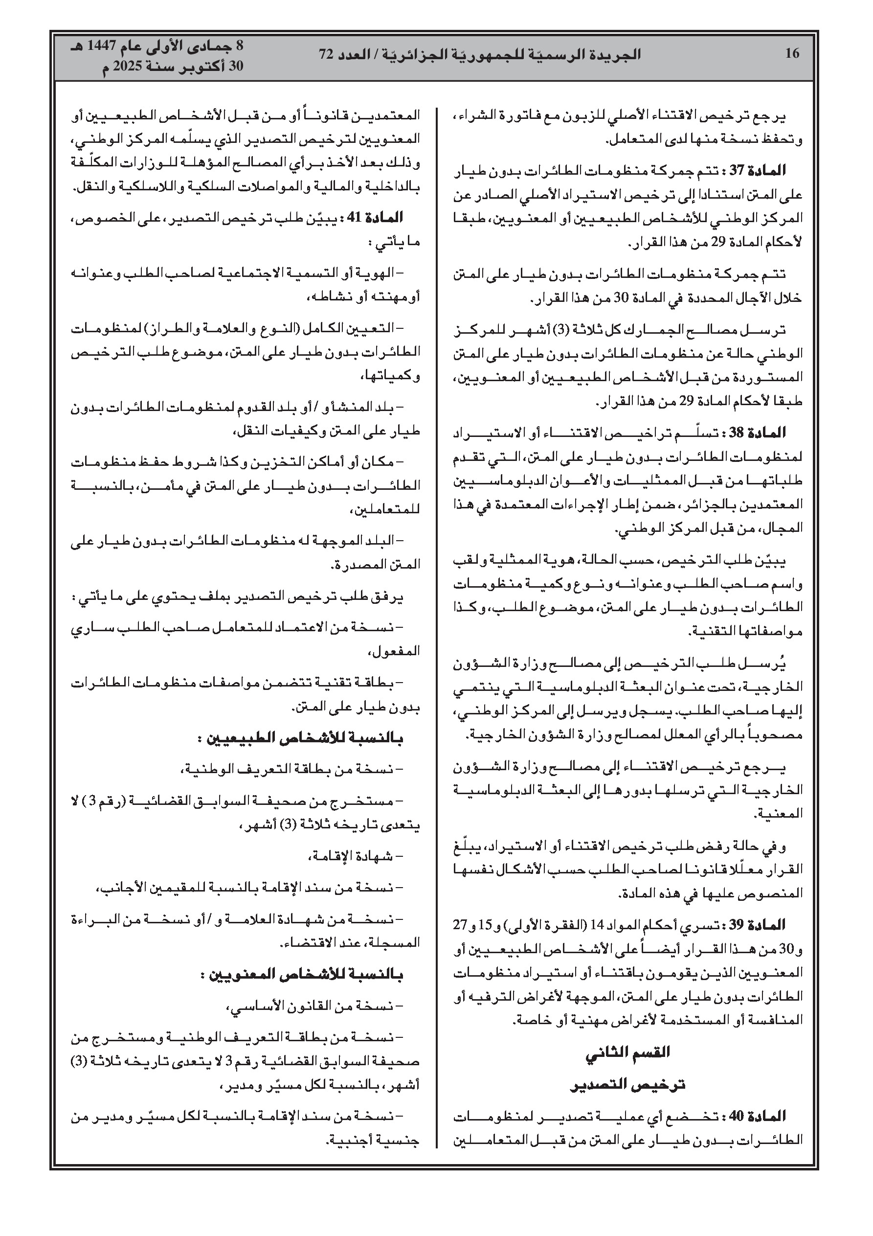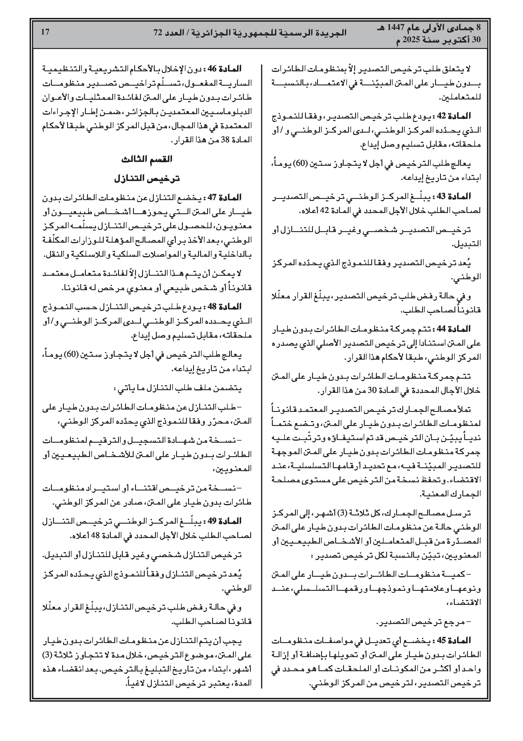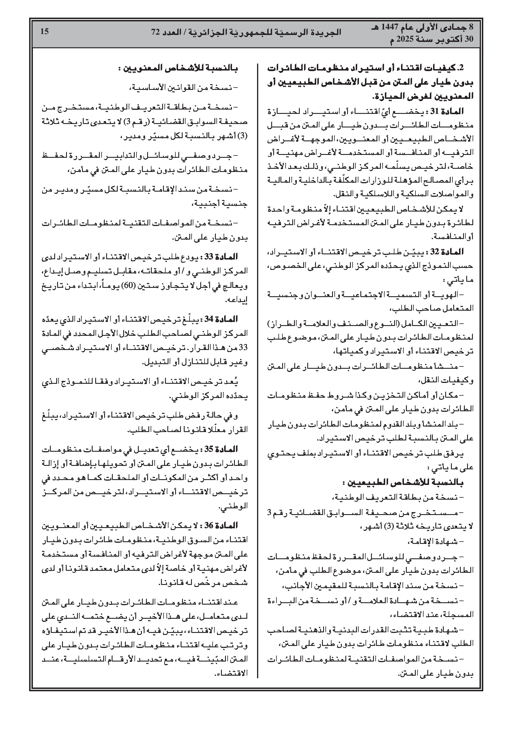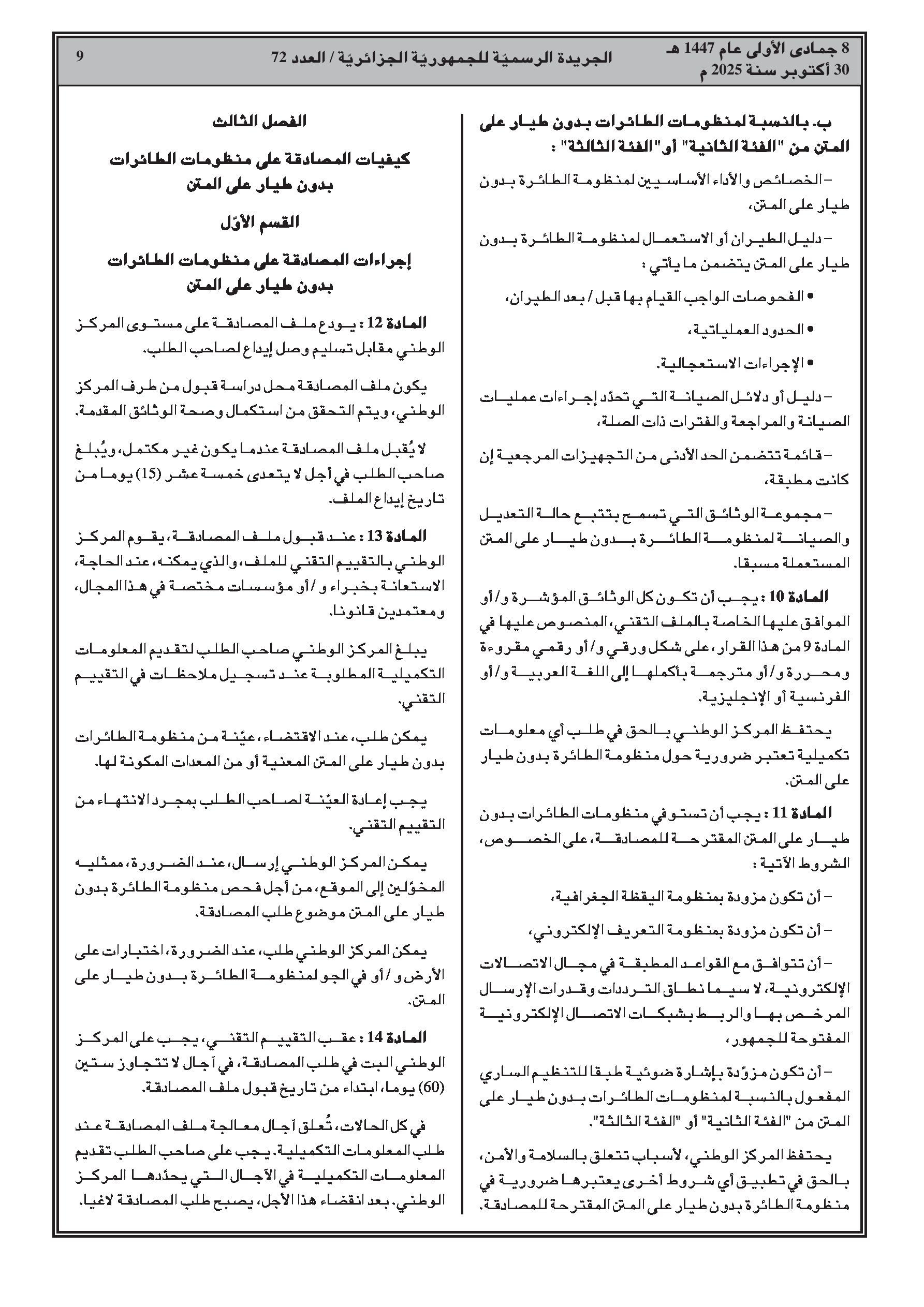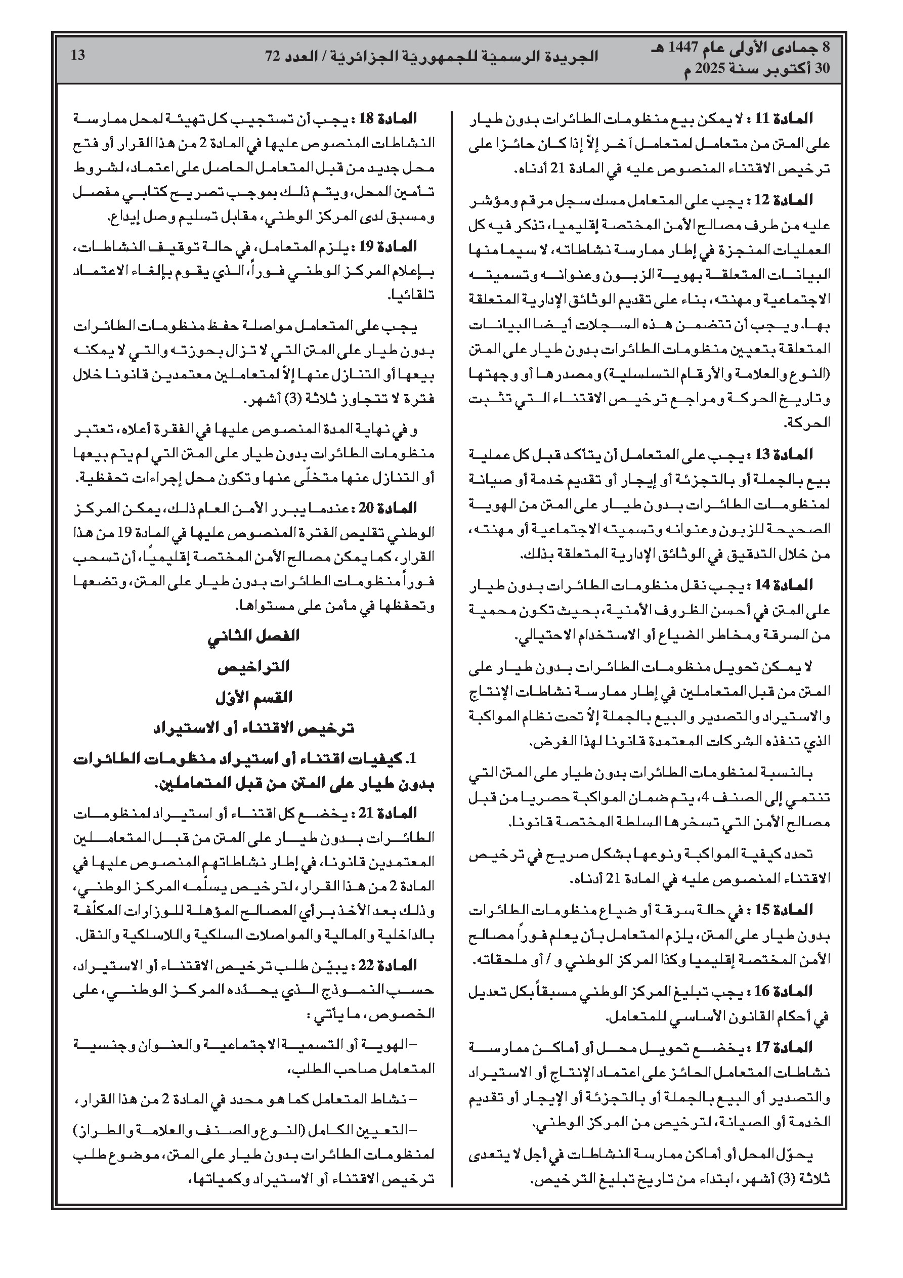 هذا العدد يقدم إطارًا قانونيًا شاملًا للطائرات بدون طيار، يغطي كل شيء من الشراء والتسجيل إلى الاستخدام. كما تم تعيين رئيس مدير عام جديد لسوناطراك وتخصيص ميزانية هامة للأشغال العمومية.
