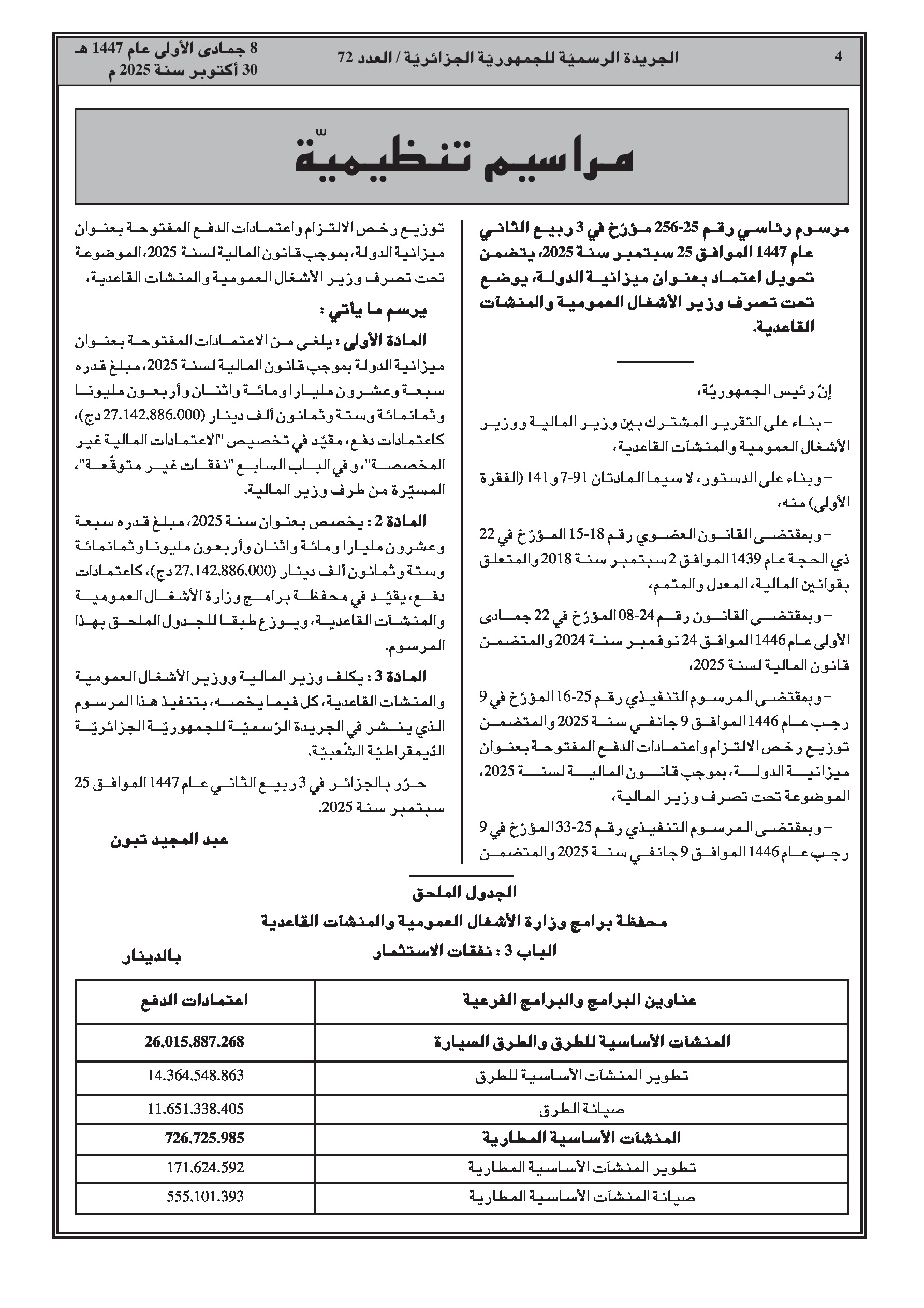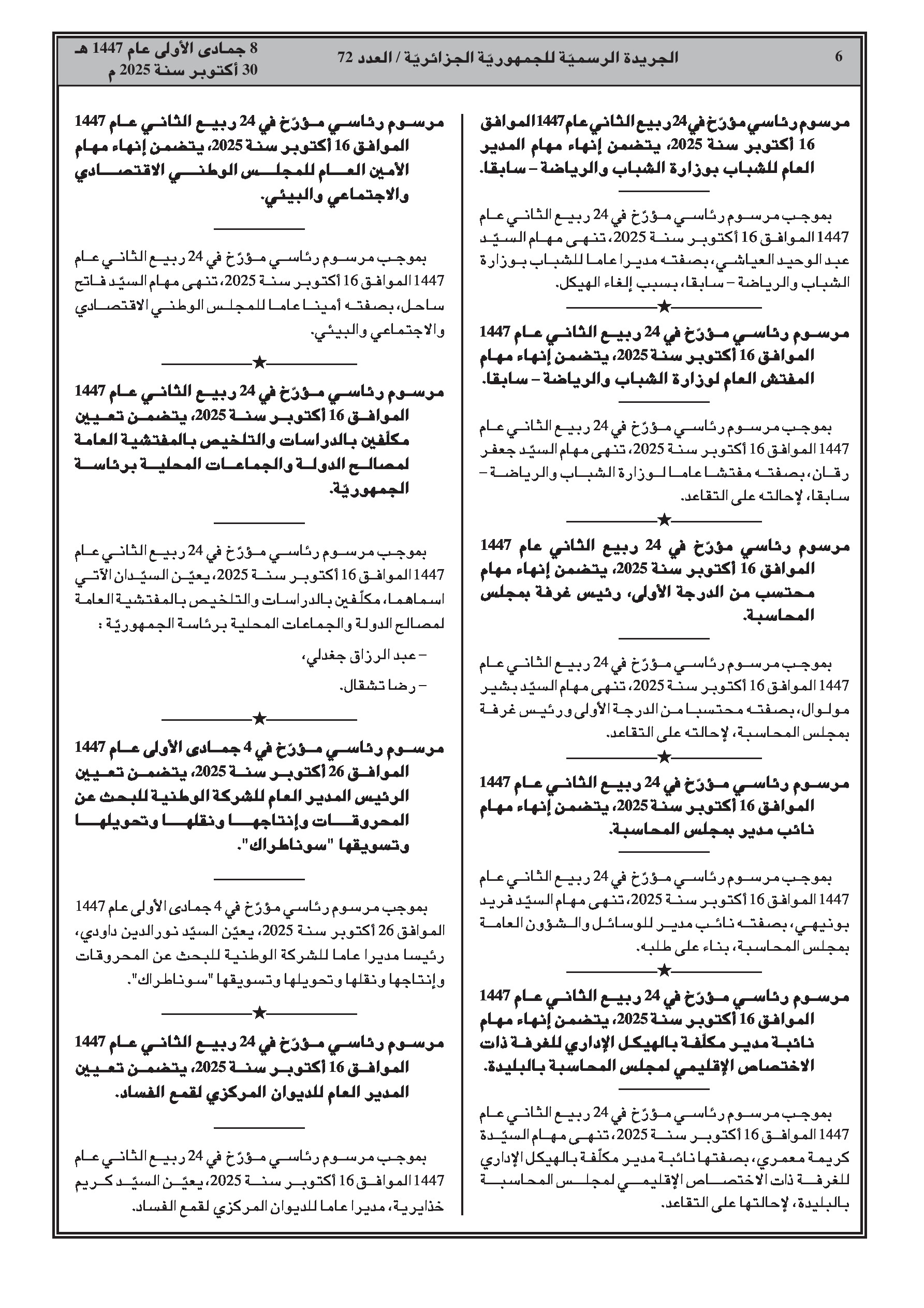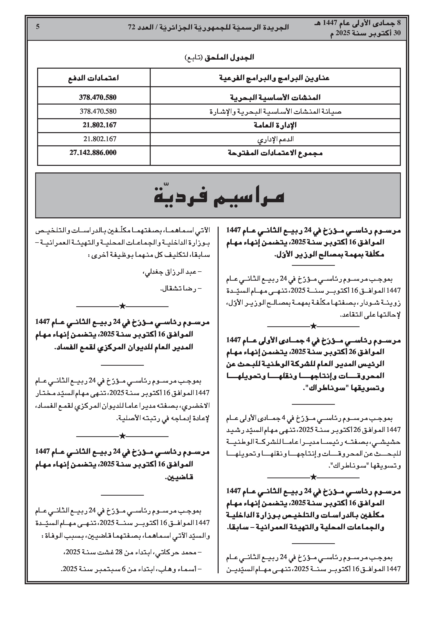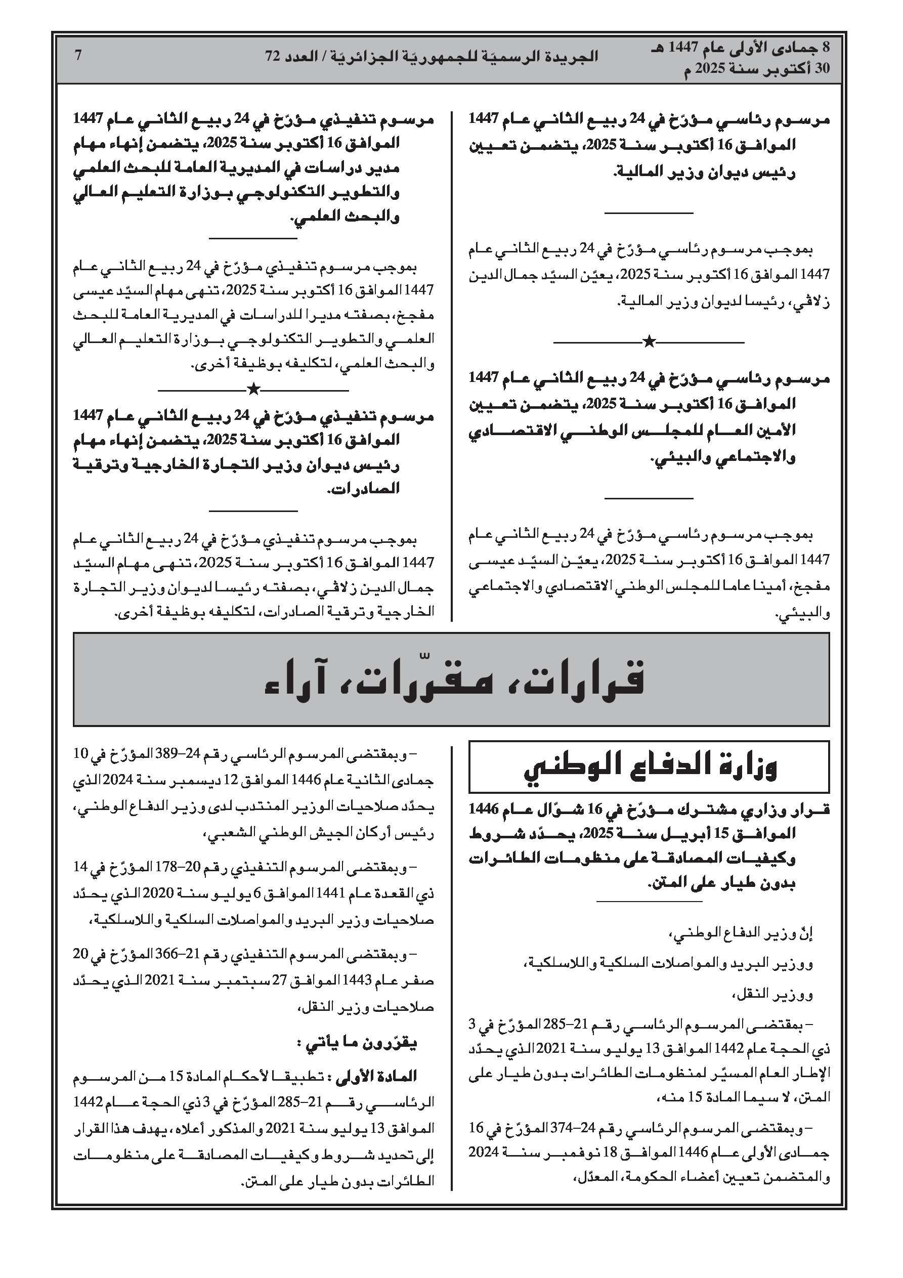 العدد الأخير من الجريدة الرسمية الجزائرية الصادرة في 30 أكتوبر 2025: