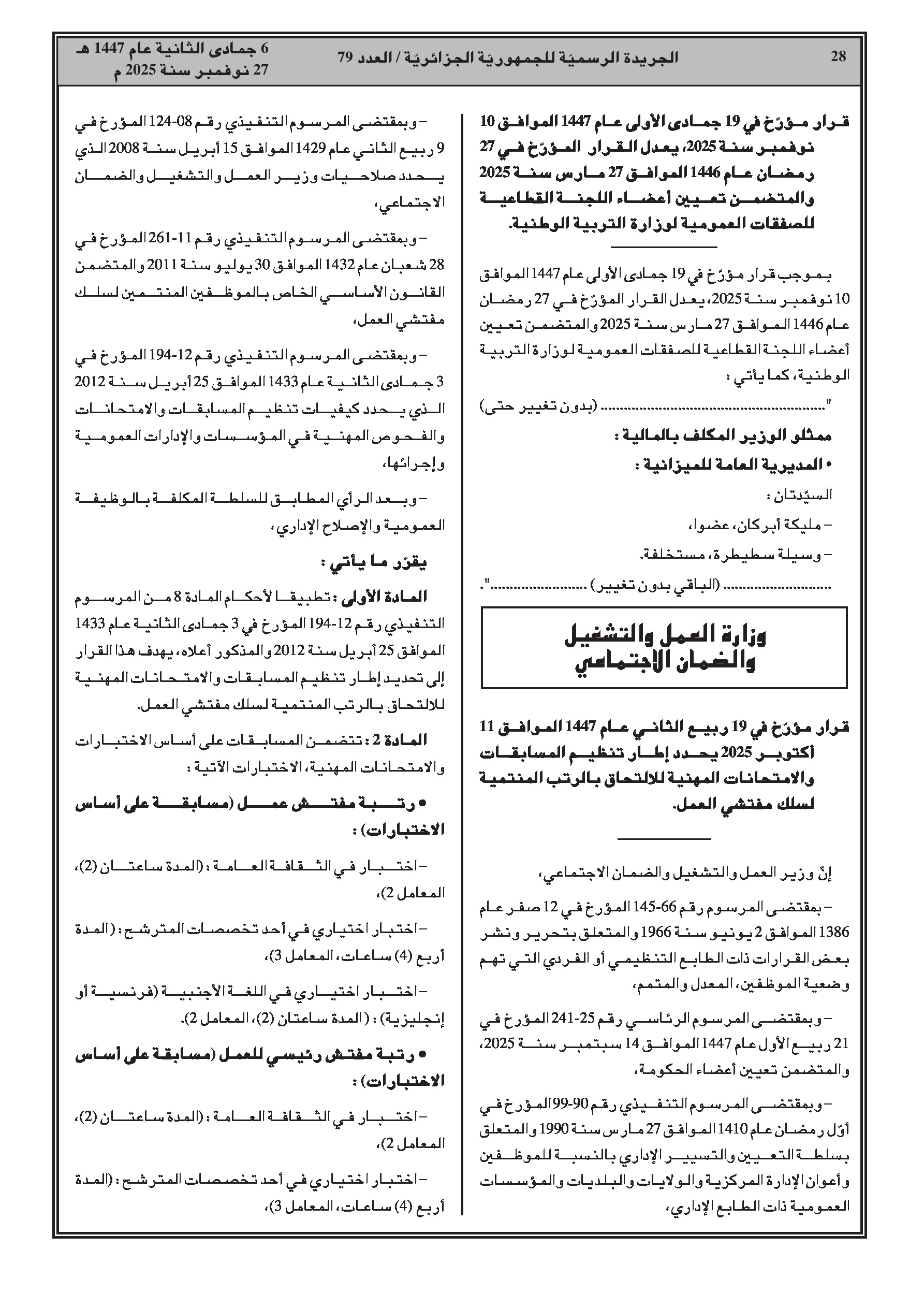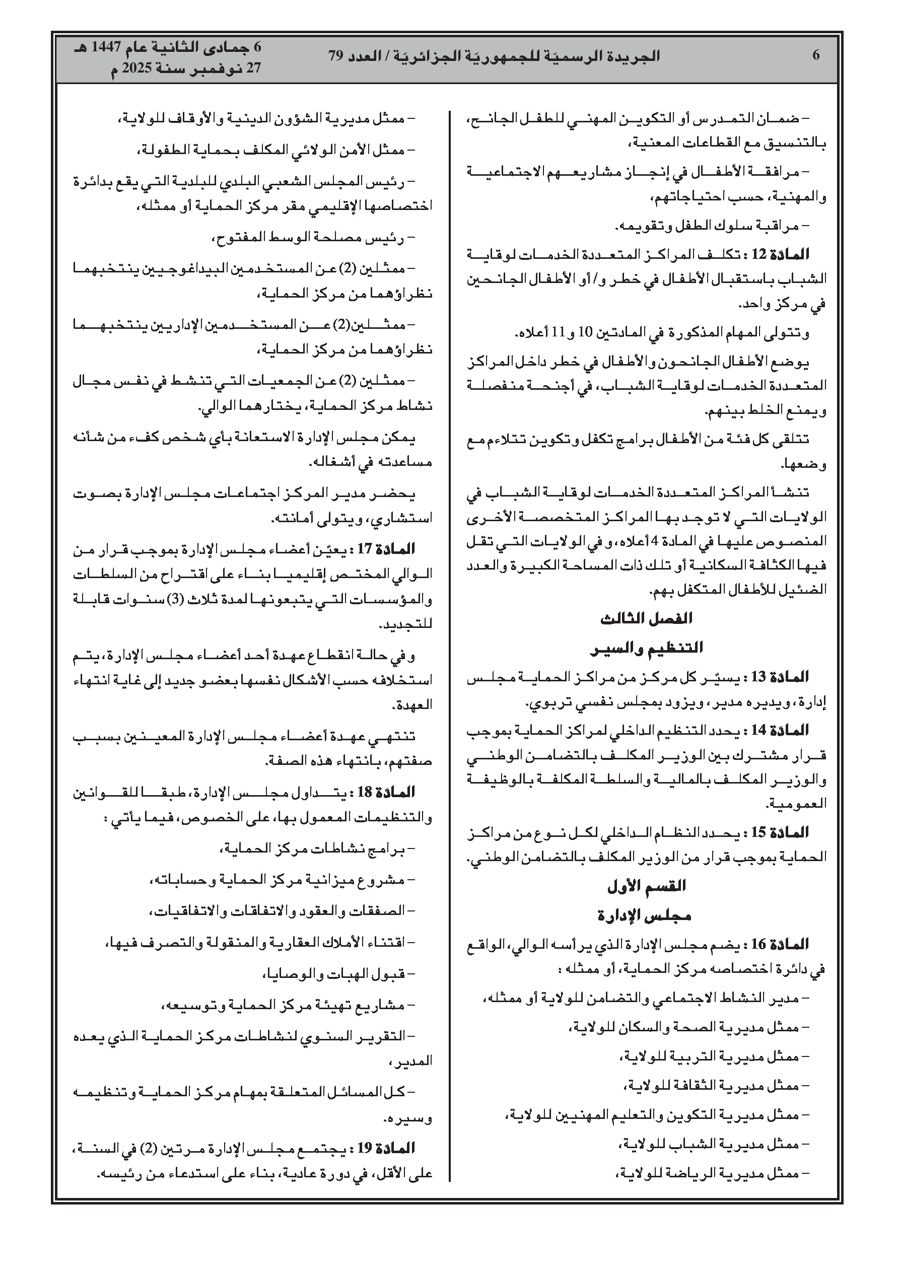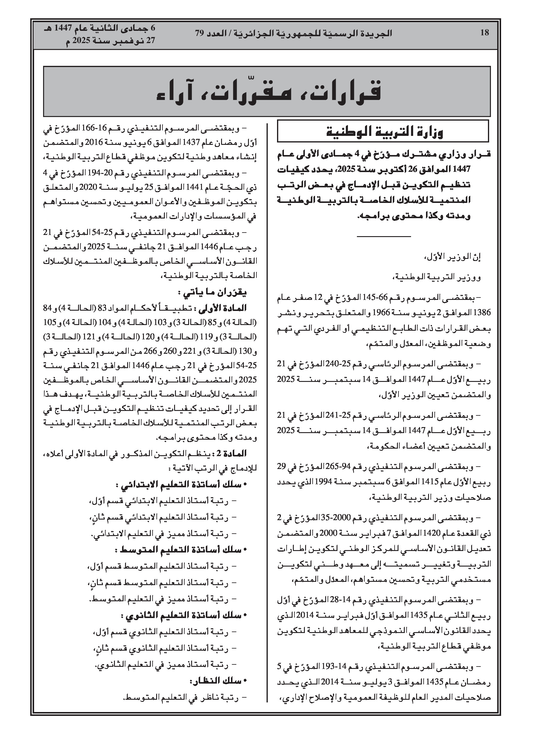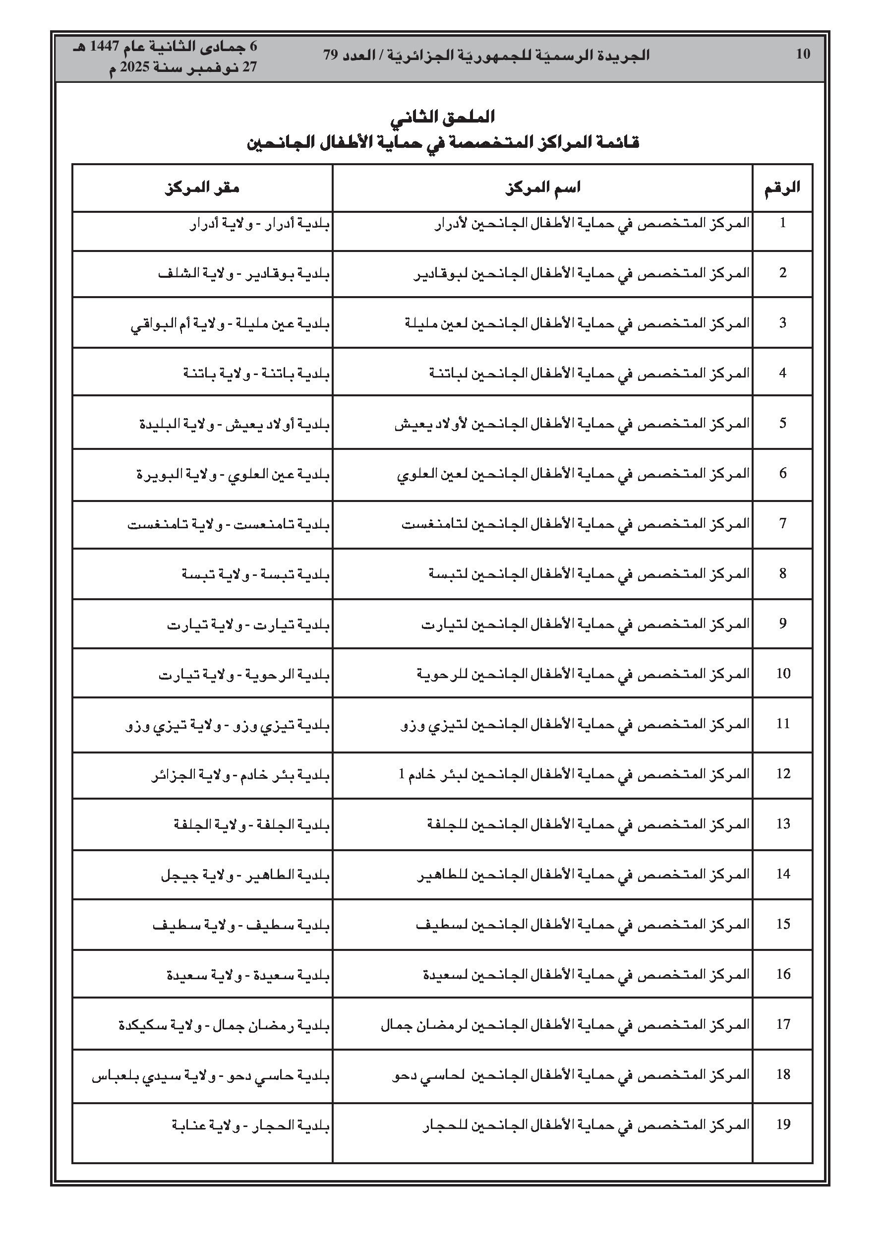 العدد 79 من الجريدة الرسمية الجزائرية الصادرة بتاريخ 27 نوفمبر 2025: تنظيم مراكز حماية الطفولة، اليقظة السيبرانية وبرامج تكوين لموظفي التربية
