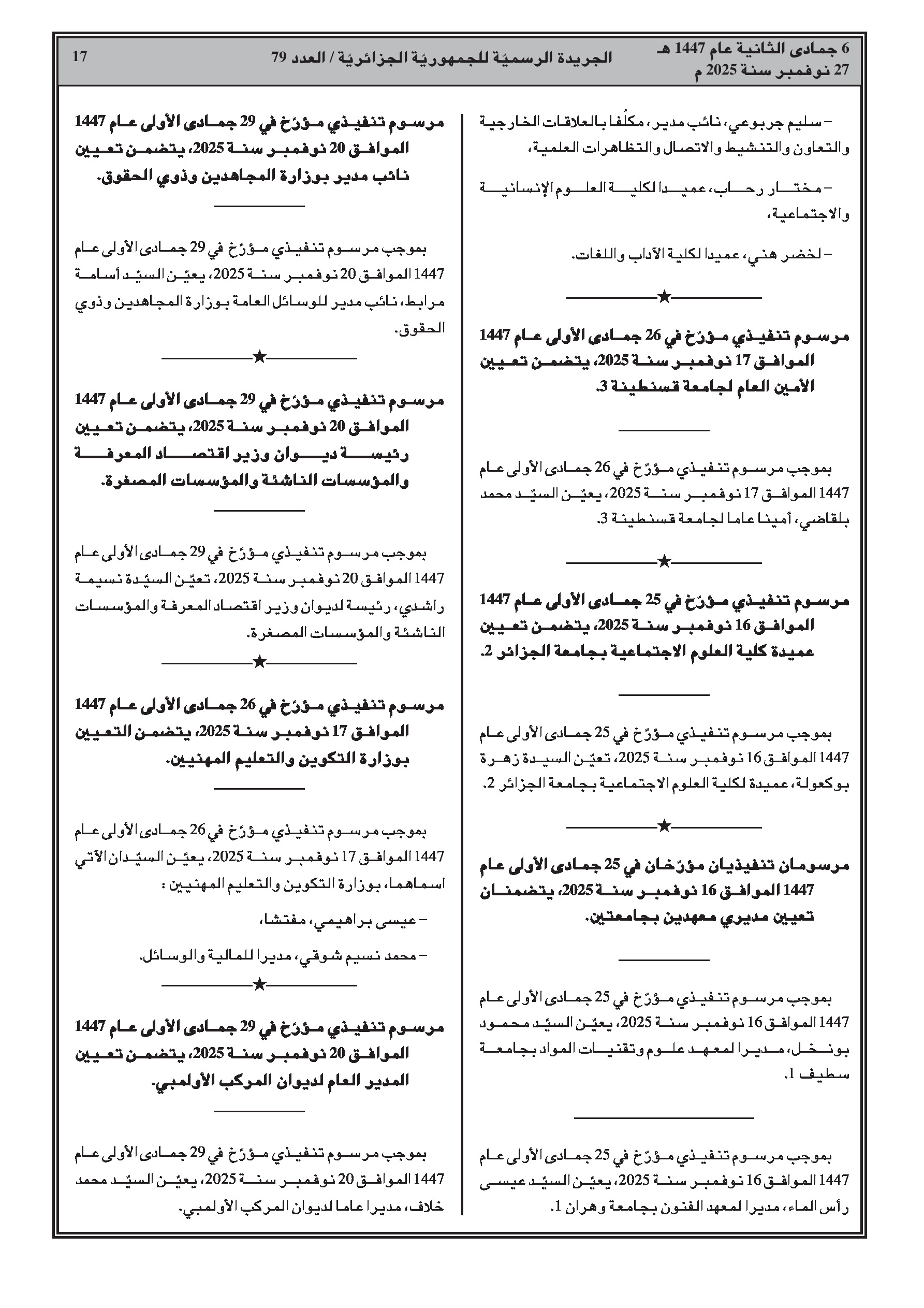 - تعيينات في مناصب عليا بجامعات المسيلة، قسنطينة 3، والجزائر 2.