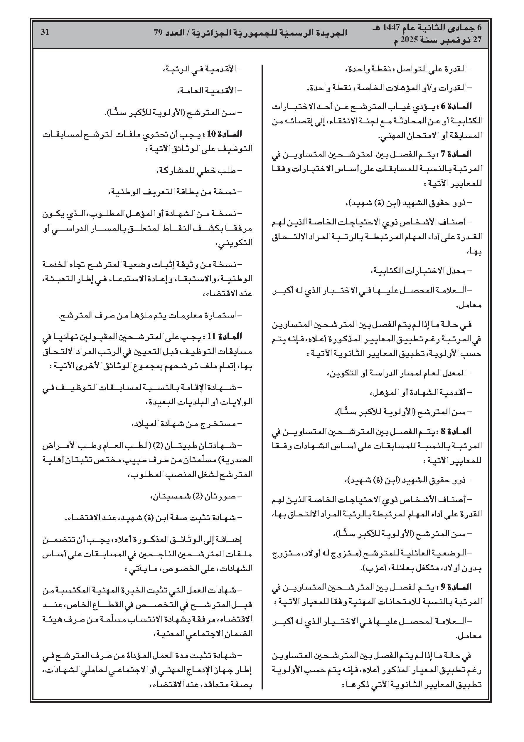 - معايير التنقيط للمسابقات على أساس الشهادة (تطابق التخصص، المسار الدراسي، الخبرة).
