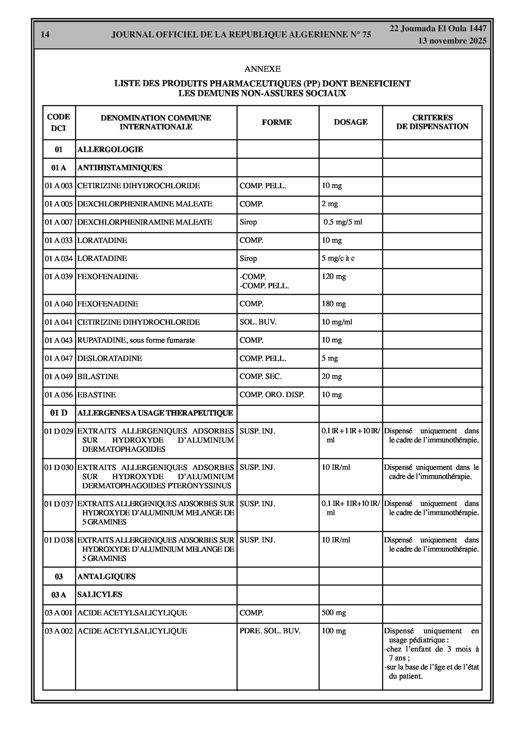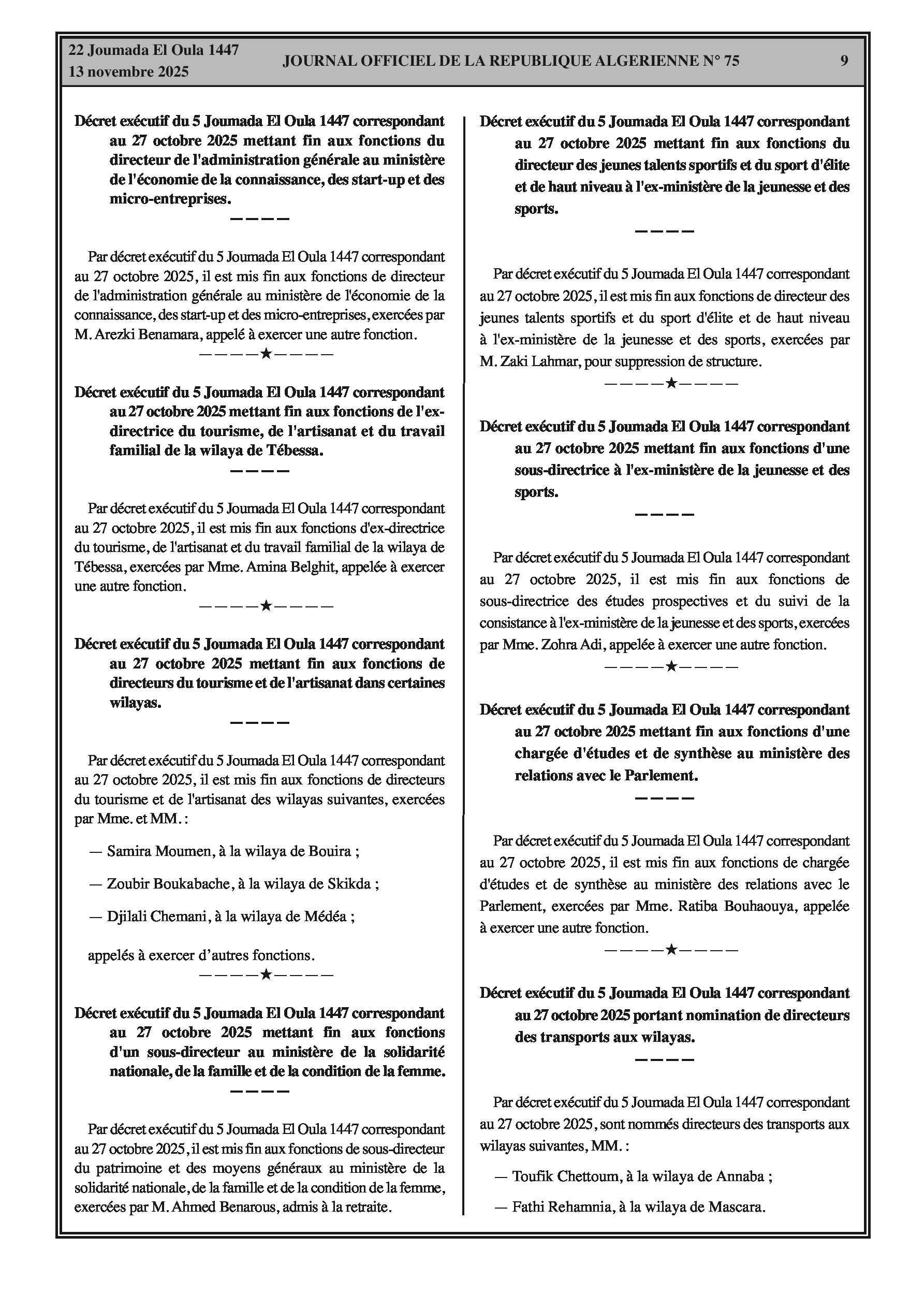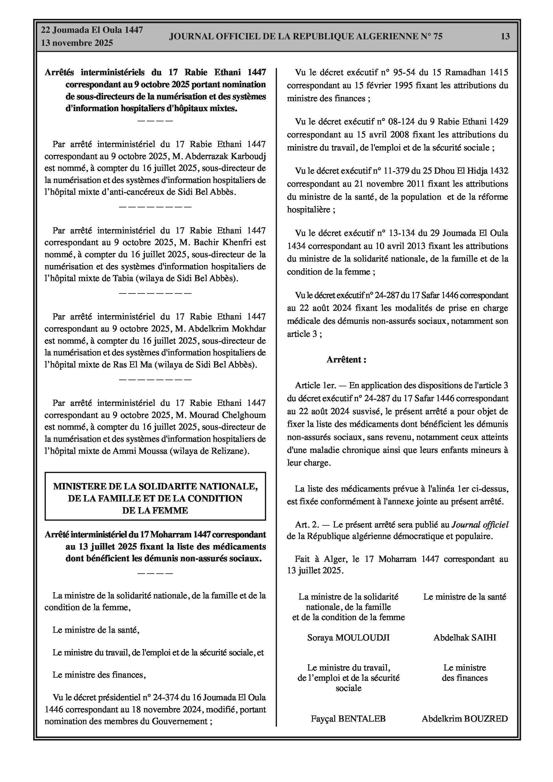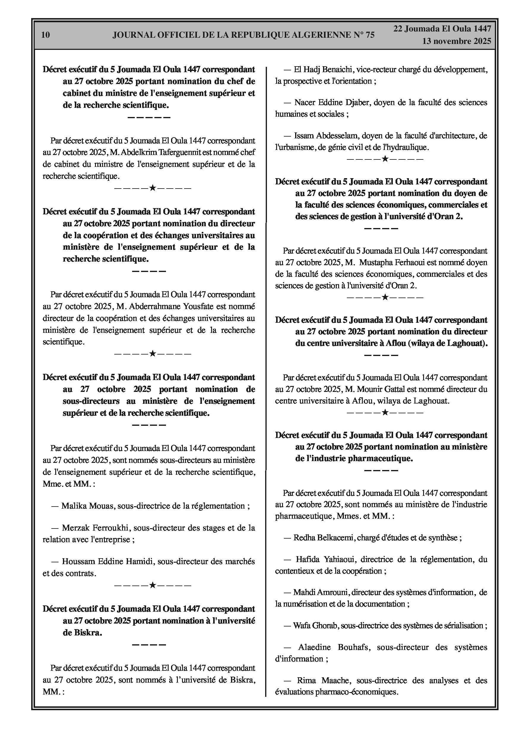 Issue #75 of the Official Gazette of the People's Democratic Republic of Algeria published on 13 November 2025: