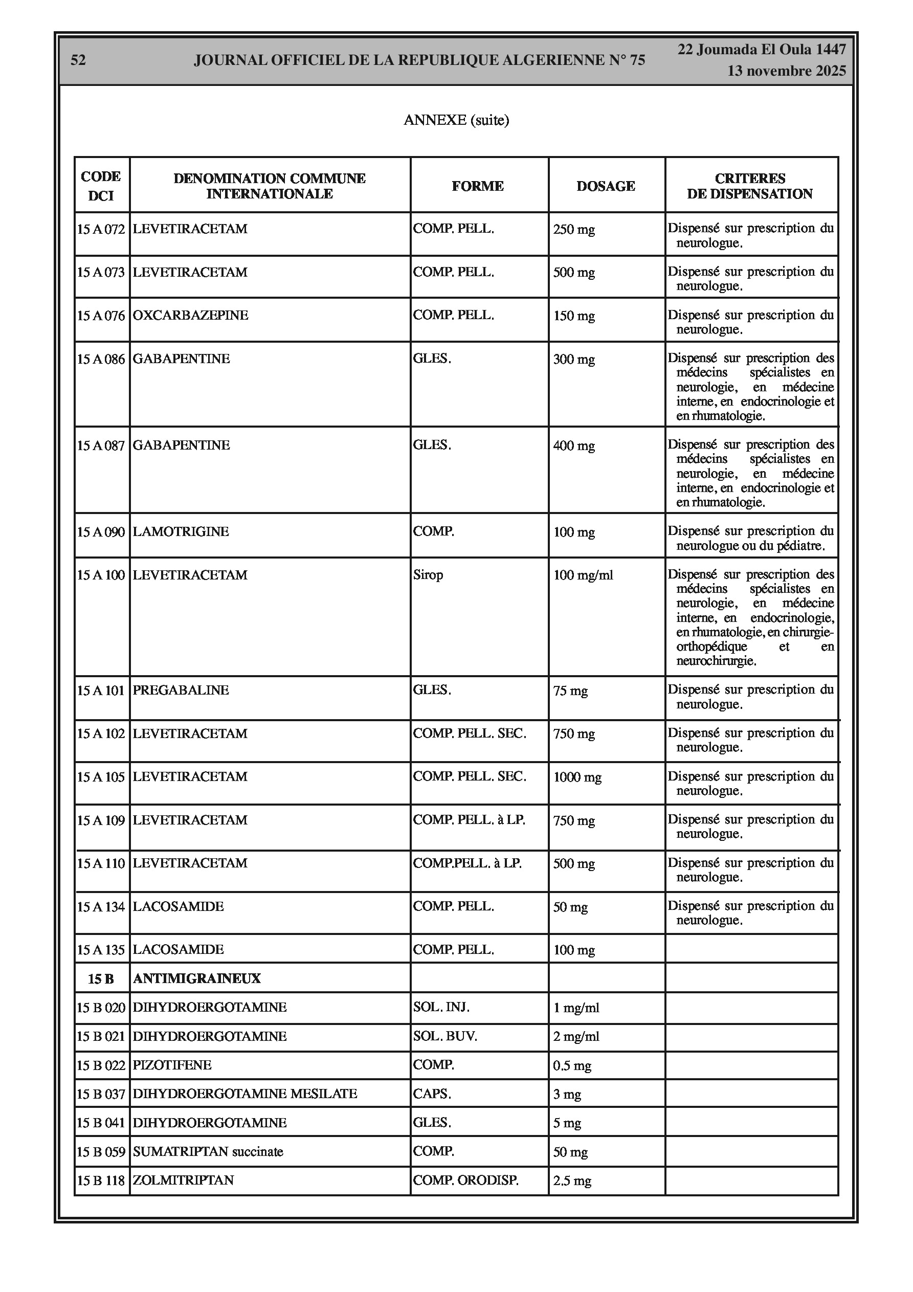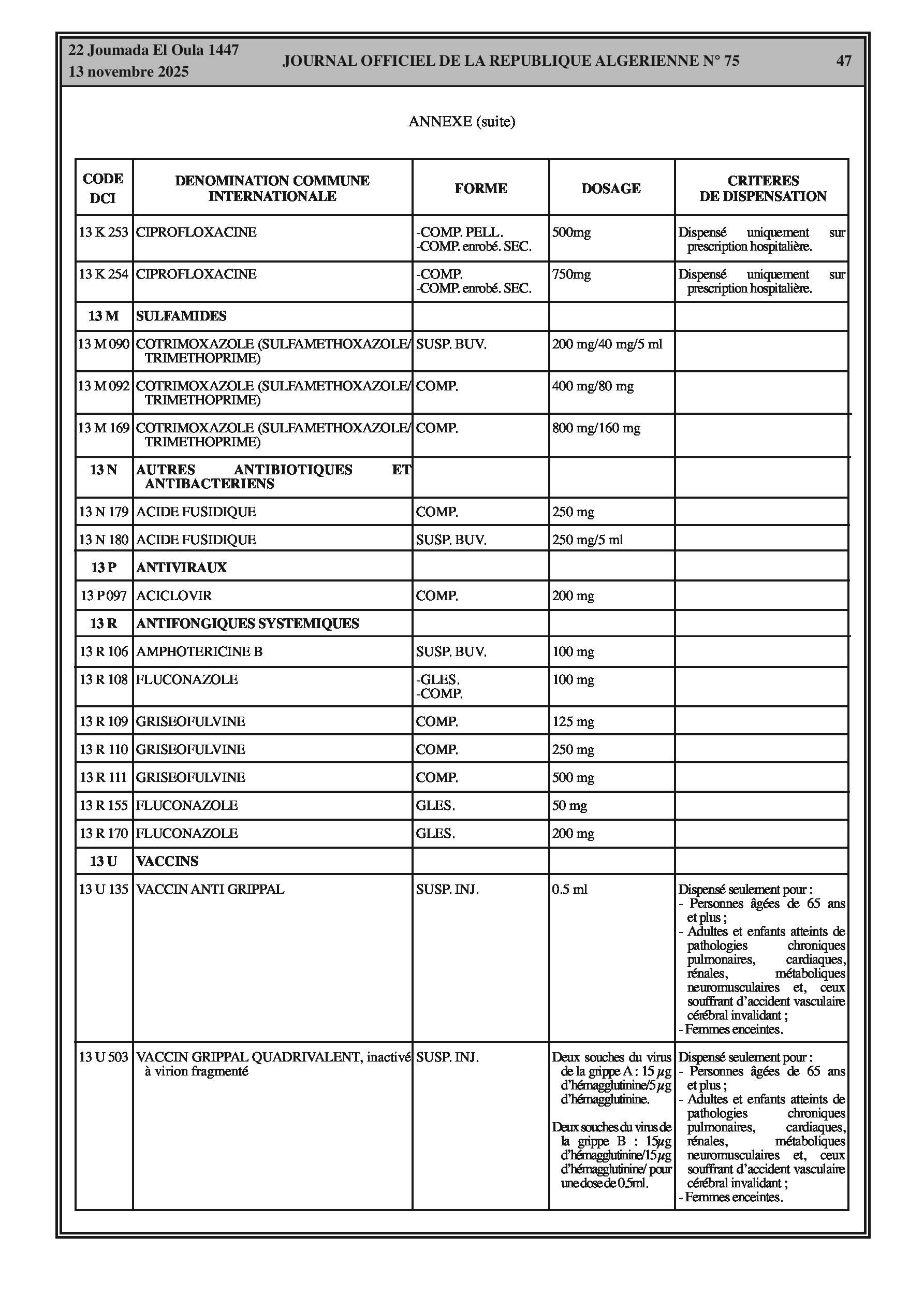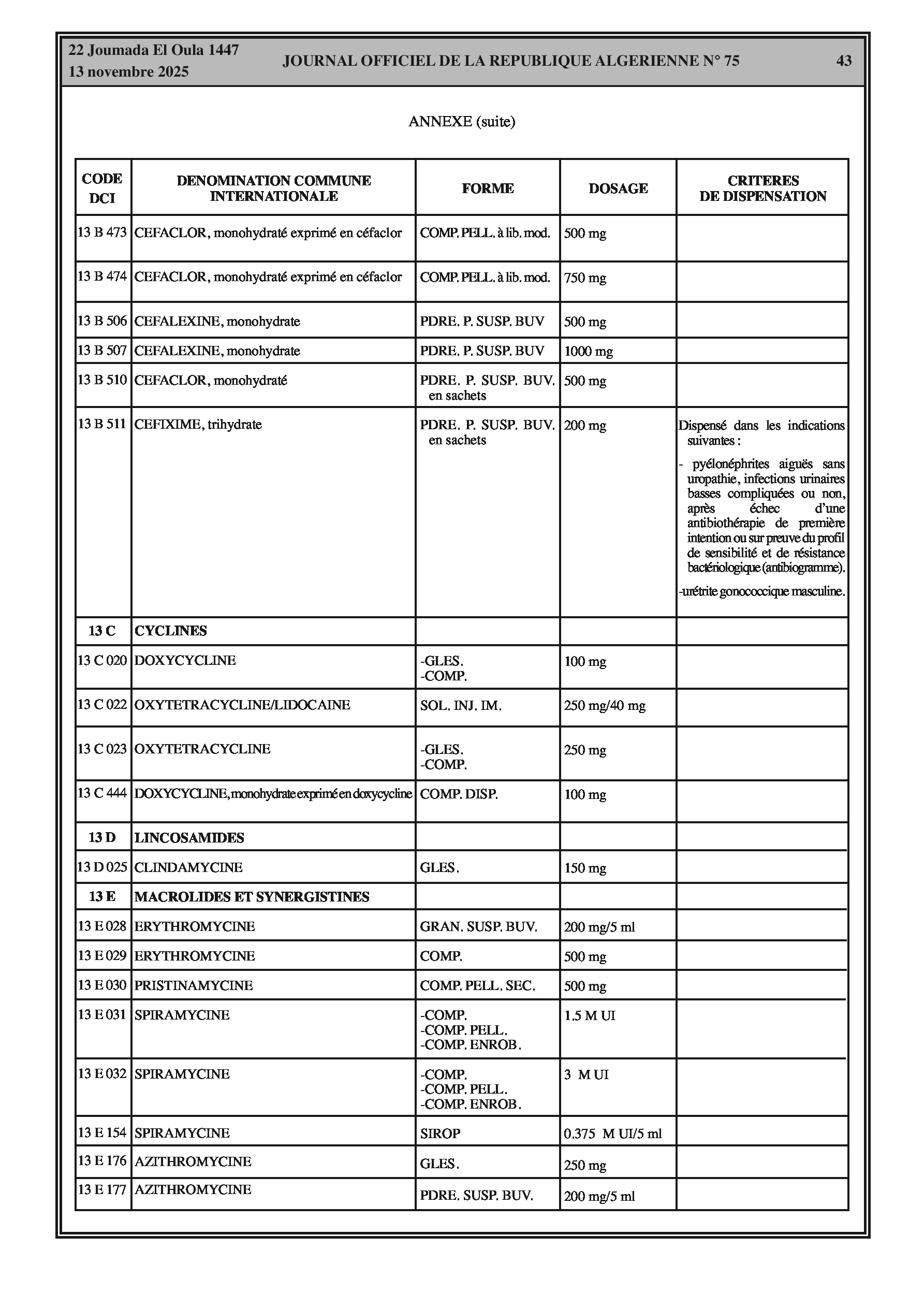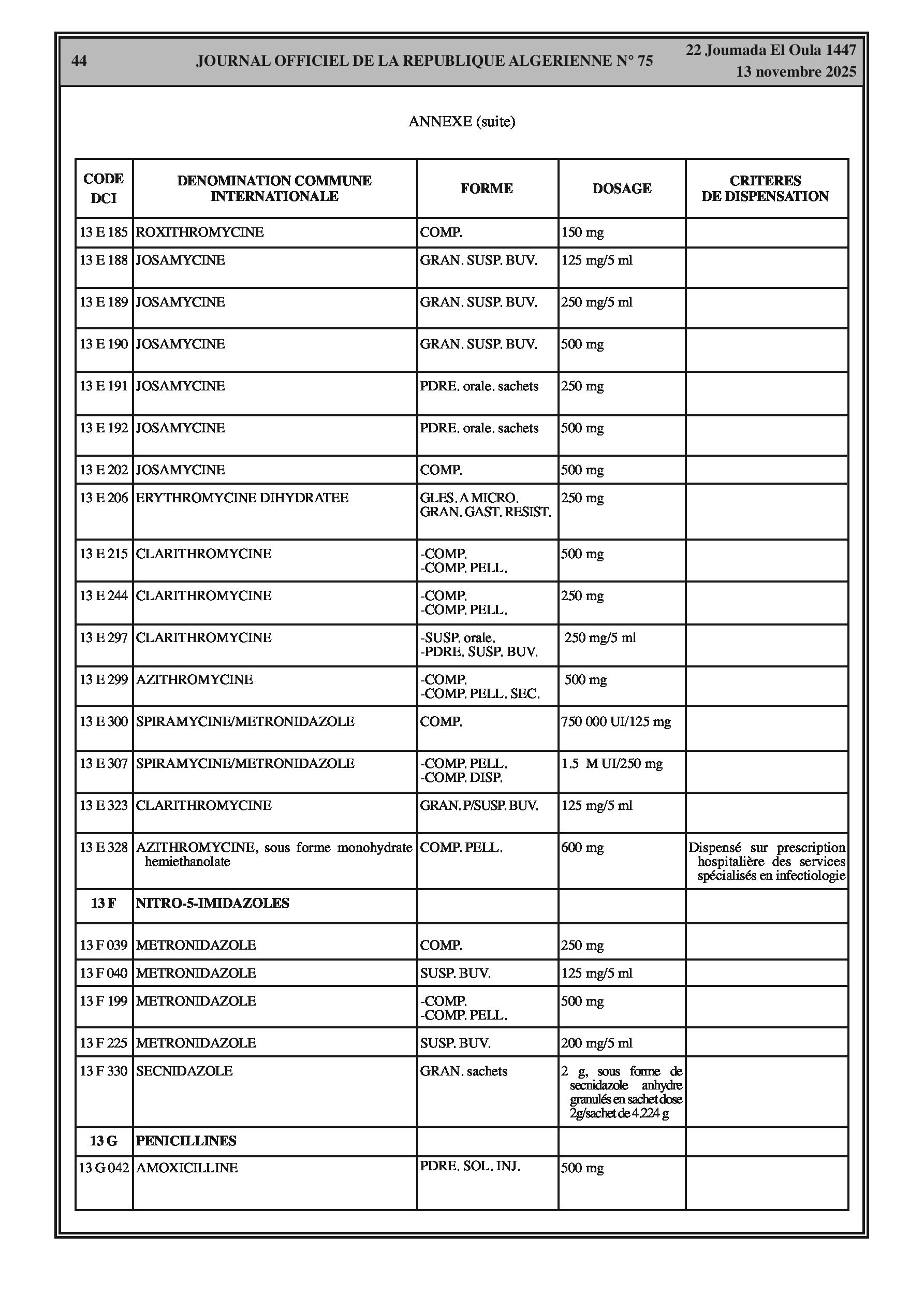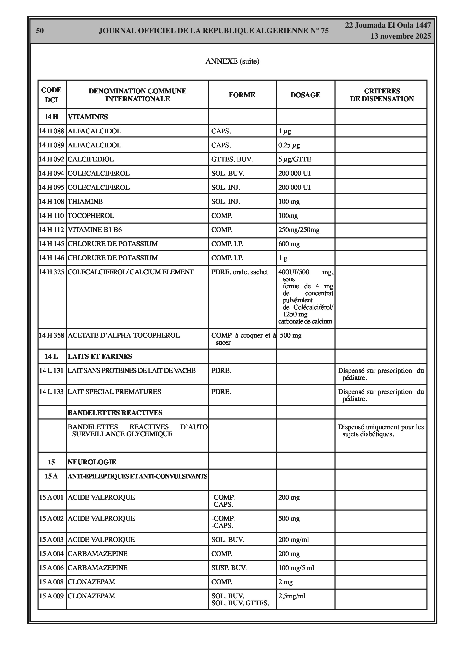 Issue #75 of the Official Gazette of the People's Democratic Republic of Algeria published on 13 November 2025: