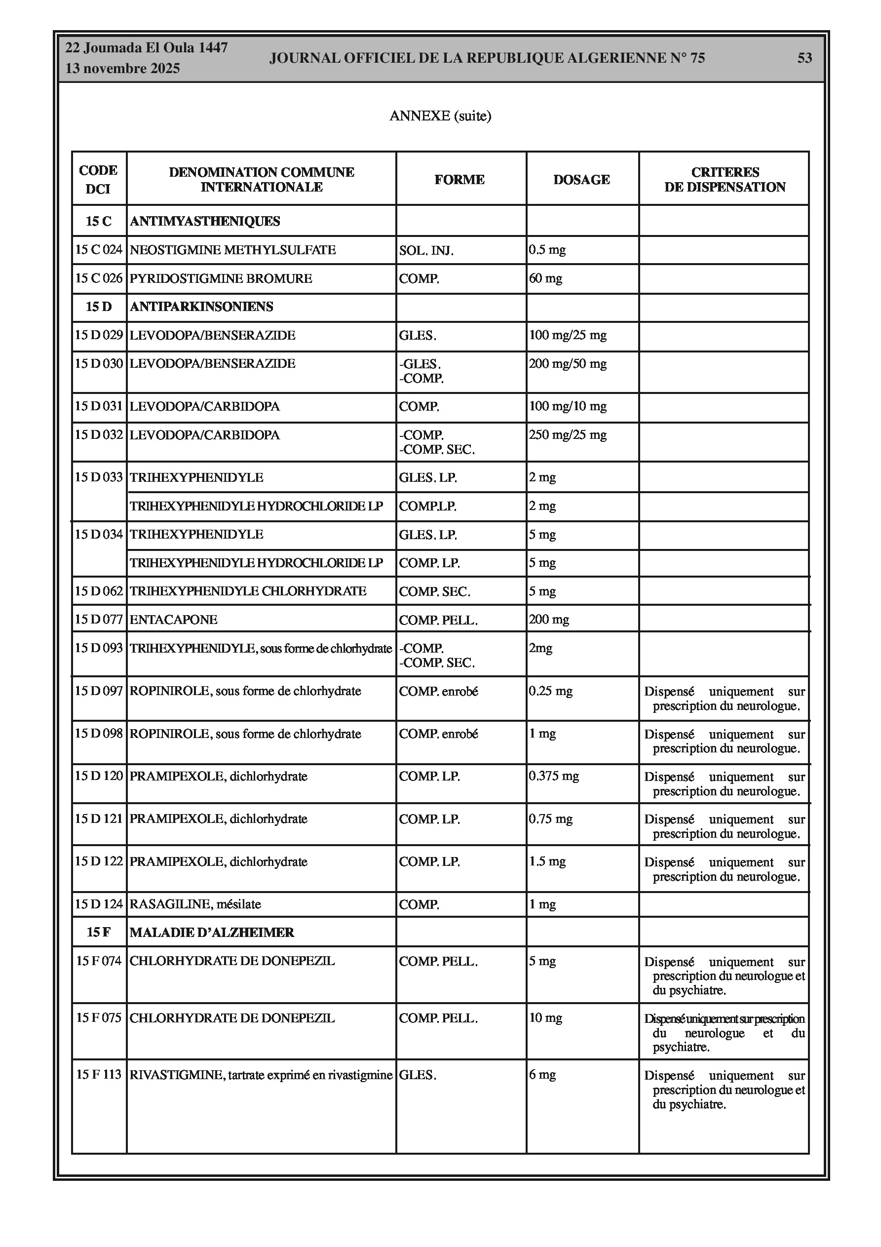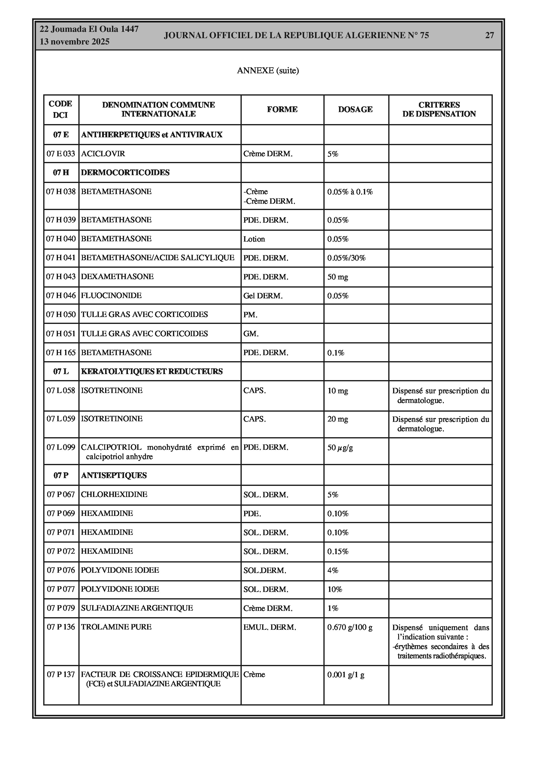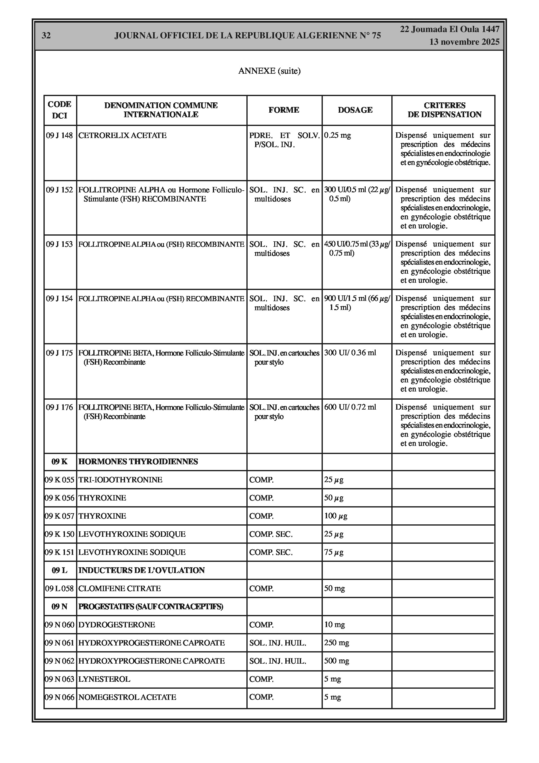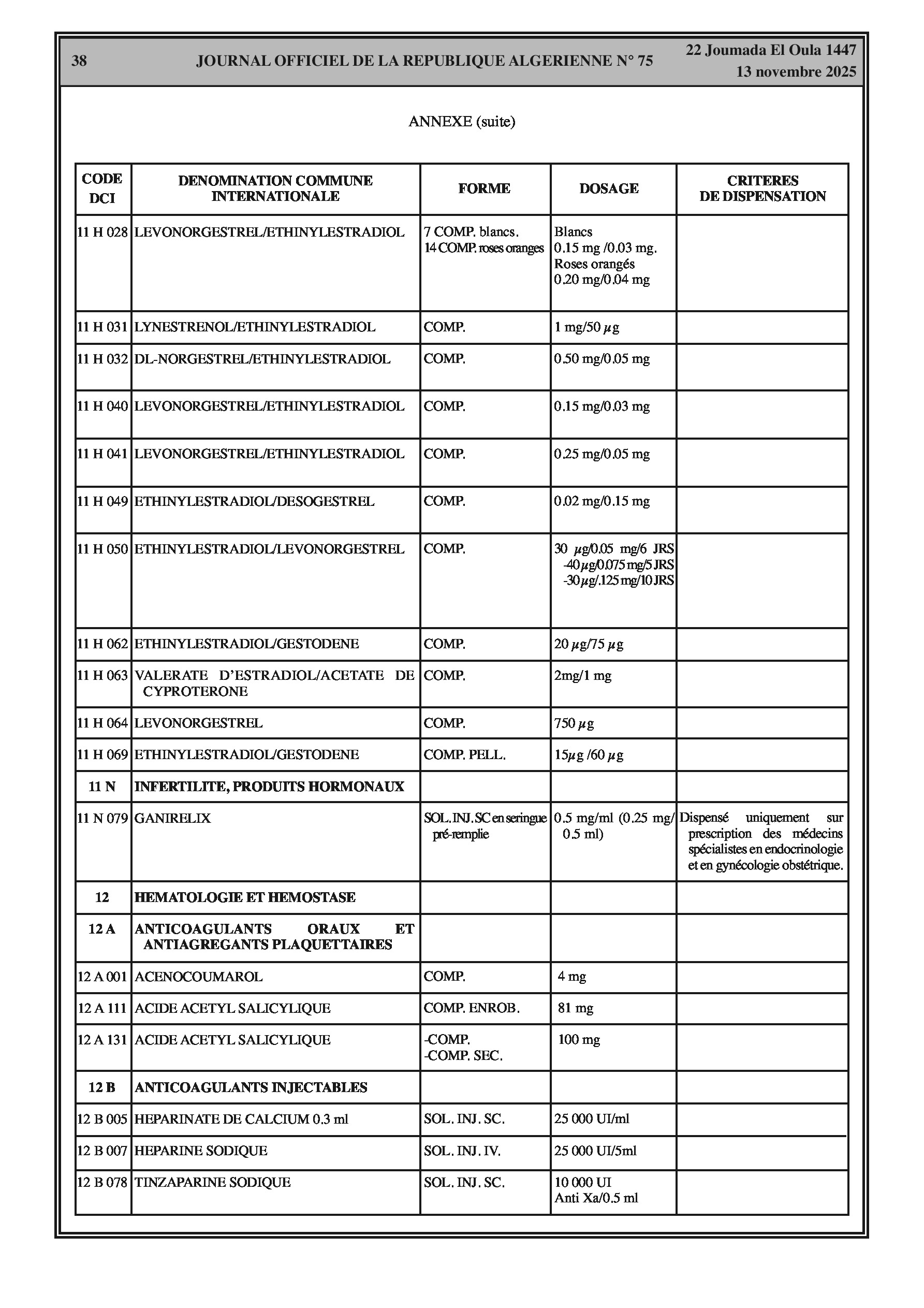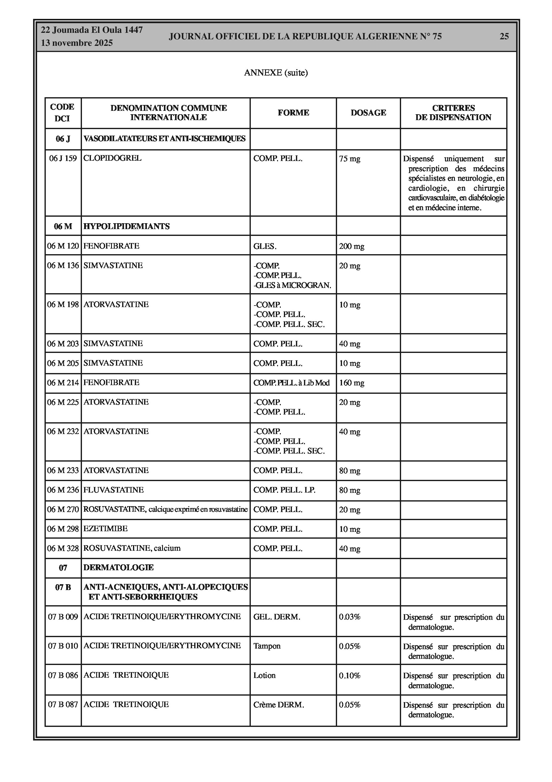 Issue #75 of the Official Gazette of the People's Democratic Republic of Algeria published on 13 November 2025: