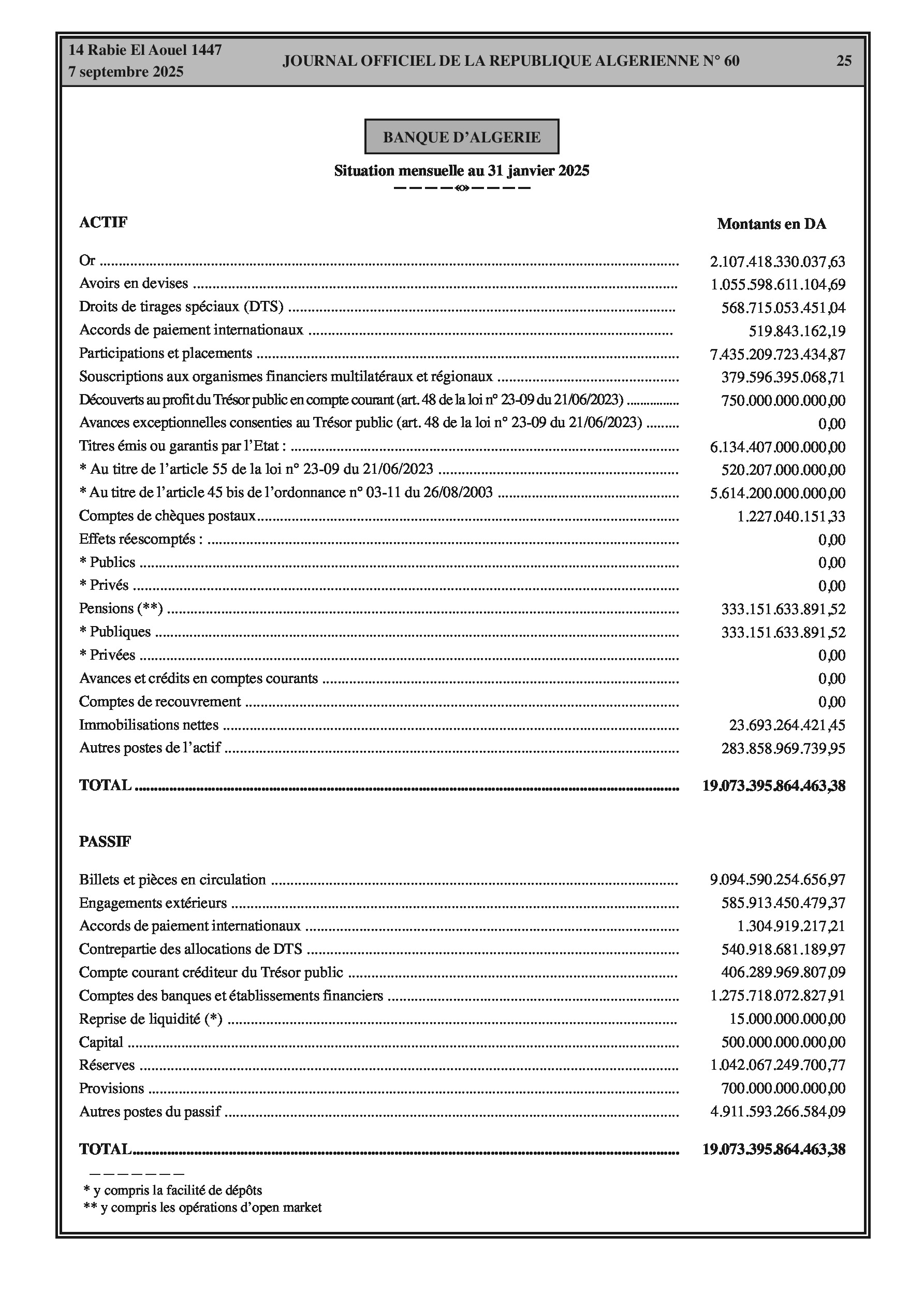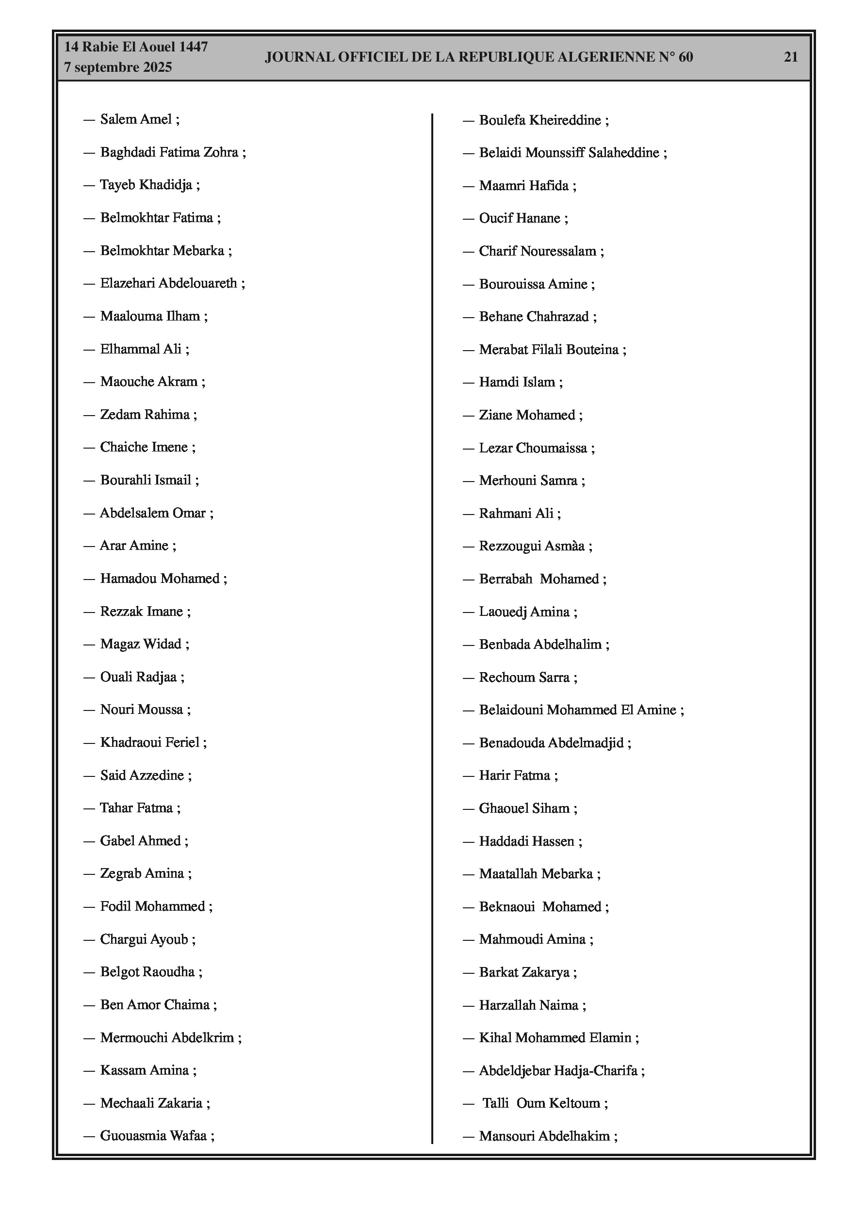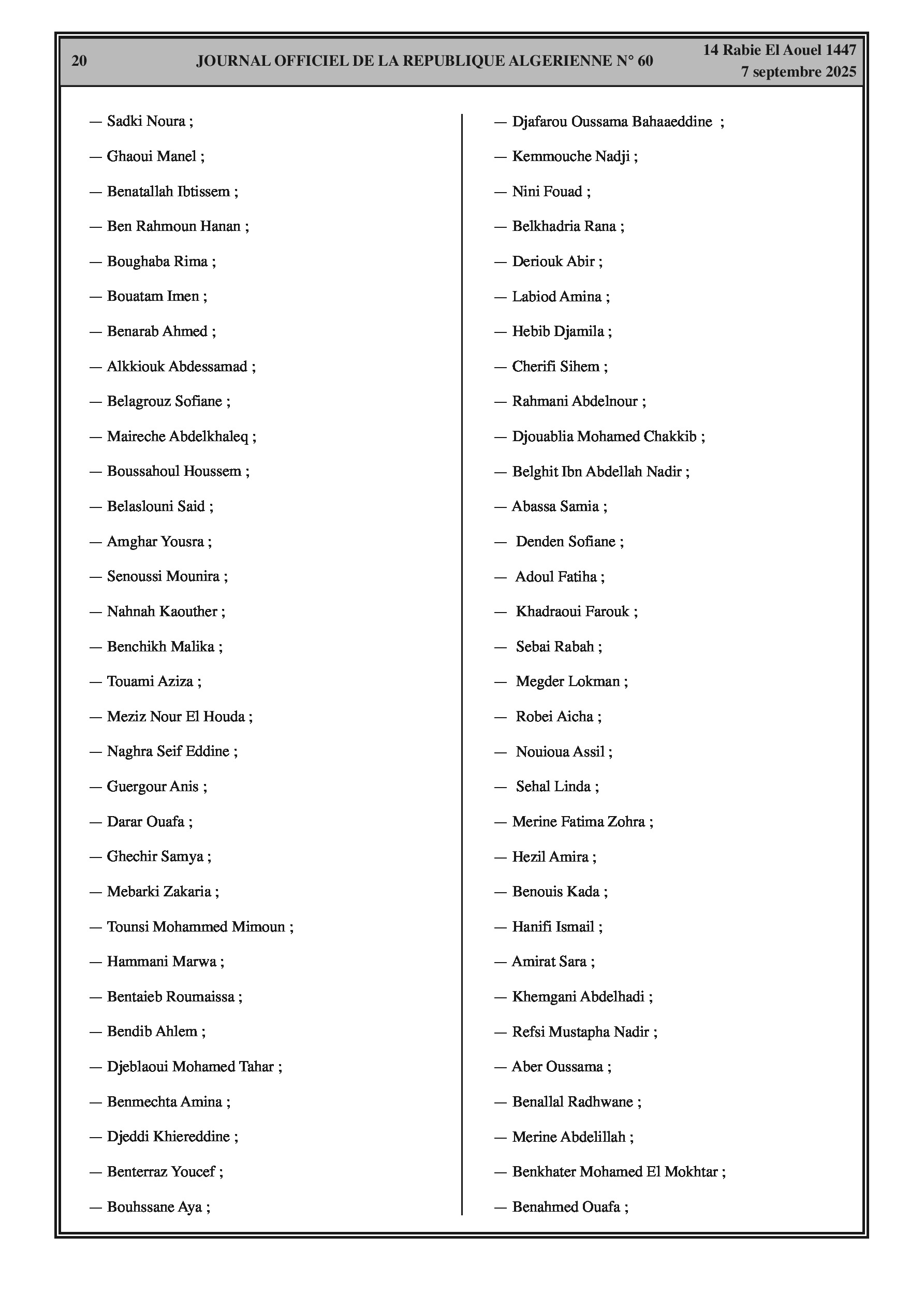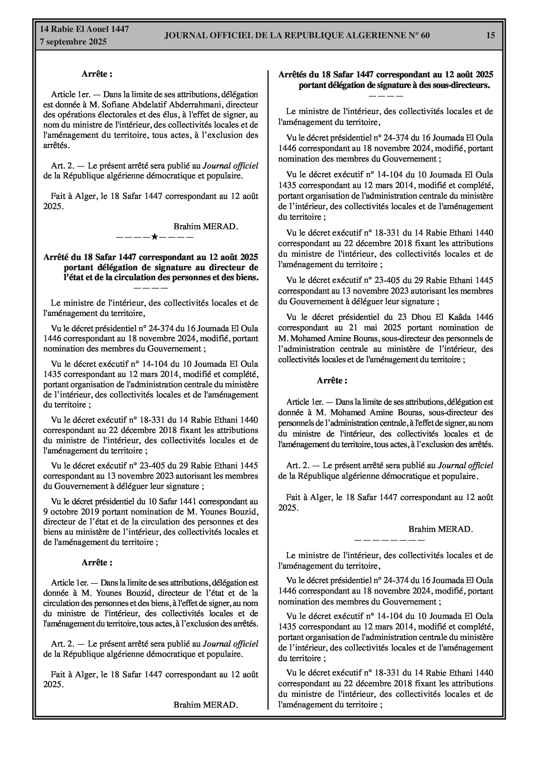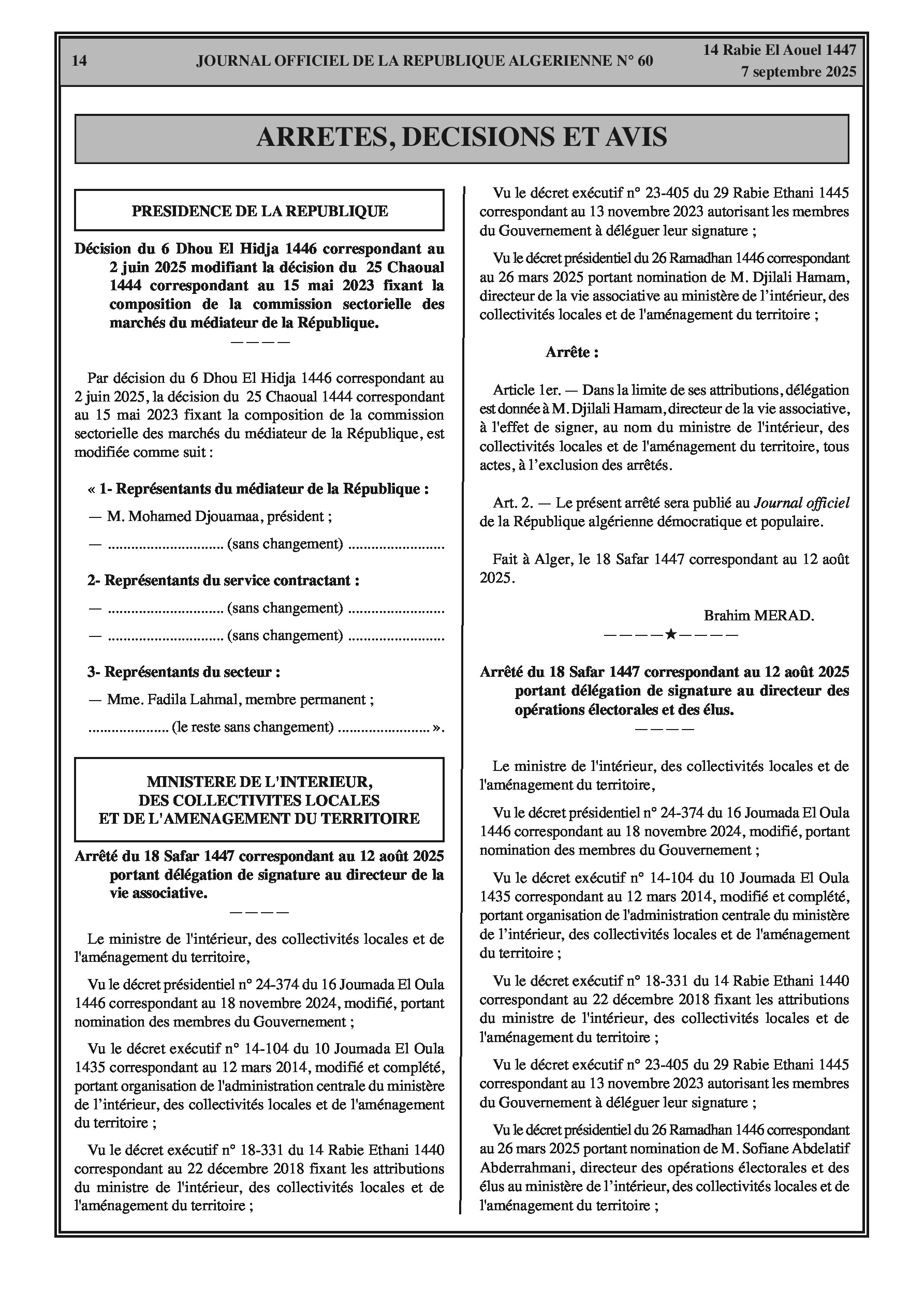 N°60 du Journal officiel de la République Algérienne Démocratique et Populaire publié le 07 septembre 2025: