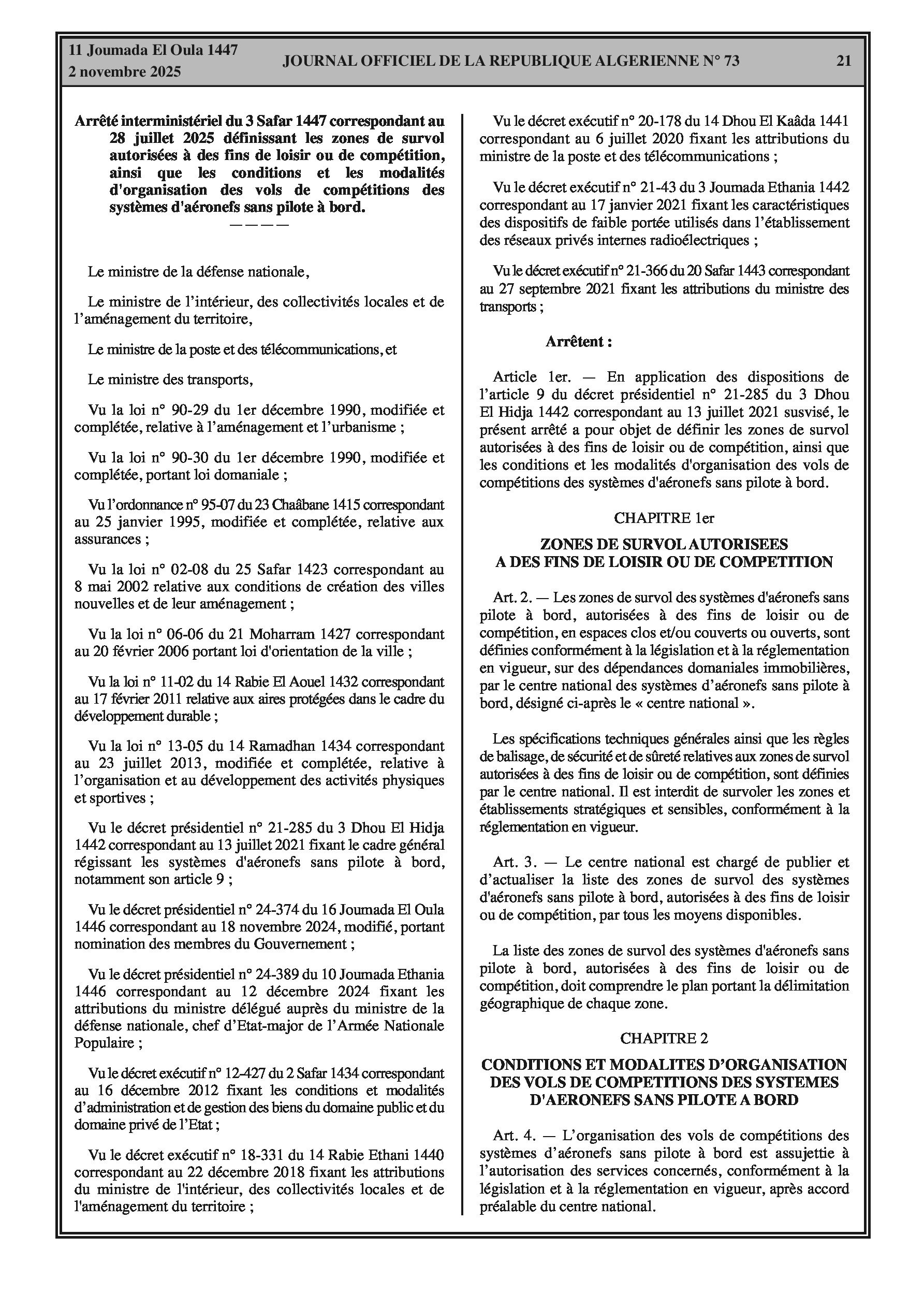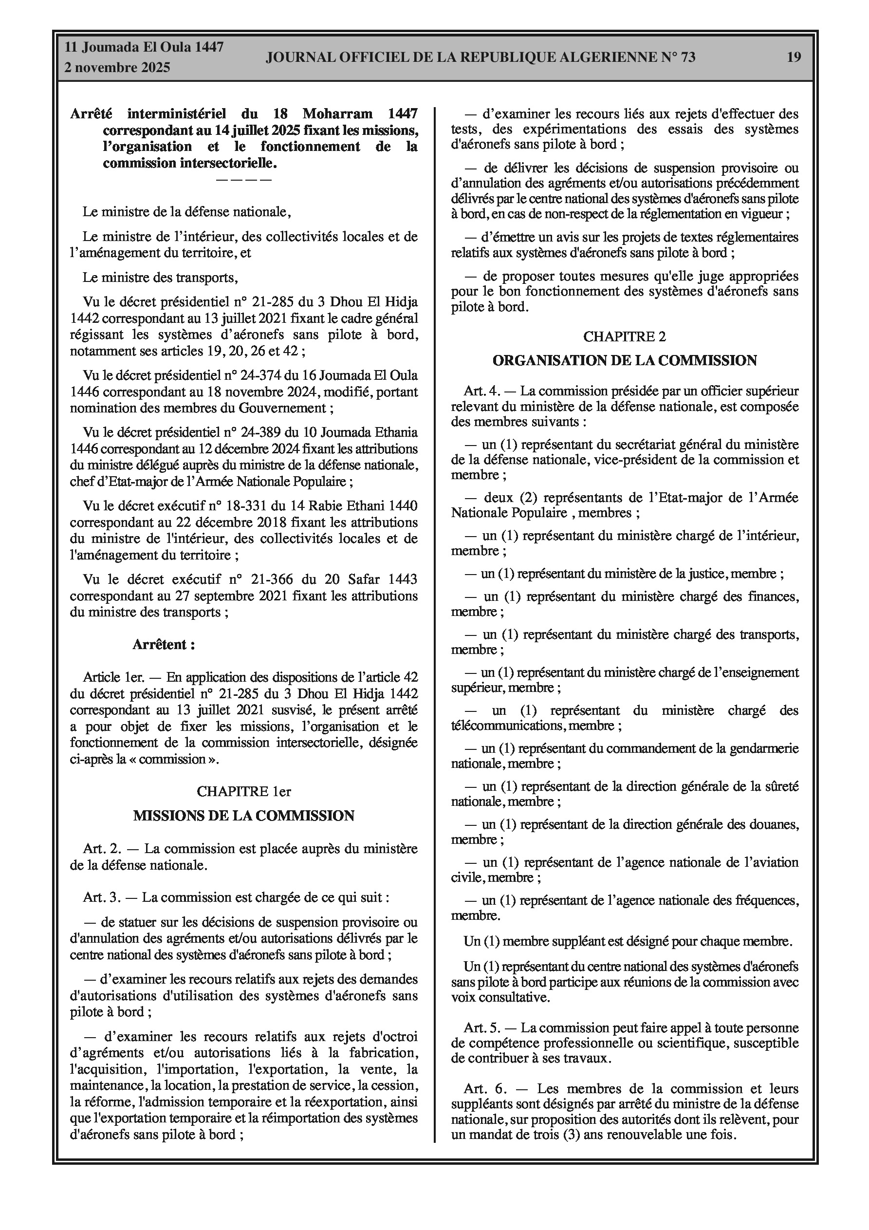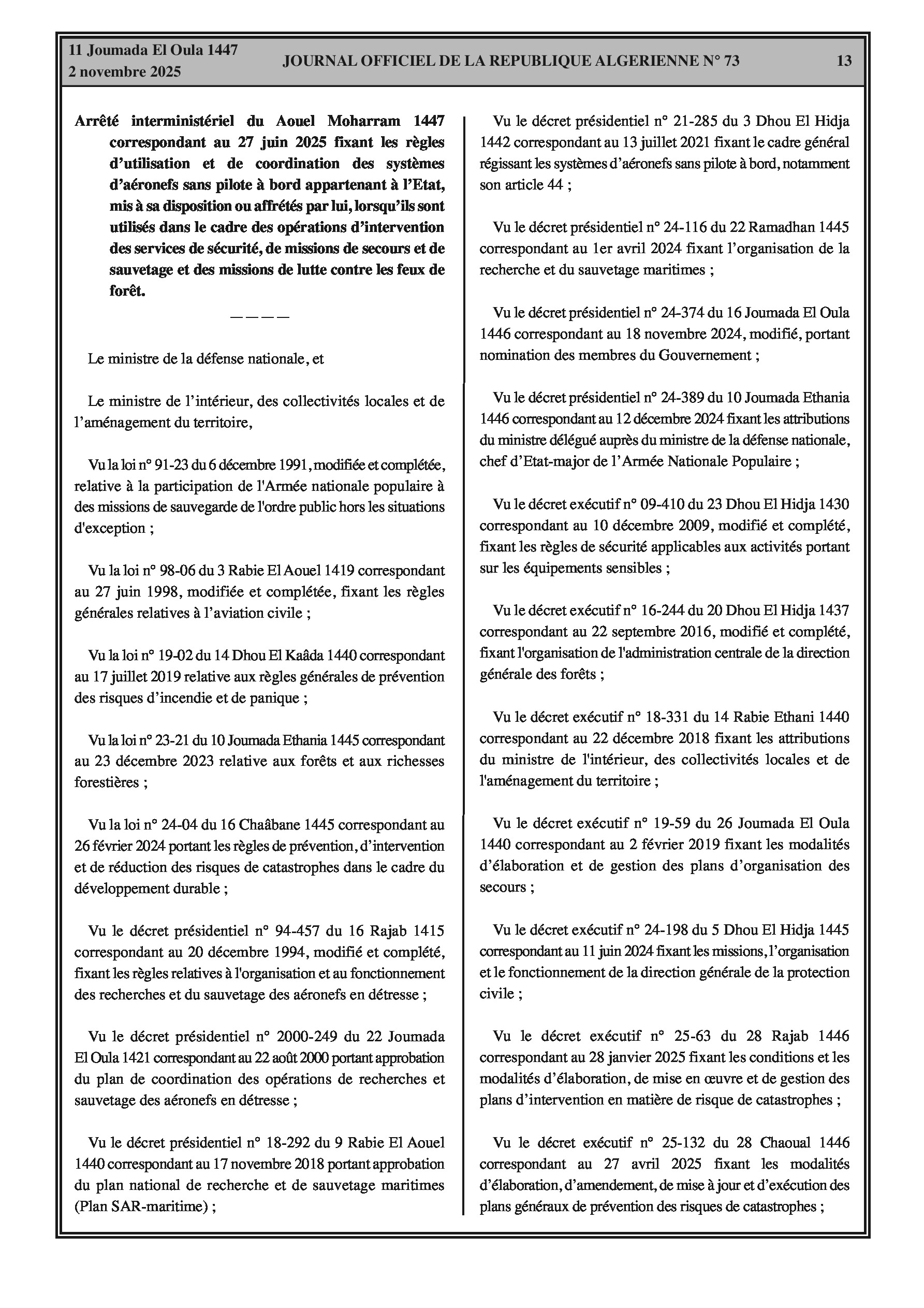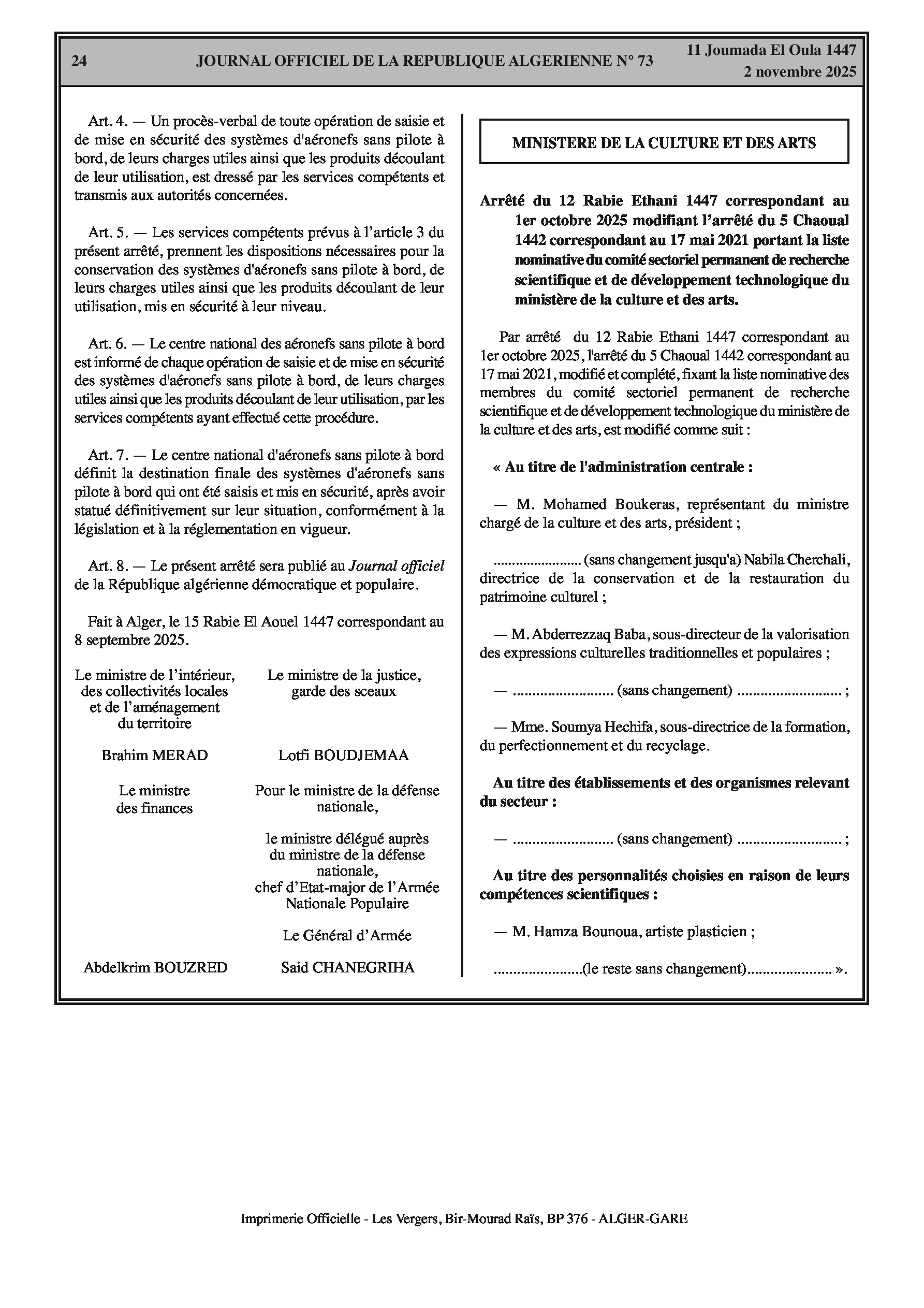 N°73 du Journal officiel de la République Algérienne Démocratique et Populaire publié le 02 novembre 2025: