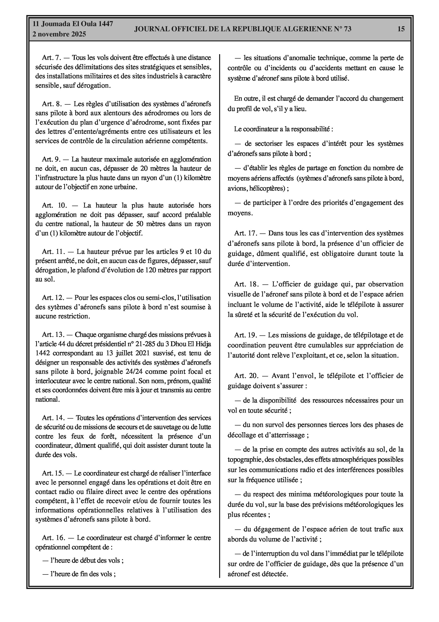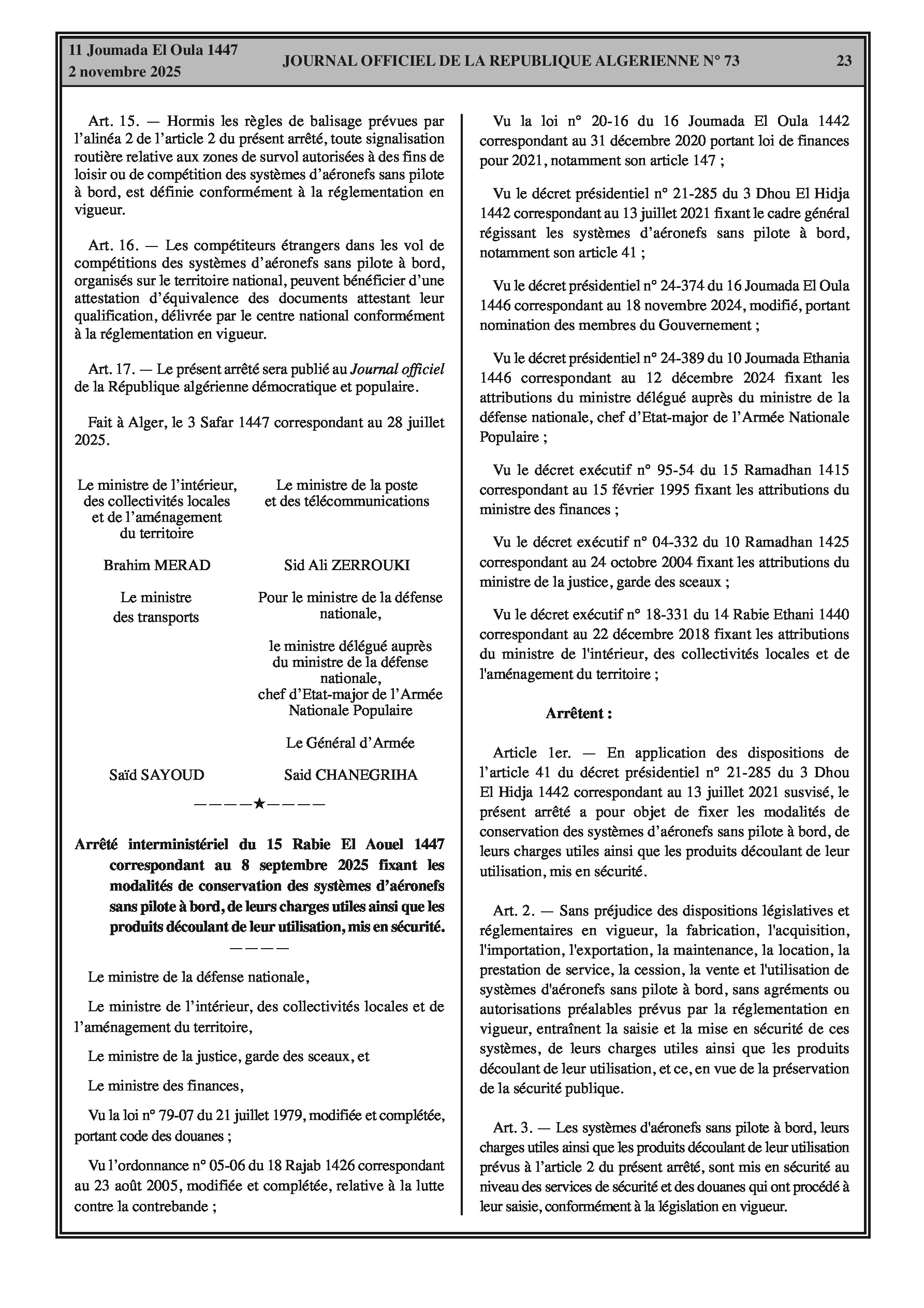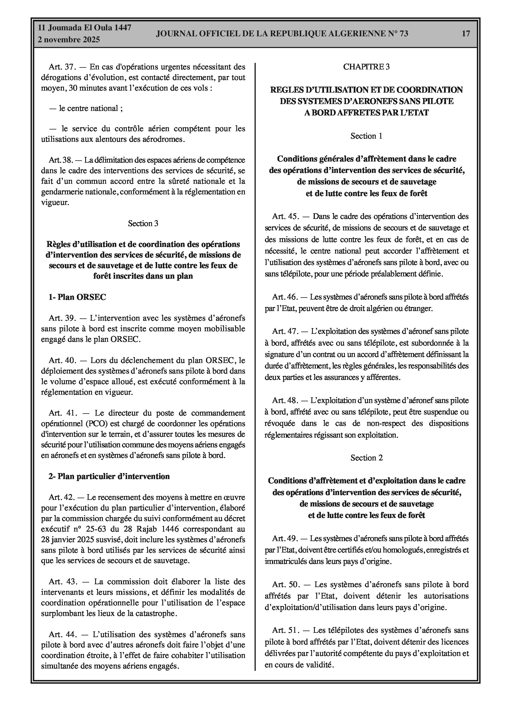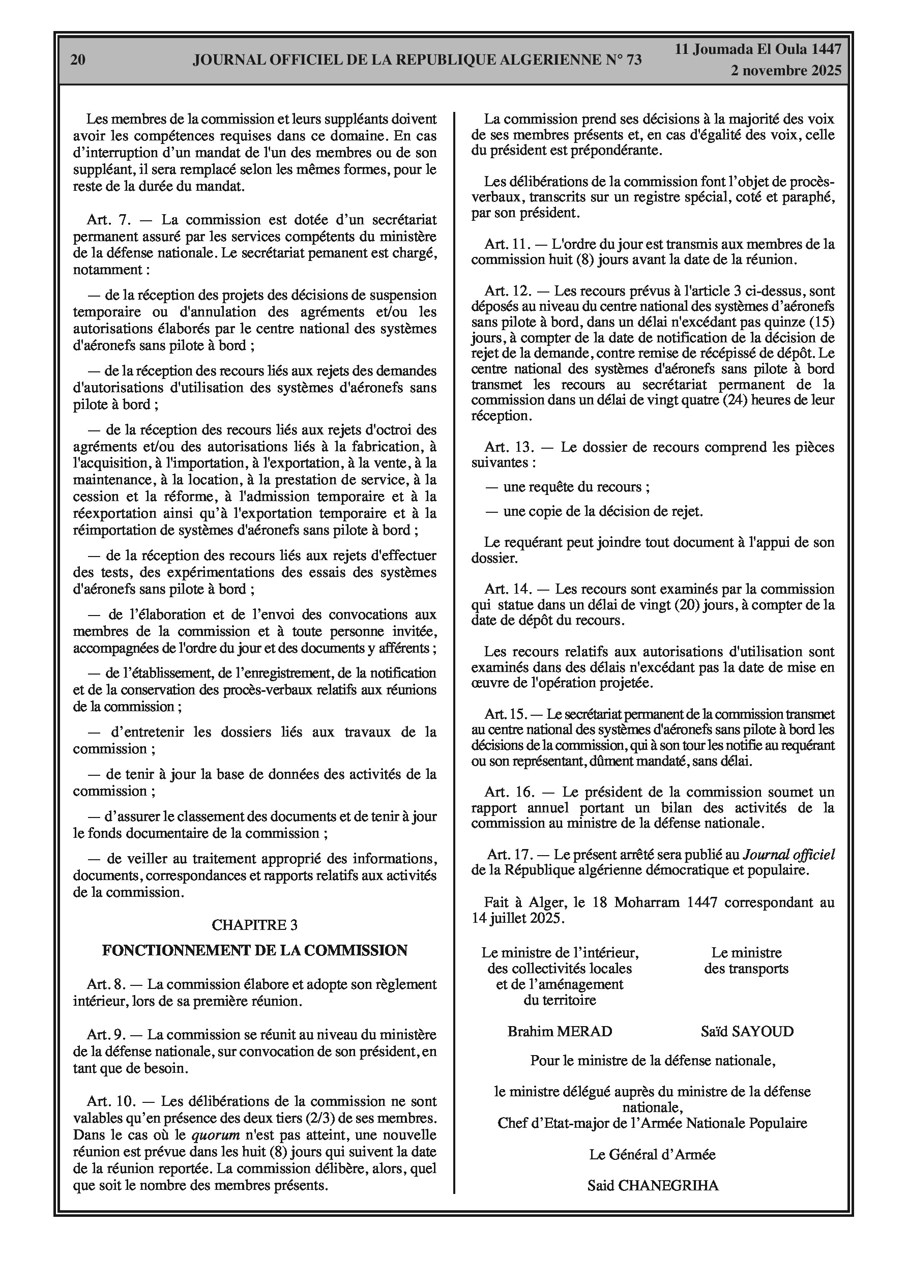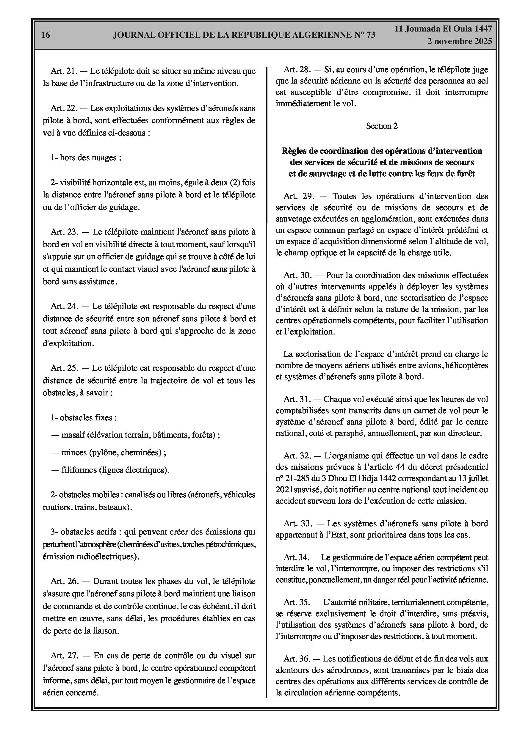 N°73 du Journal officiel de la République Algérienne Démocratique et Populaire publié le 02 novembre 2025: