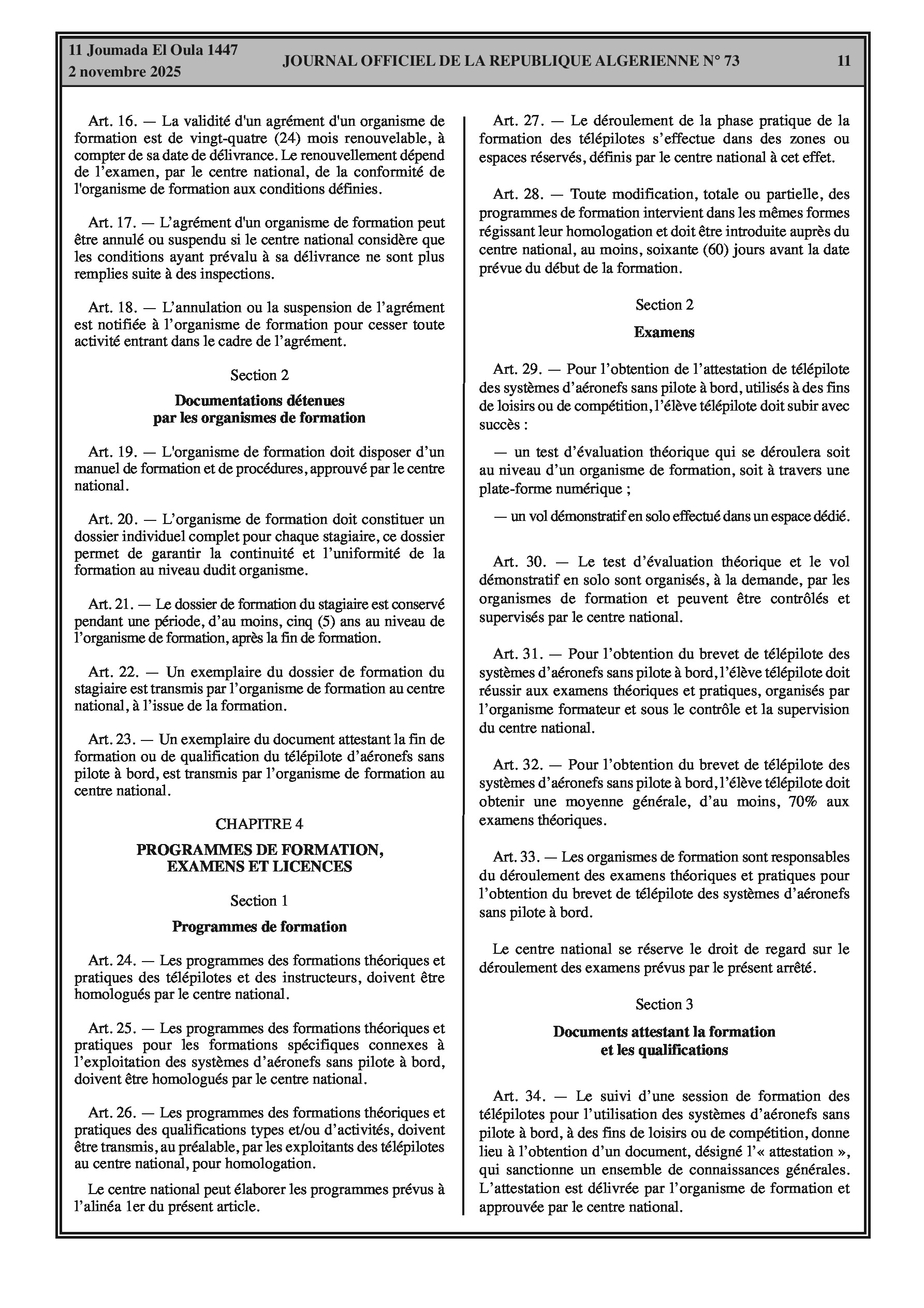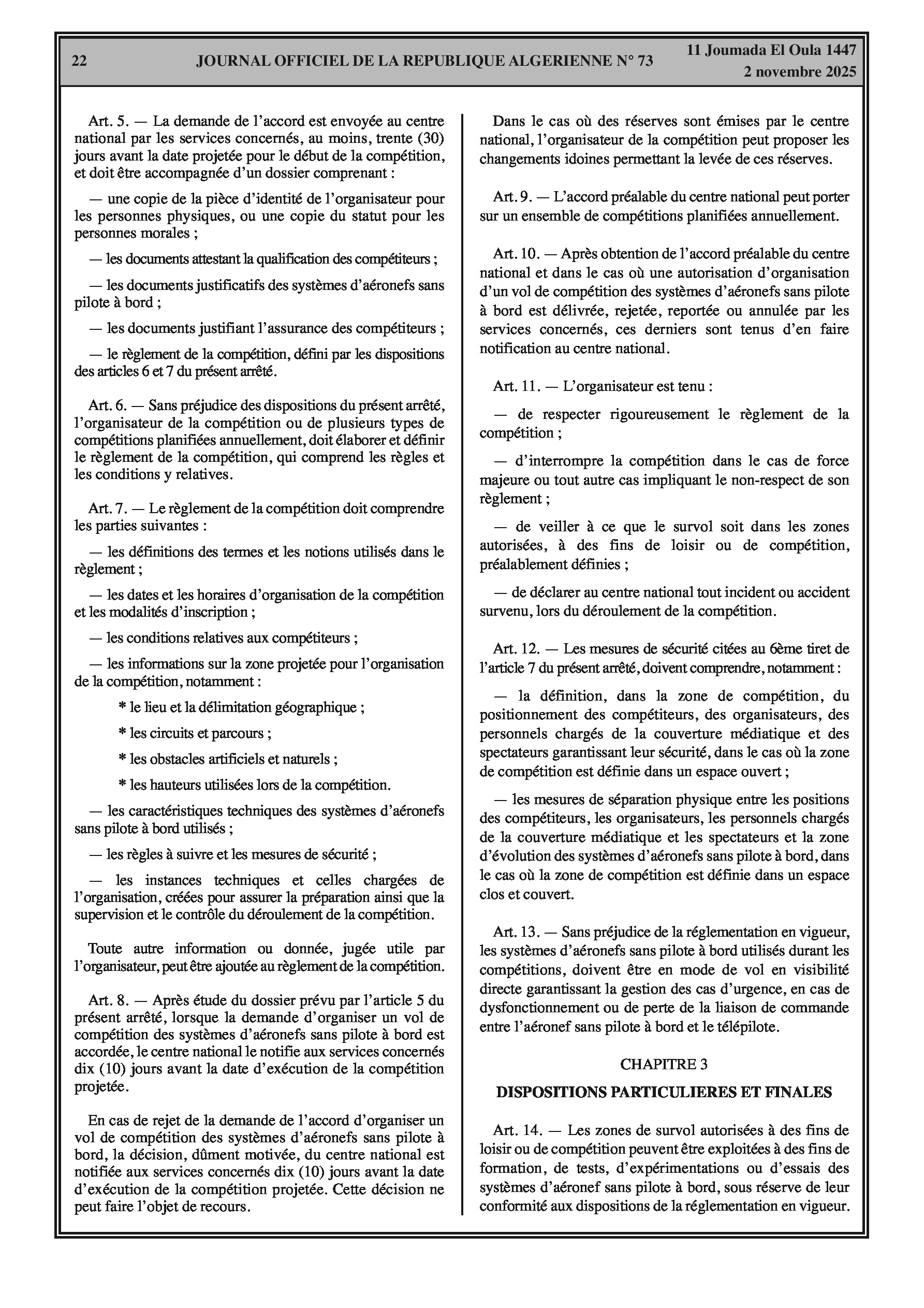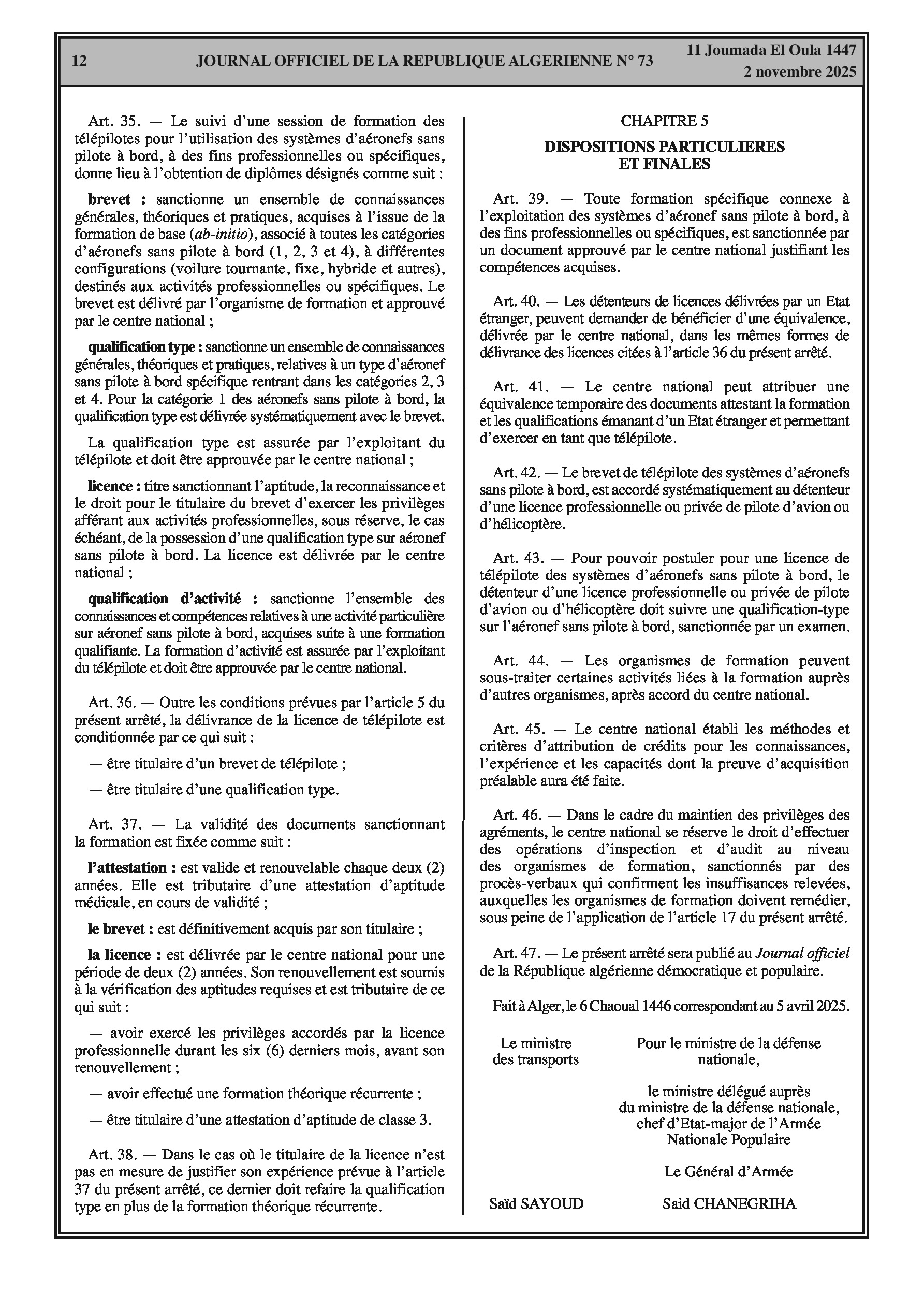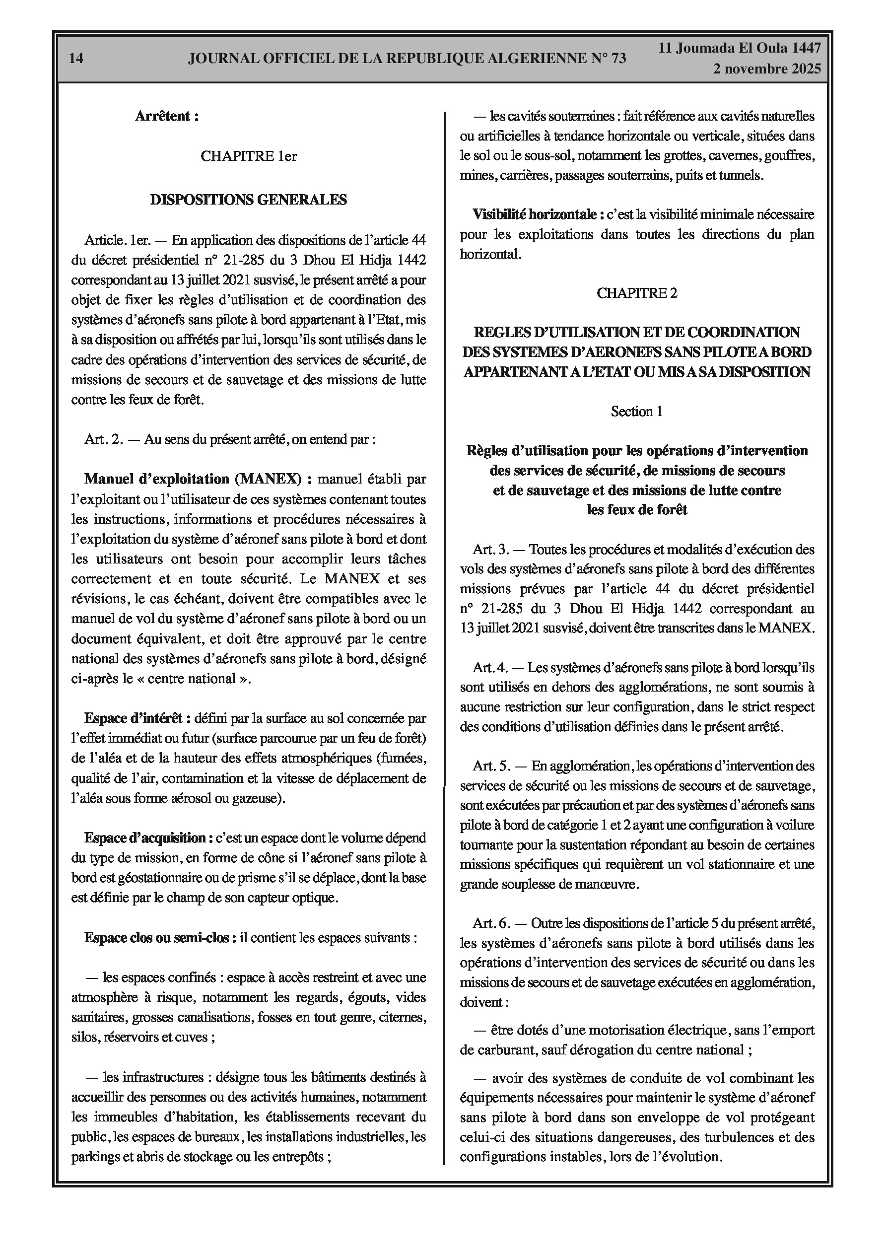 N°73 du Journal officiel de la République Algérienne Démocratique et Populaire publié le 02 novembre 2025: