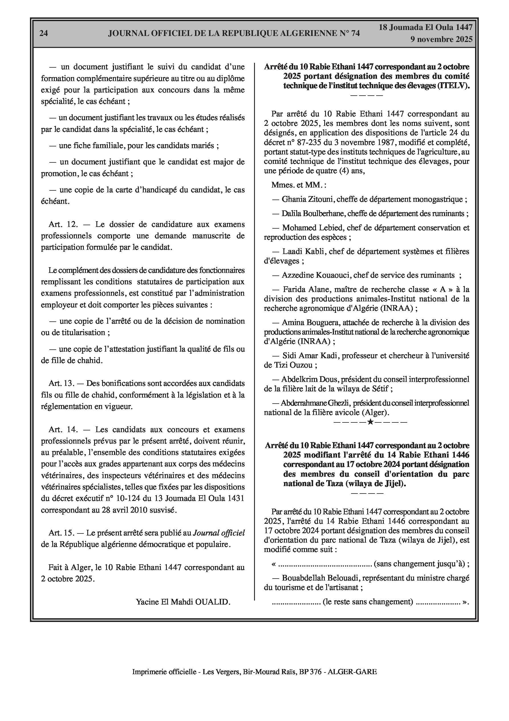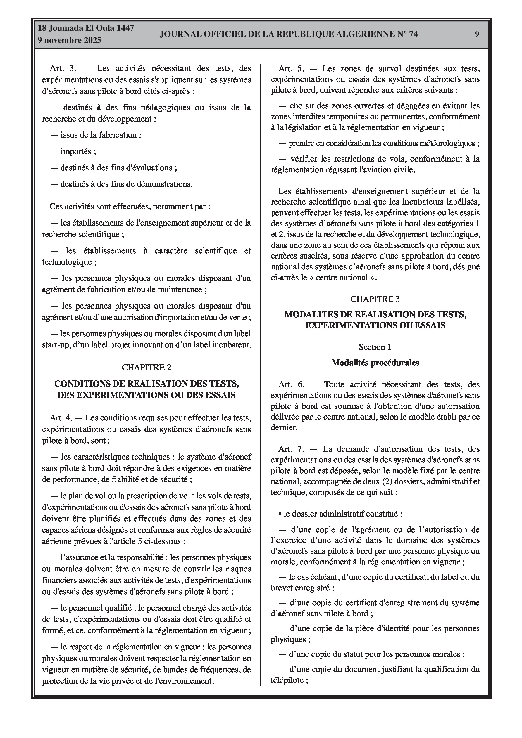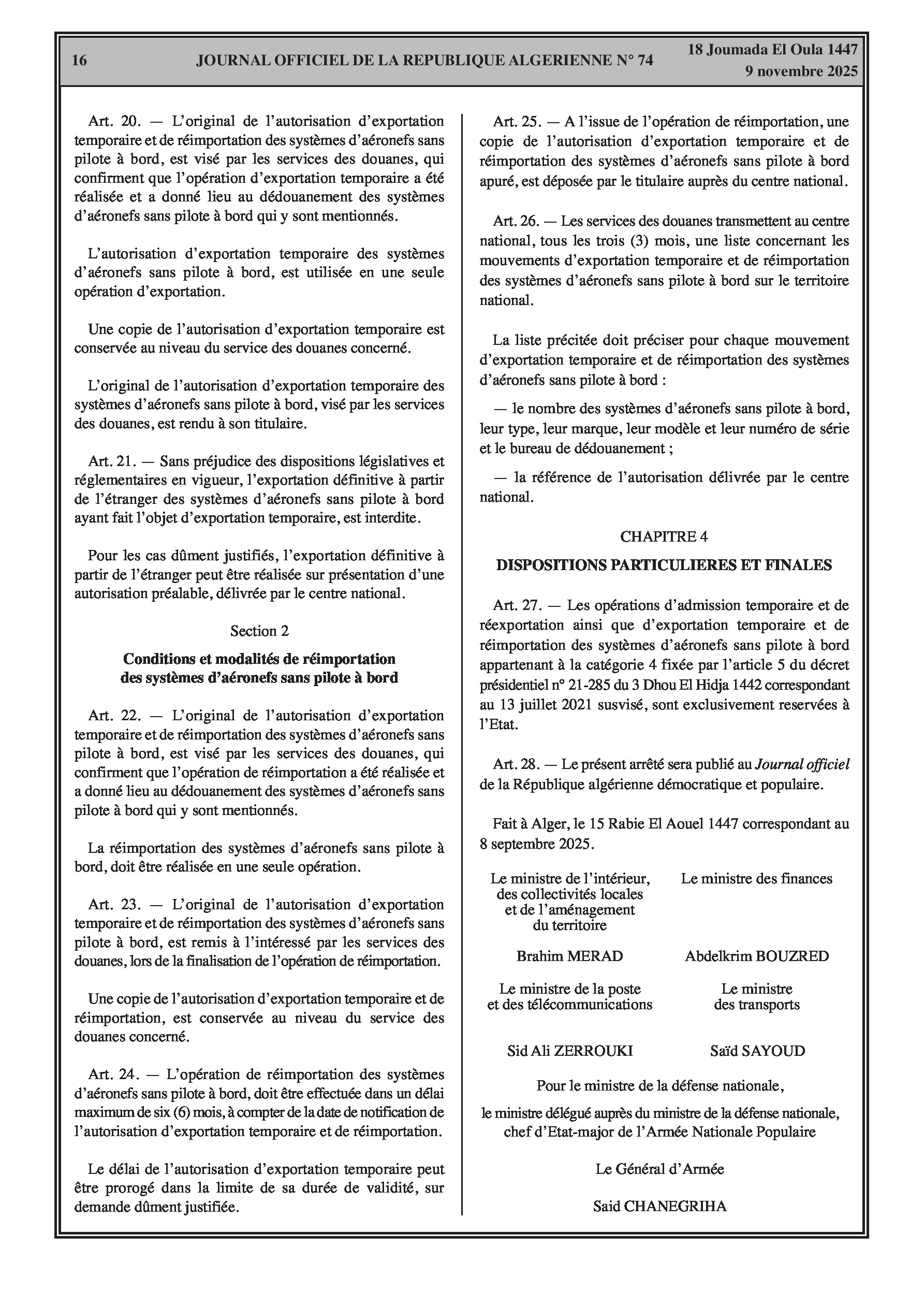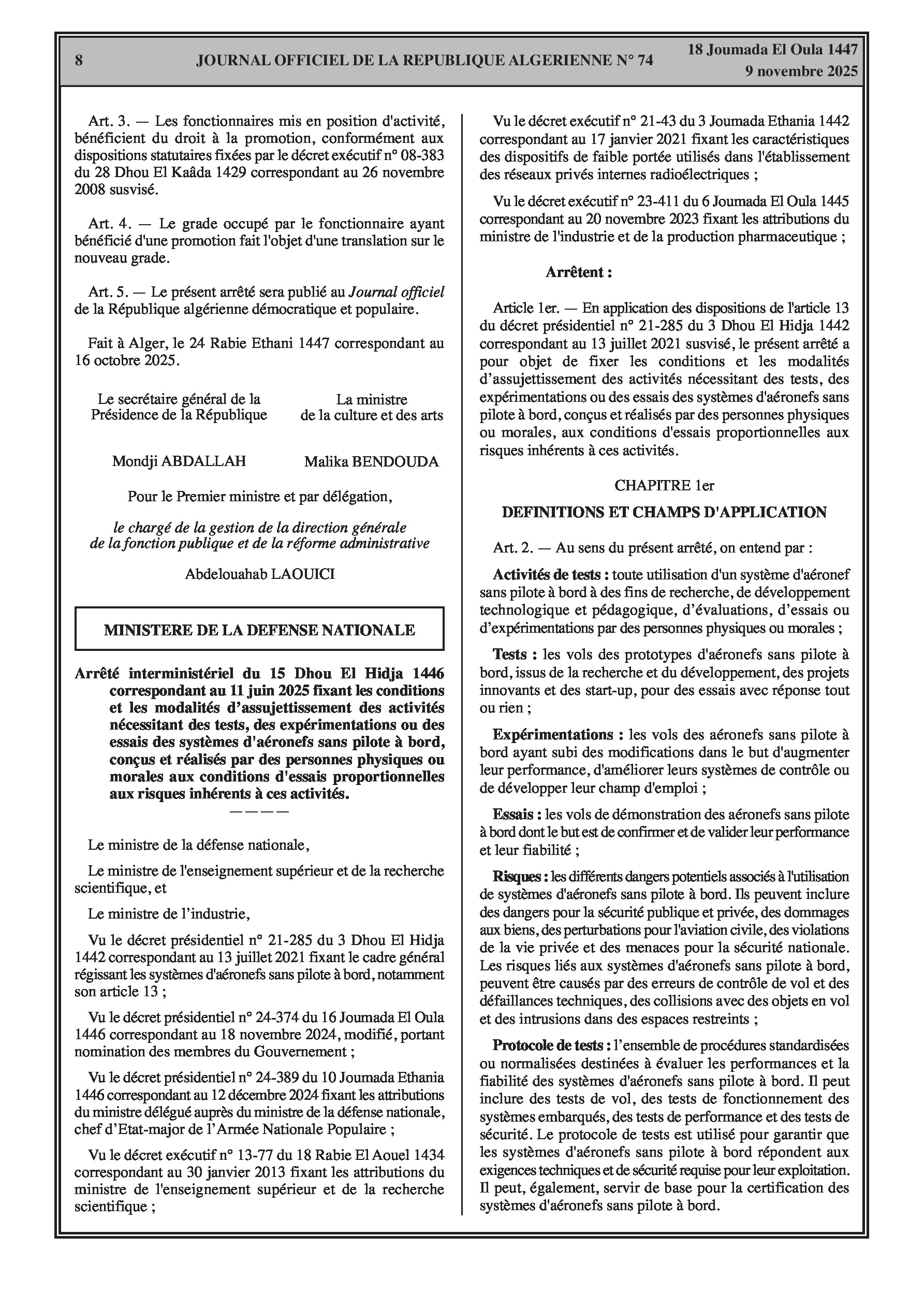 N°74 du Journal officiel de la République Algérienne Démocratique et Populaire publié le 09 novembre 2025: