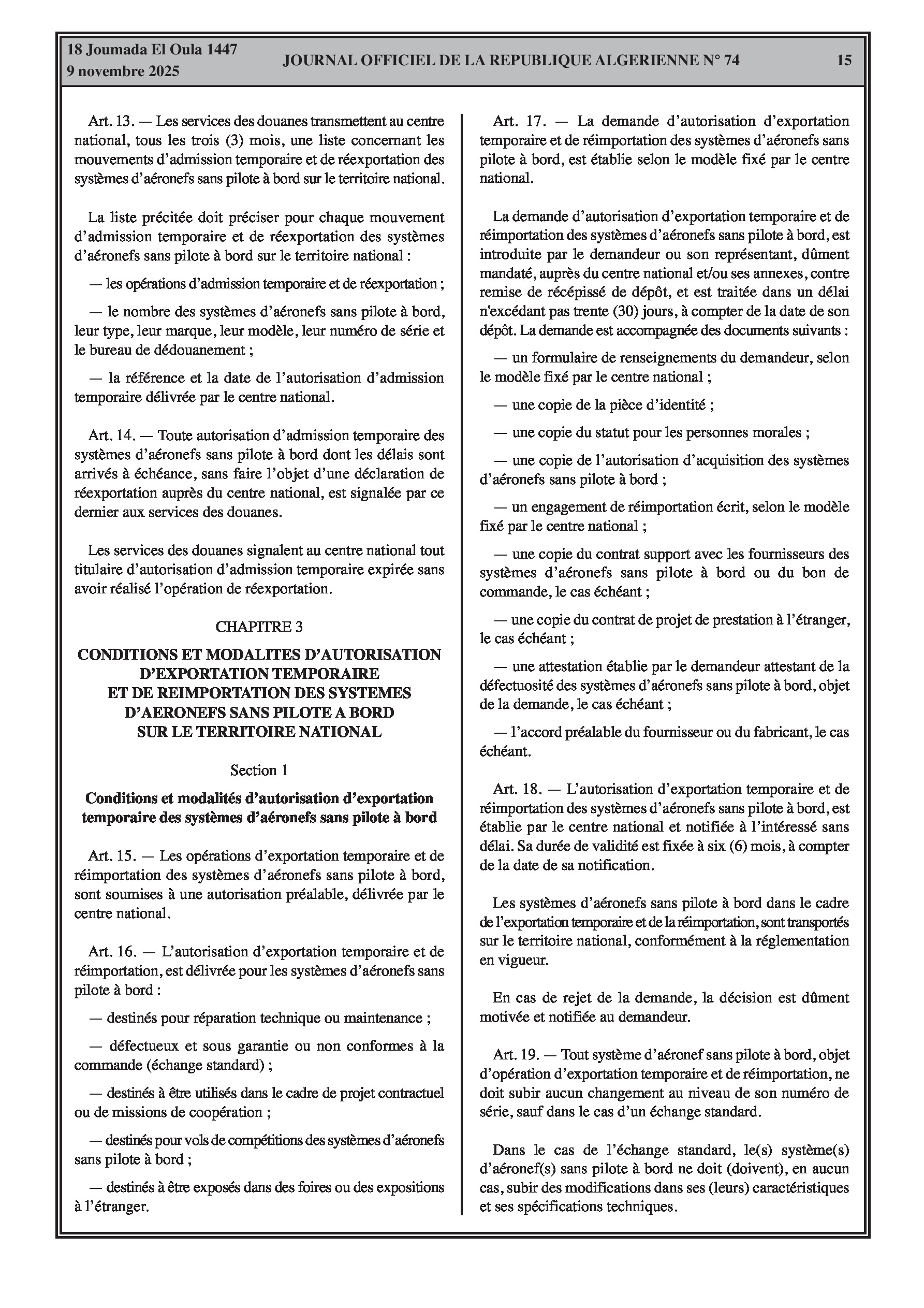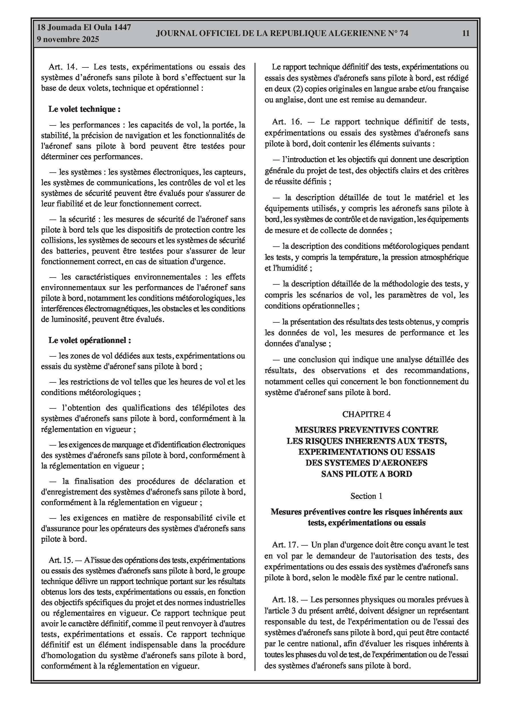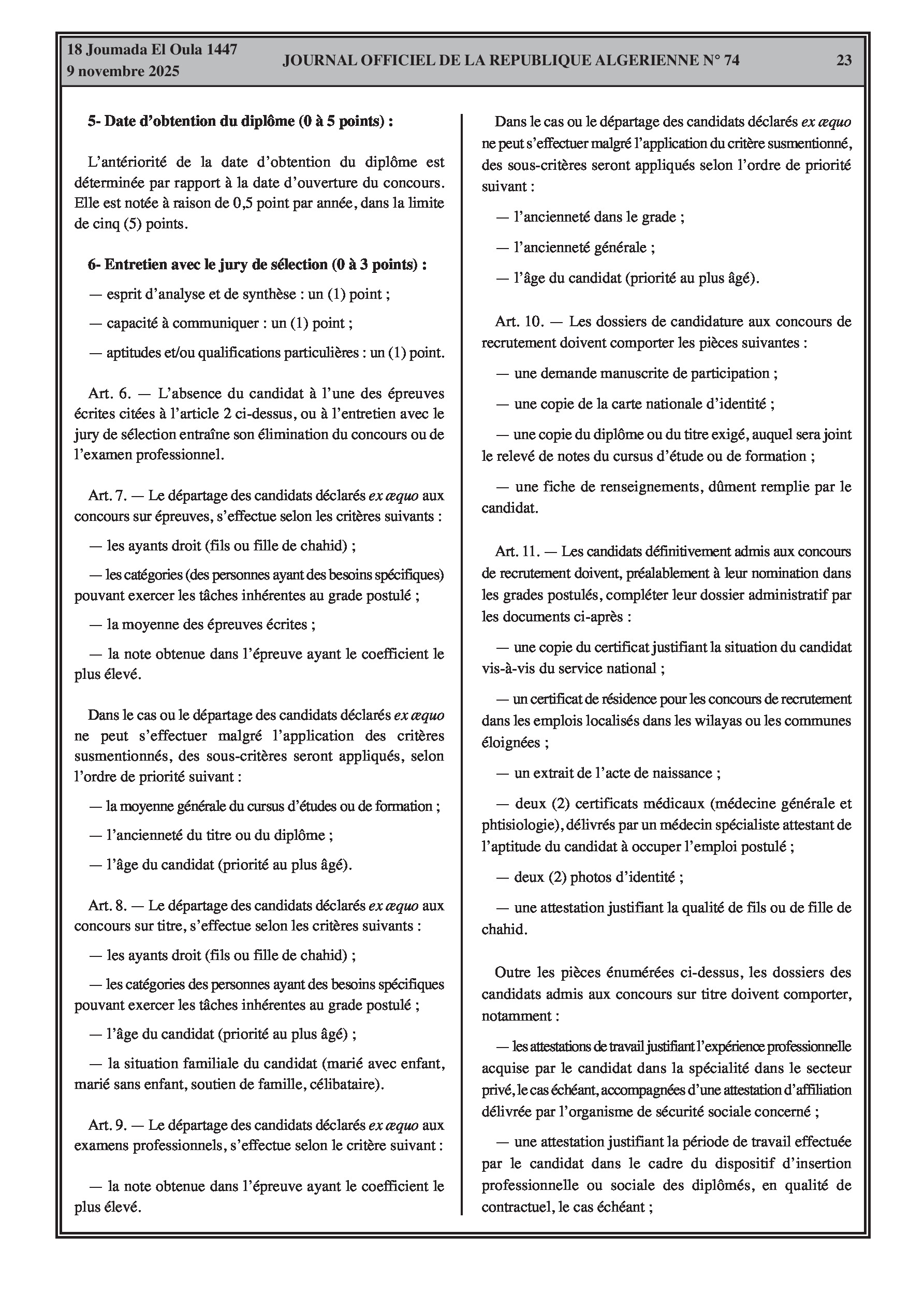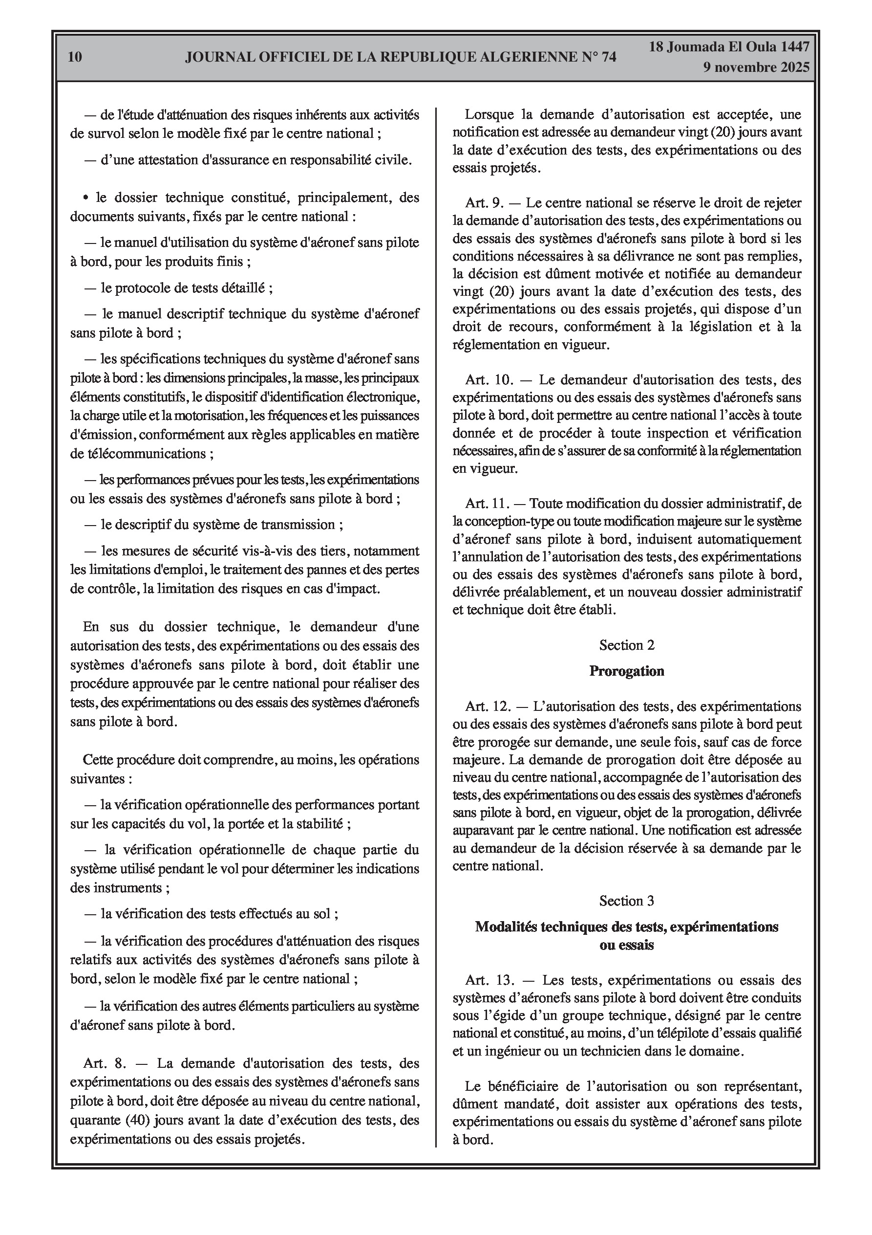 N°74 du Journal officiel de la République Algérienne Démocratique et Populaire publié le 09 novembre 2025: