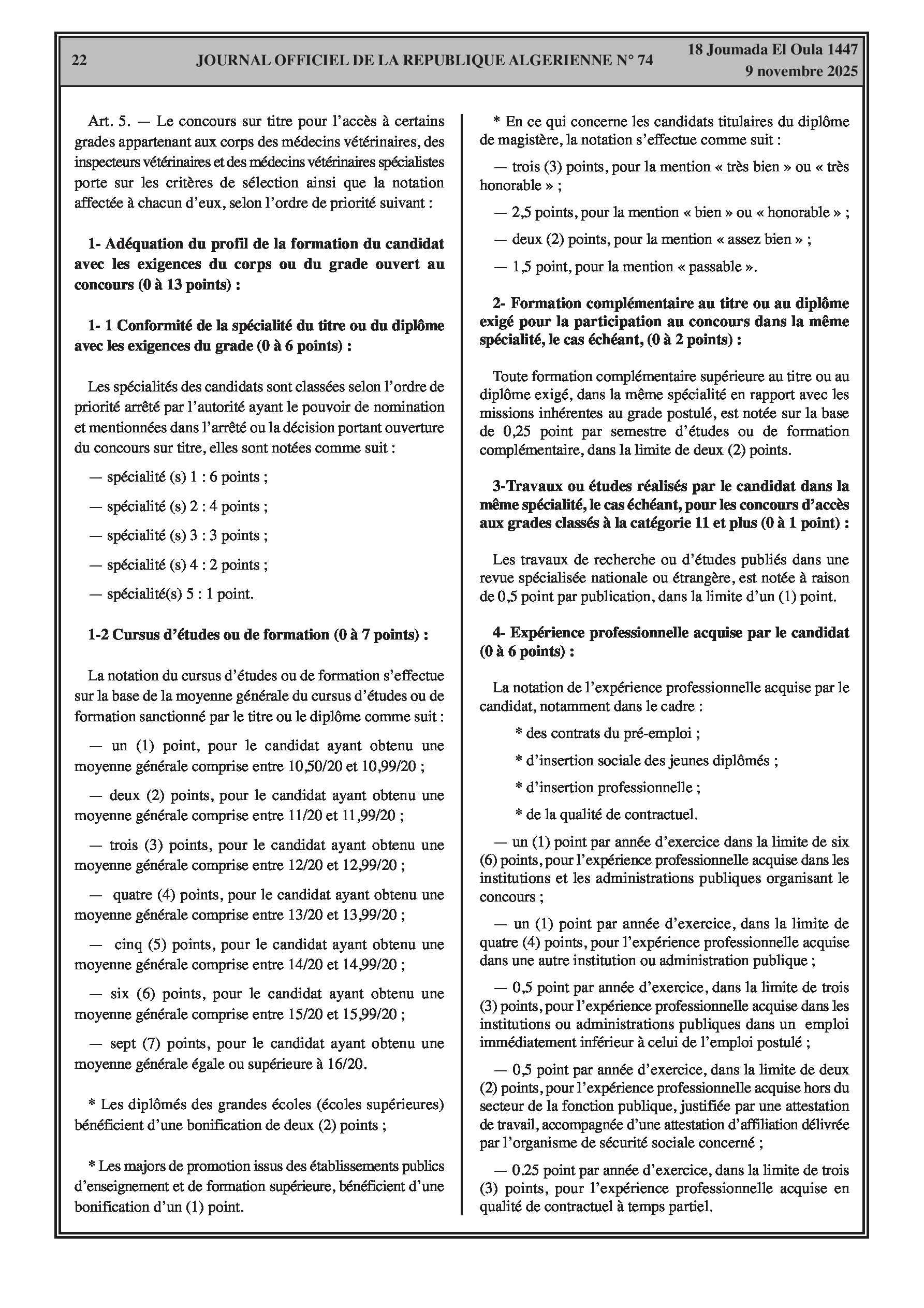 • **Agriculture**: Un cadre complet est fixé pour les concours et examens des vétérinaires, inspecteurs vétérinaires et vétérinaires spécialistes.