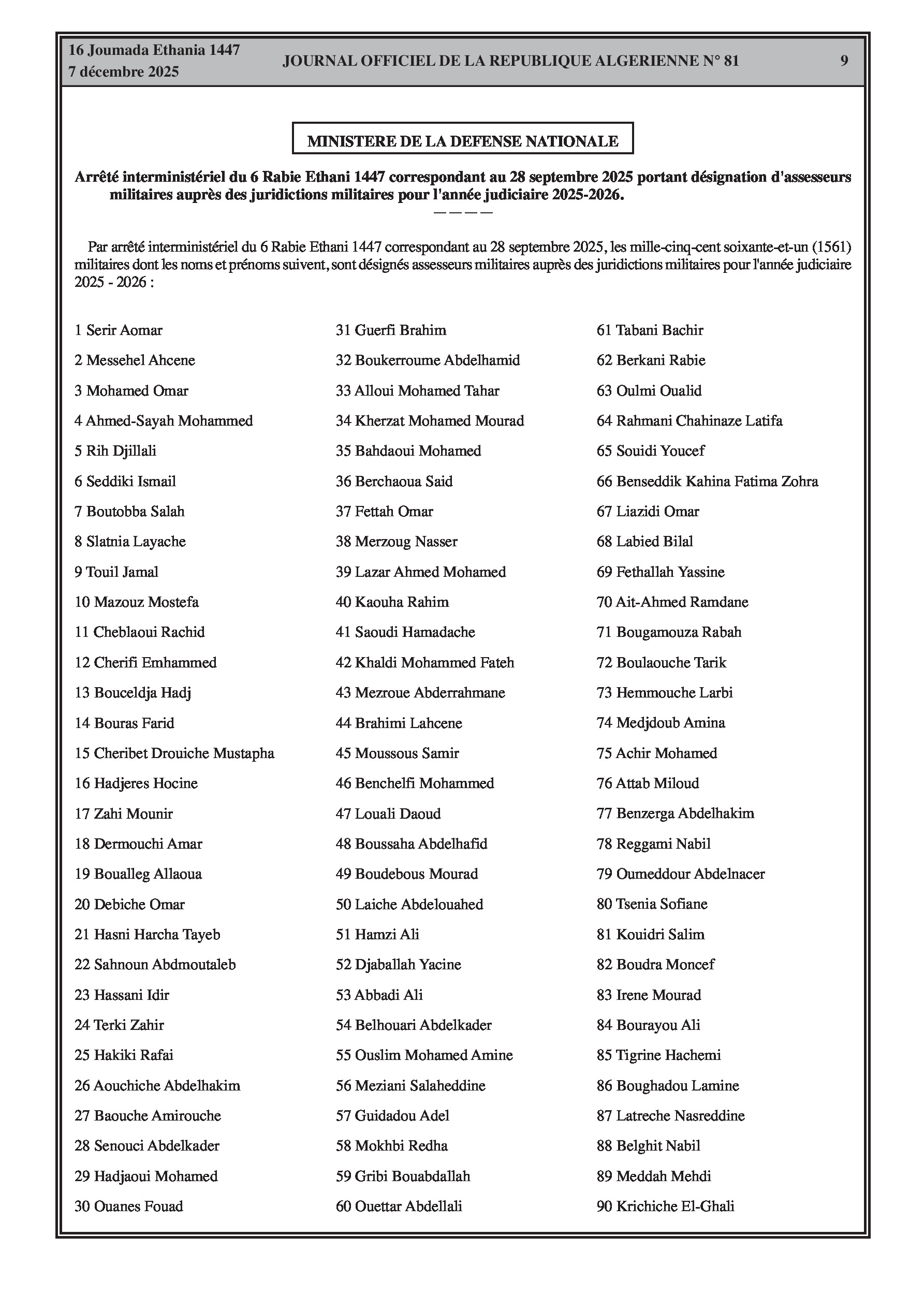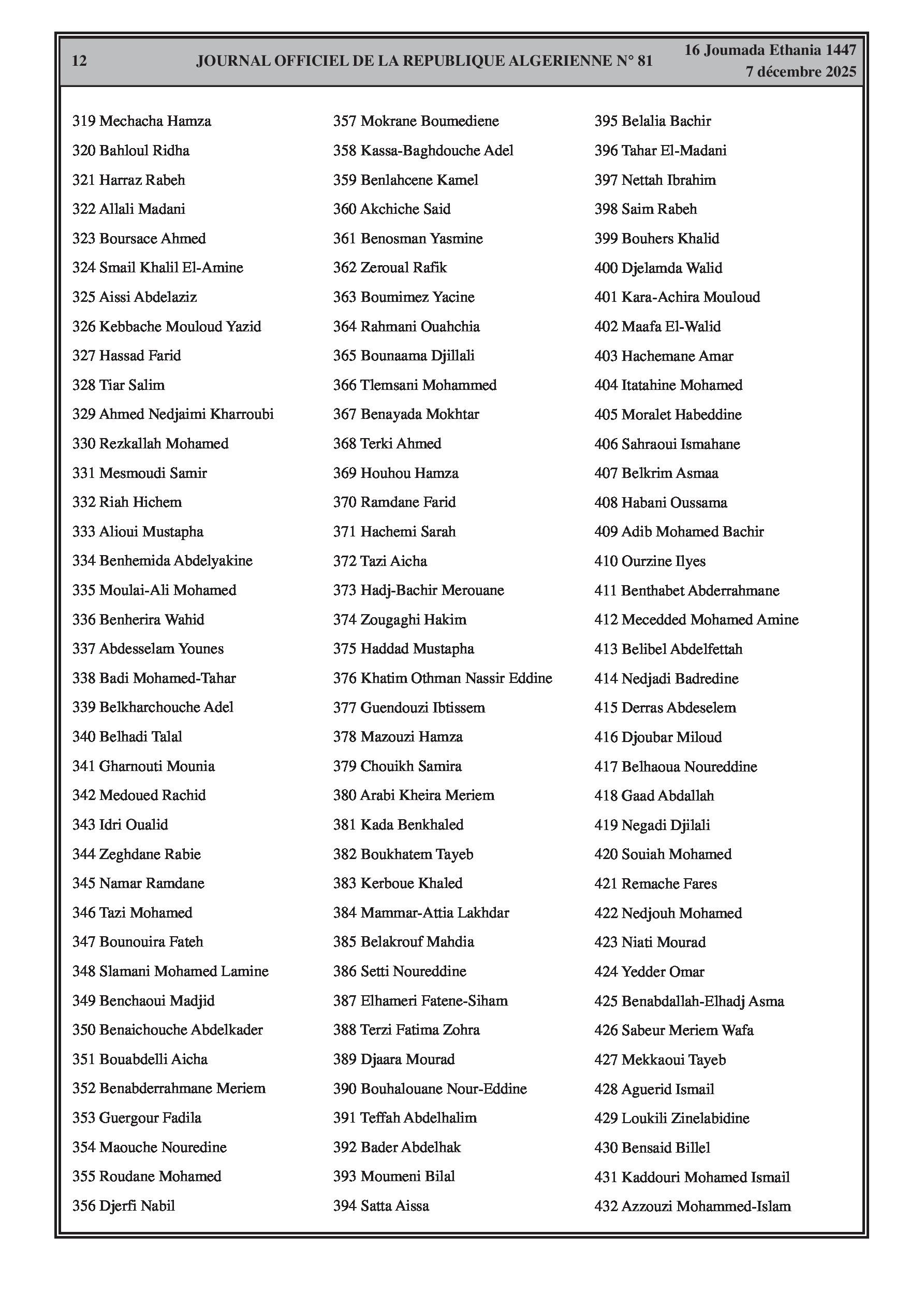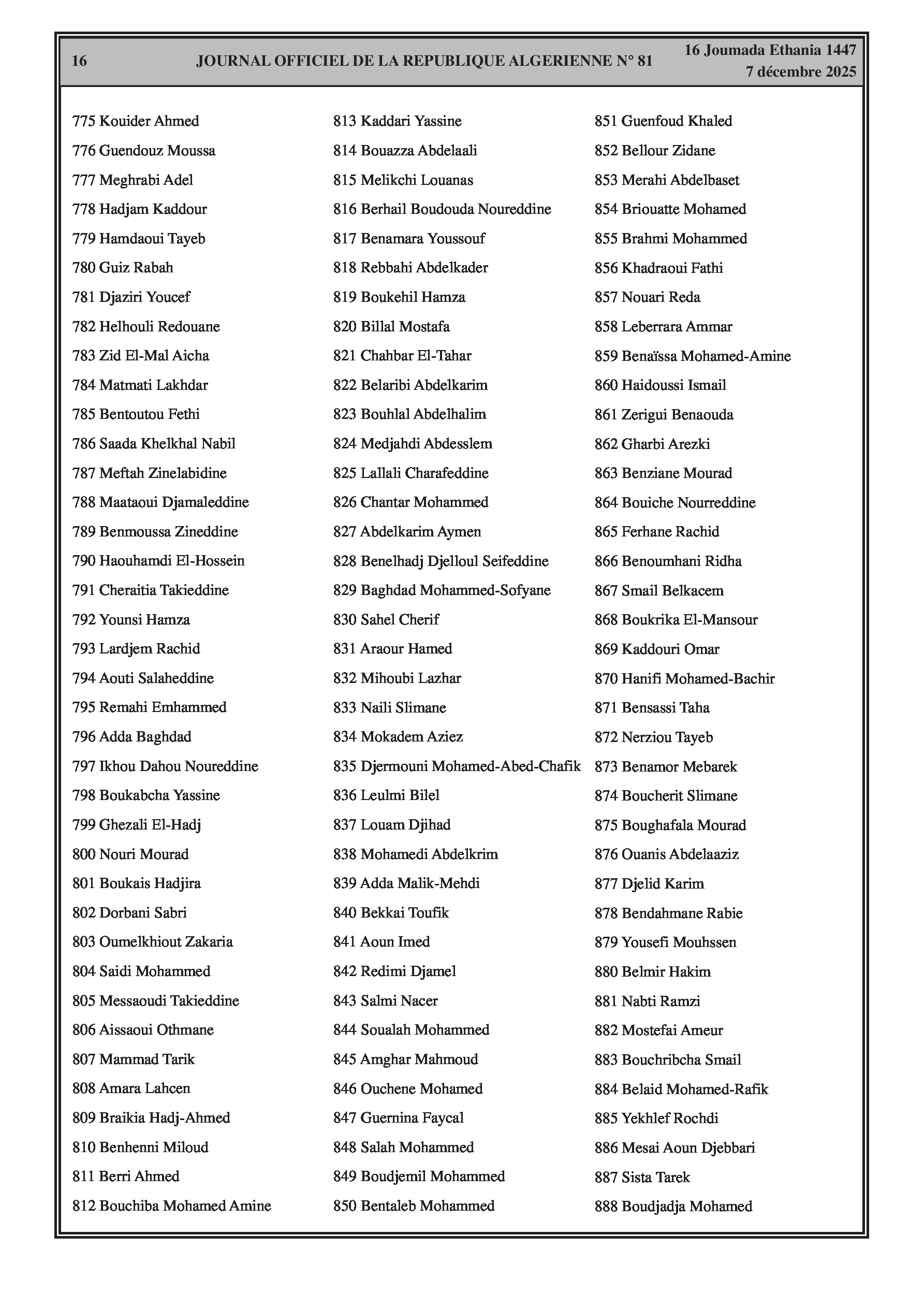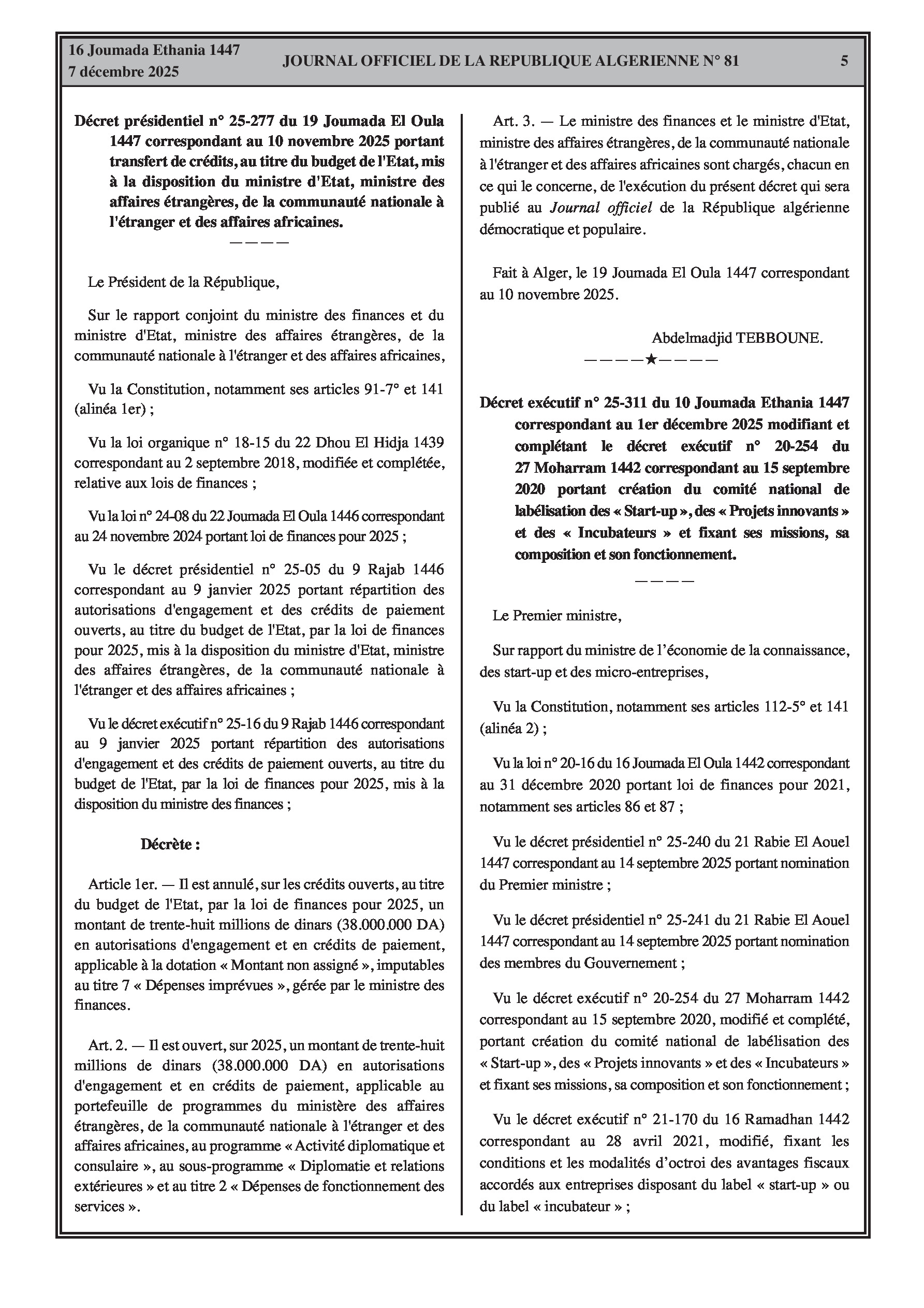 N°81 du Journal officiel de la République Algérienne Démocratique et Populaire publié le 07 décembre 2025: