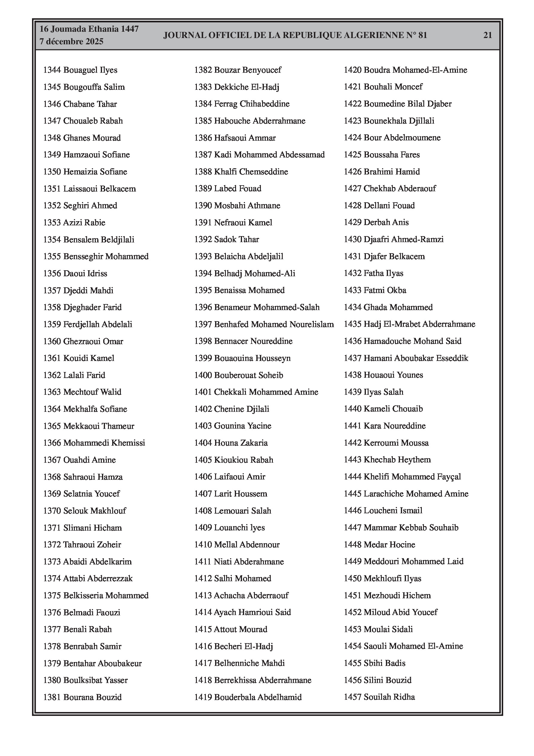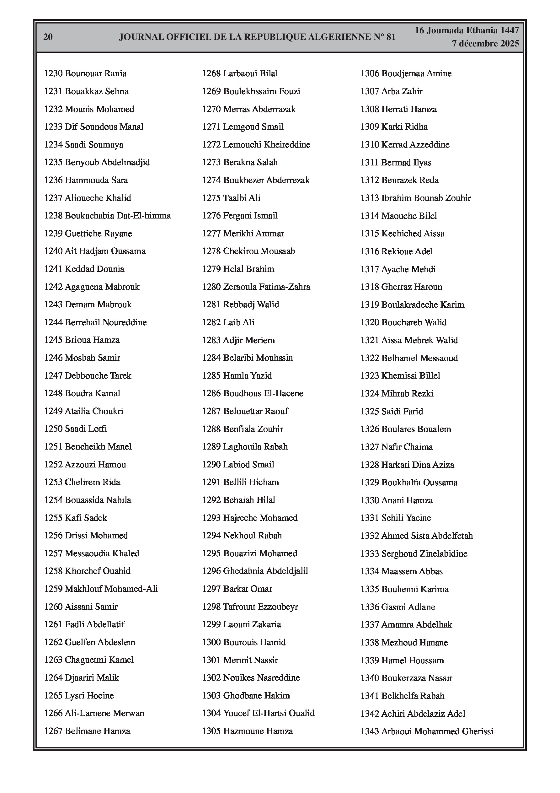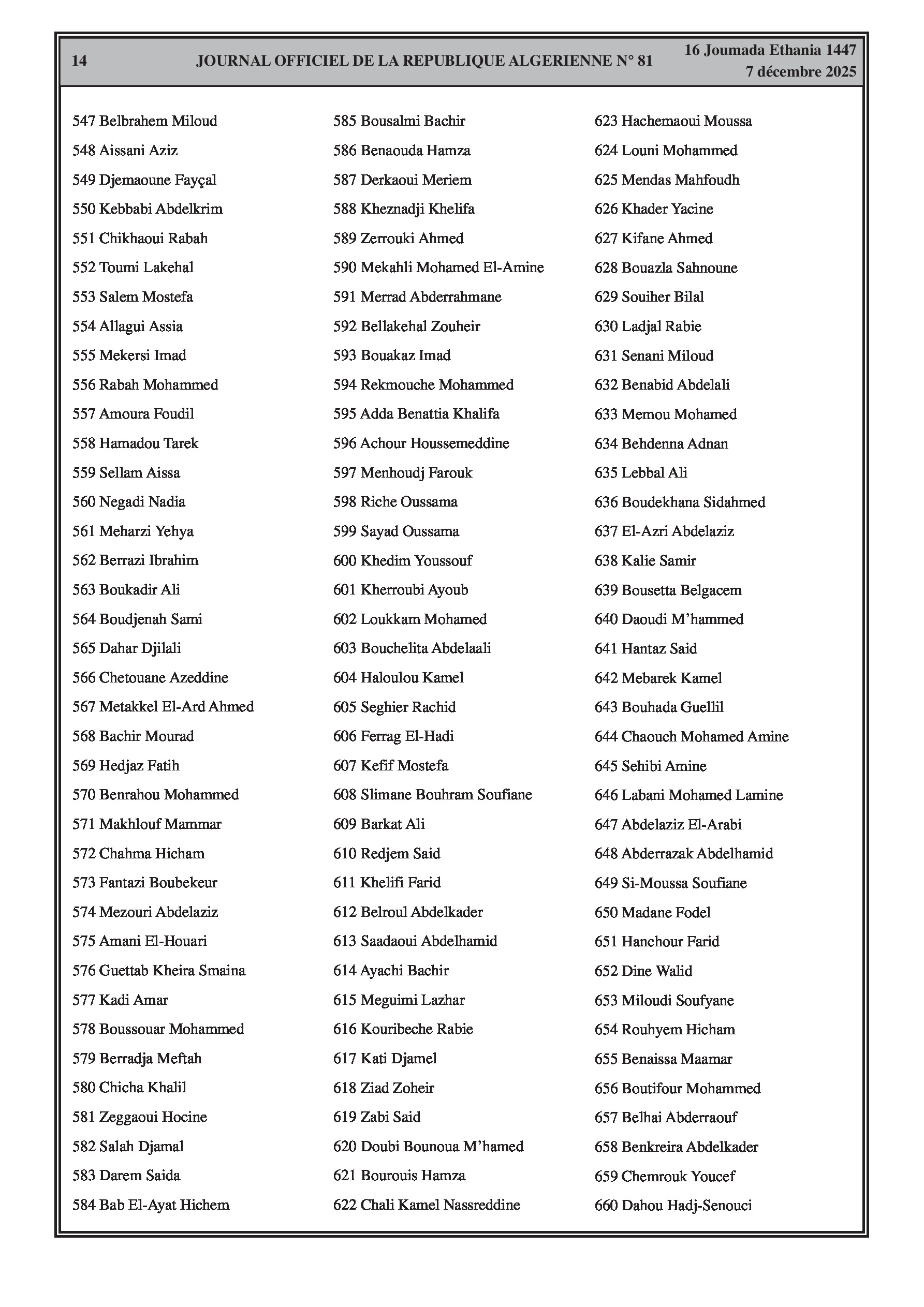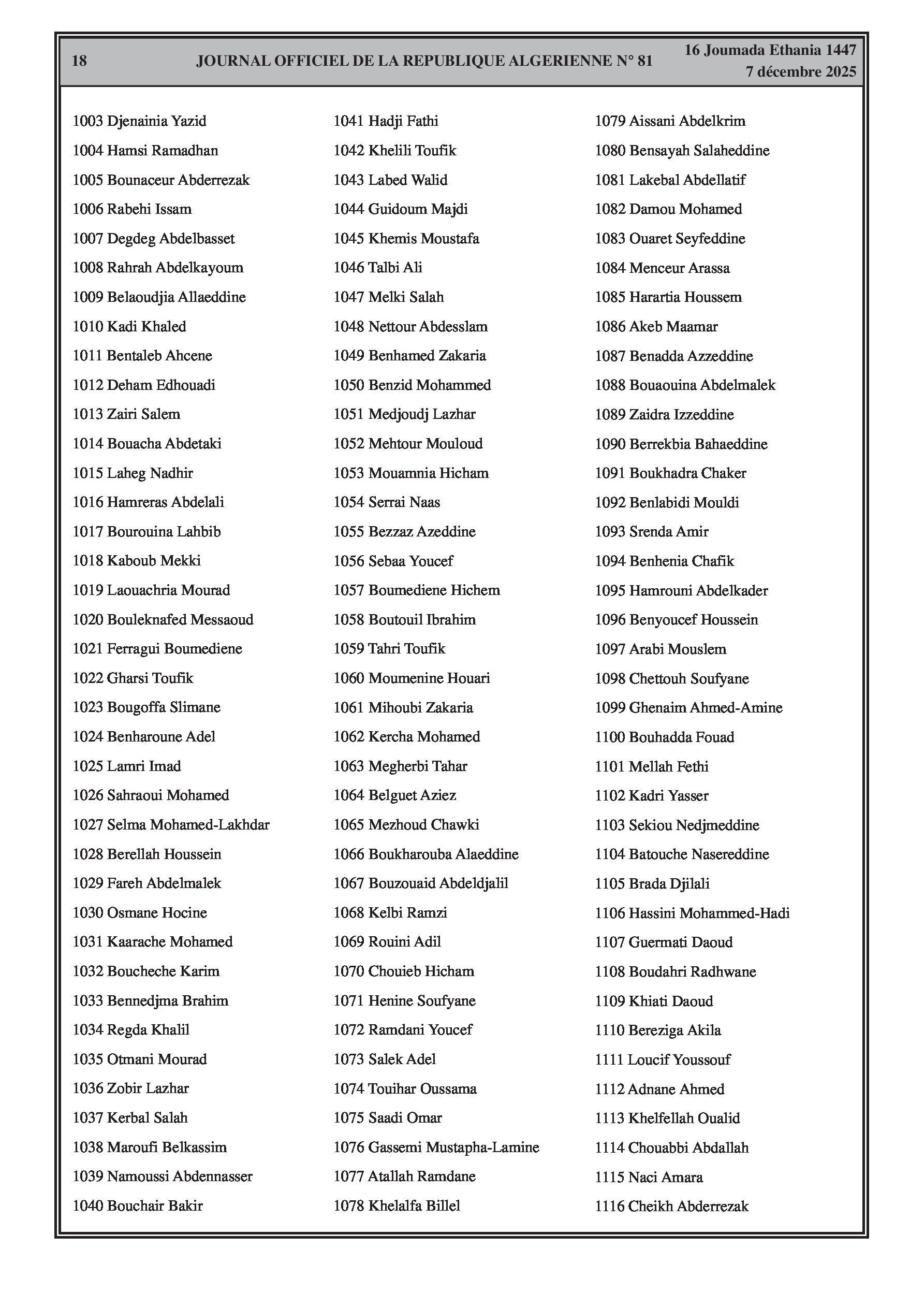 N°81 du Journal officiel de la République Algérienne Démocratique et Populaire publié le 07 décembre 2025: