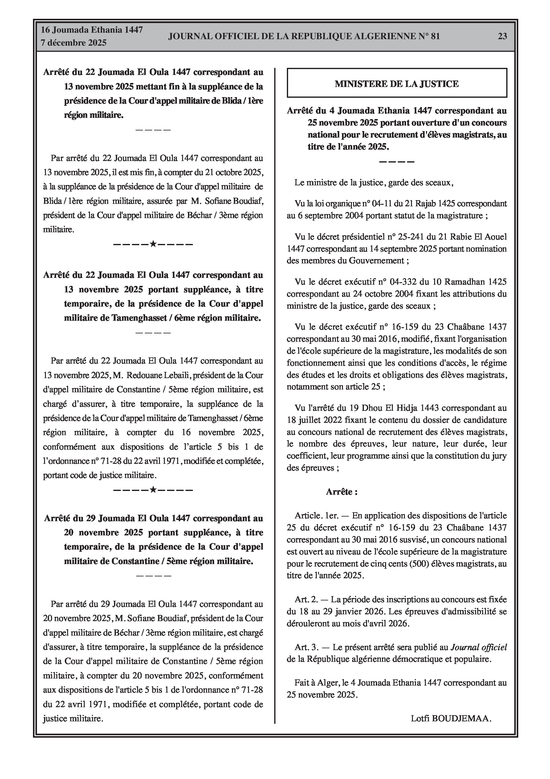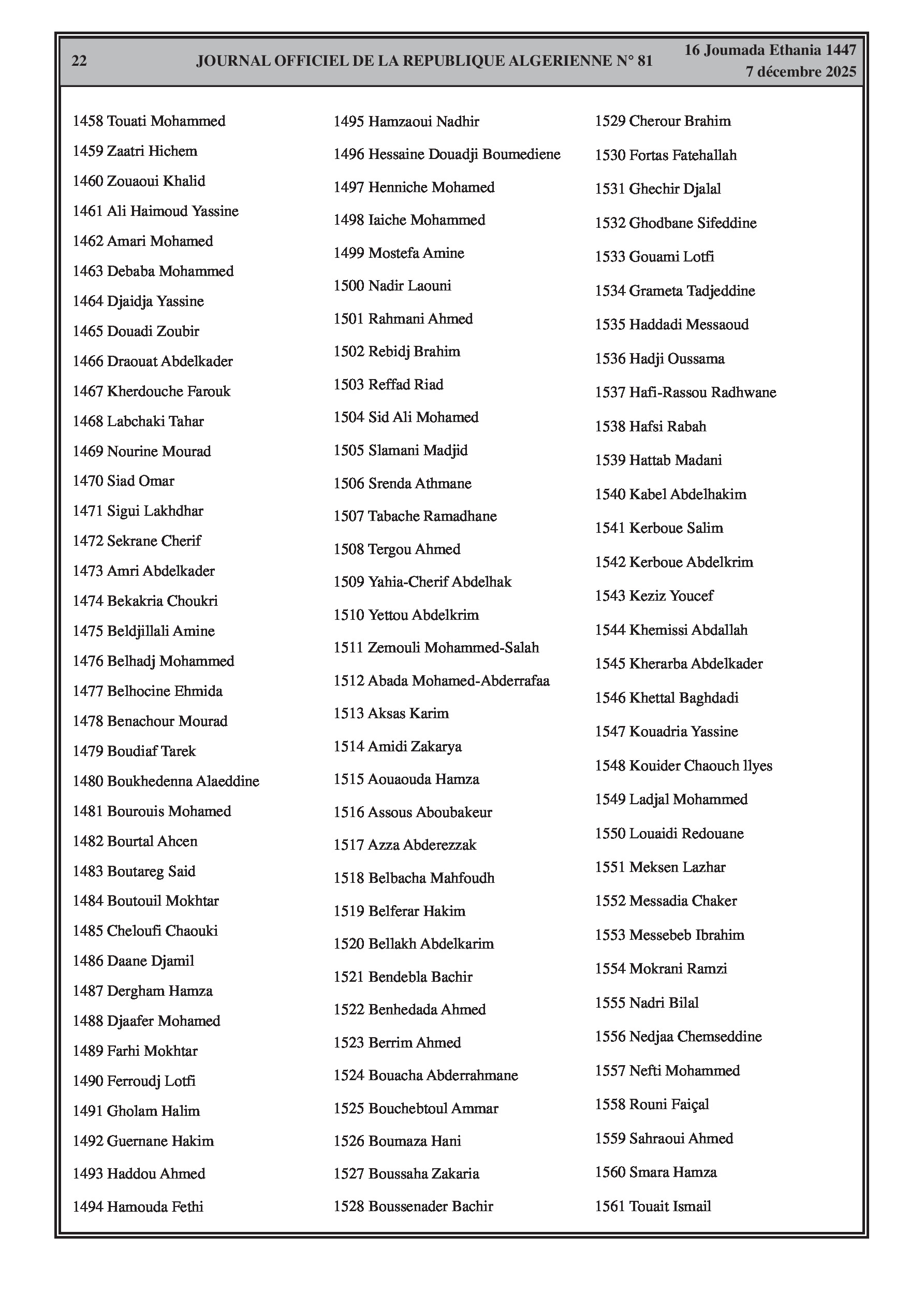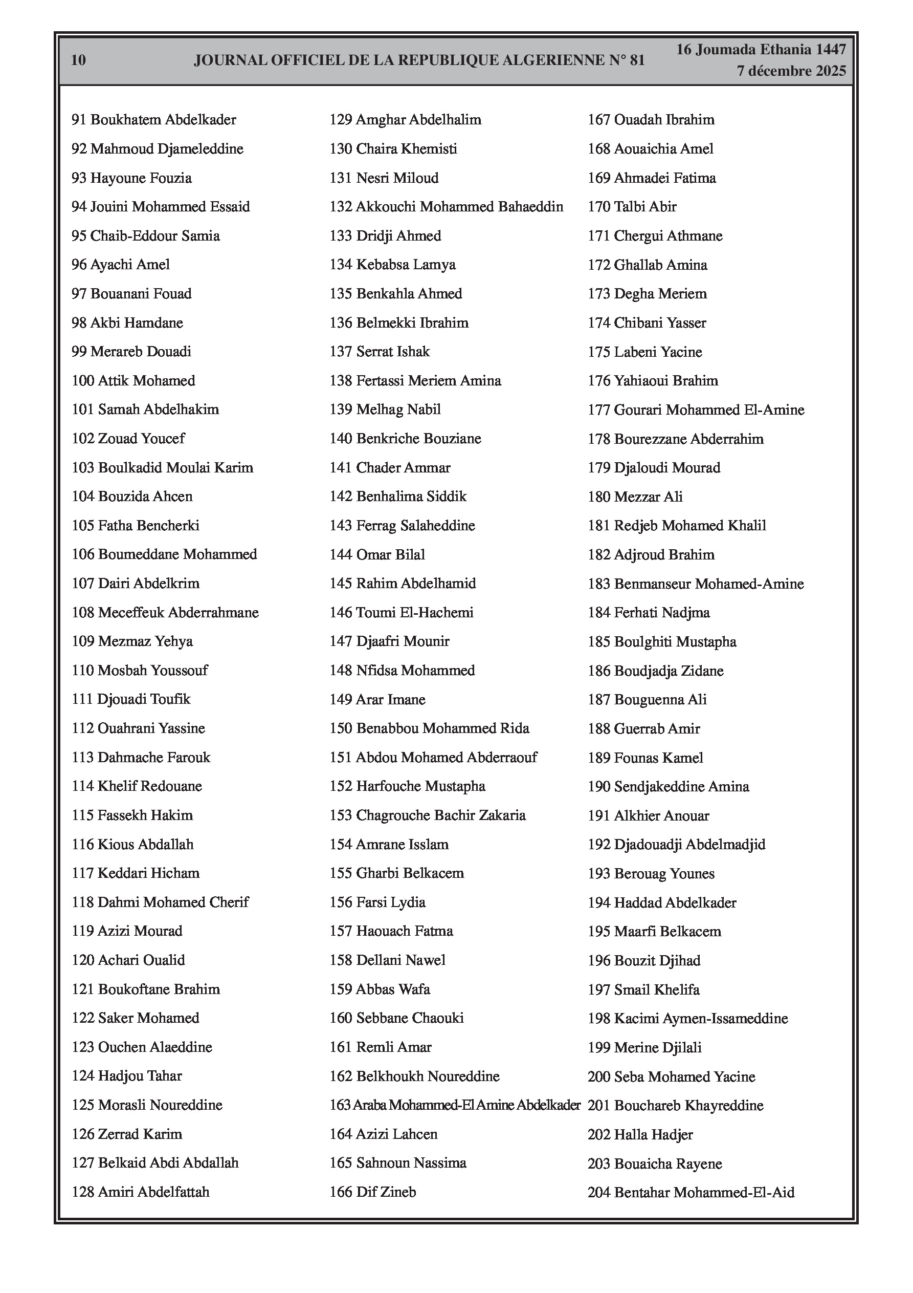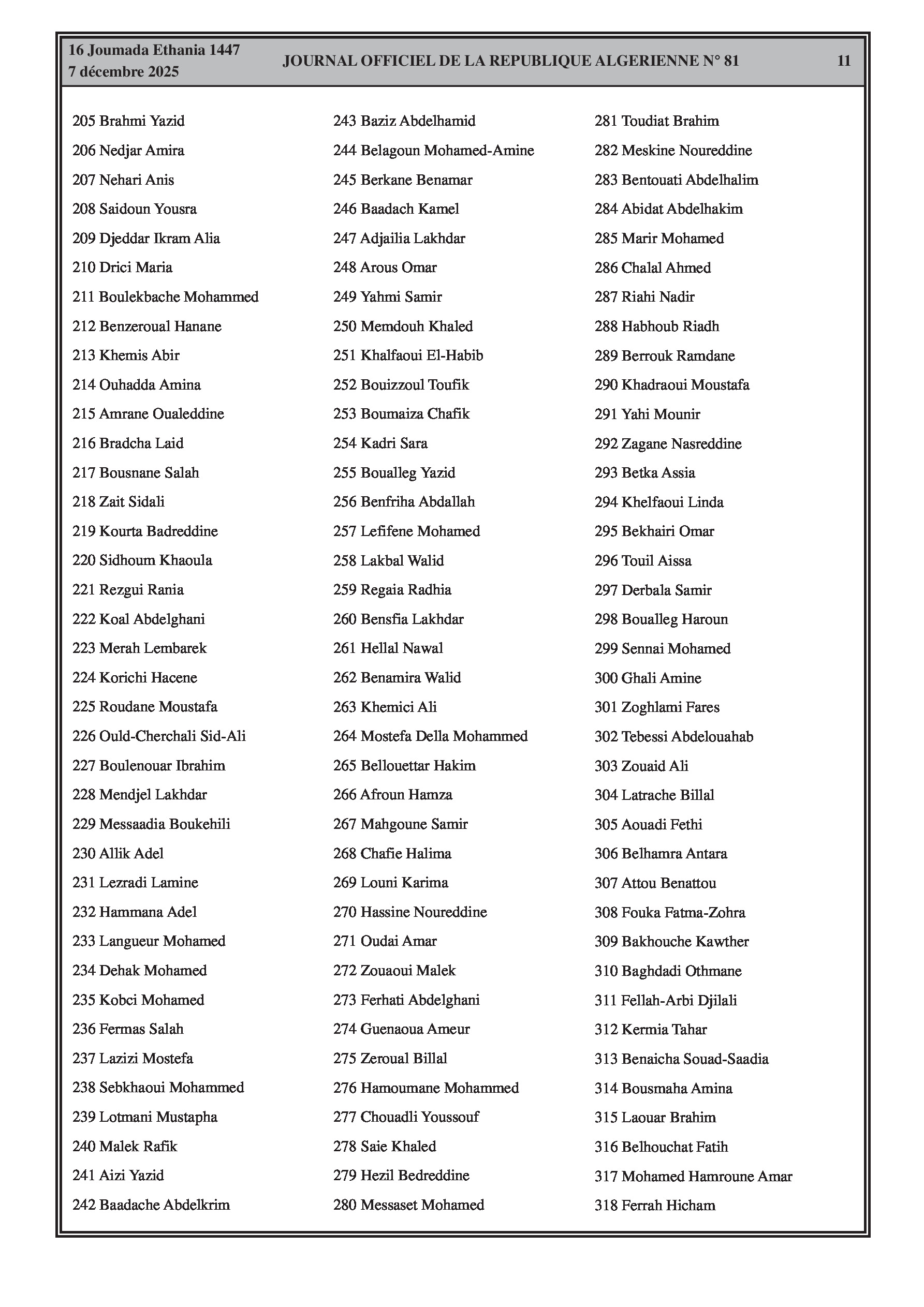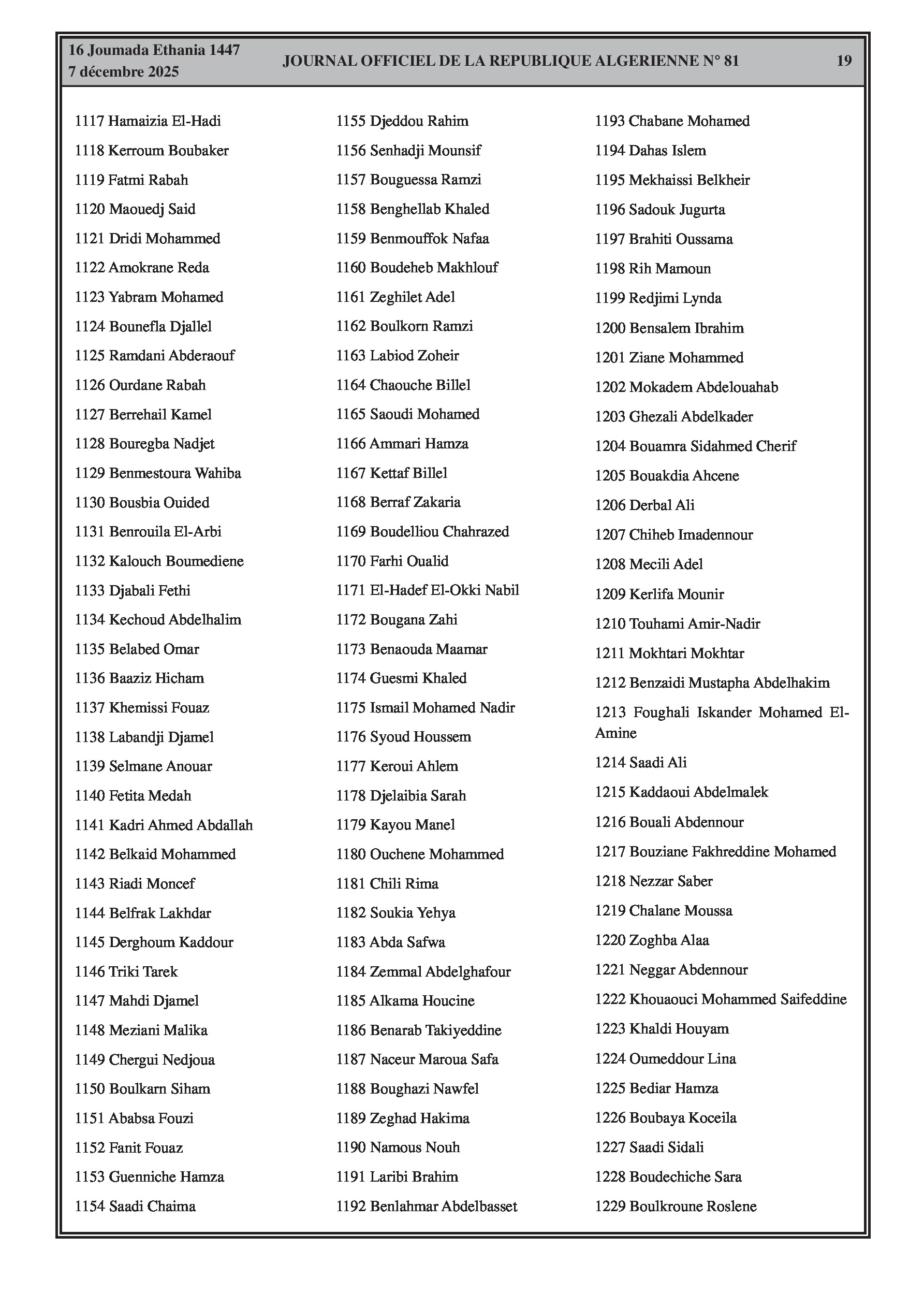 N°81 du Journal officiel de la République Algérienne Démocratique et Populaire publié le 07 décembre 2025: