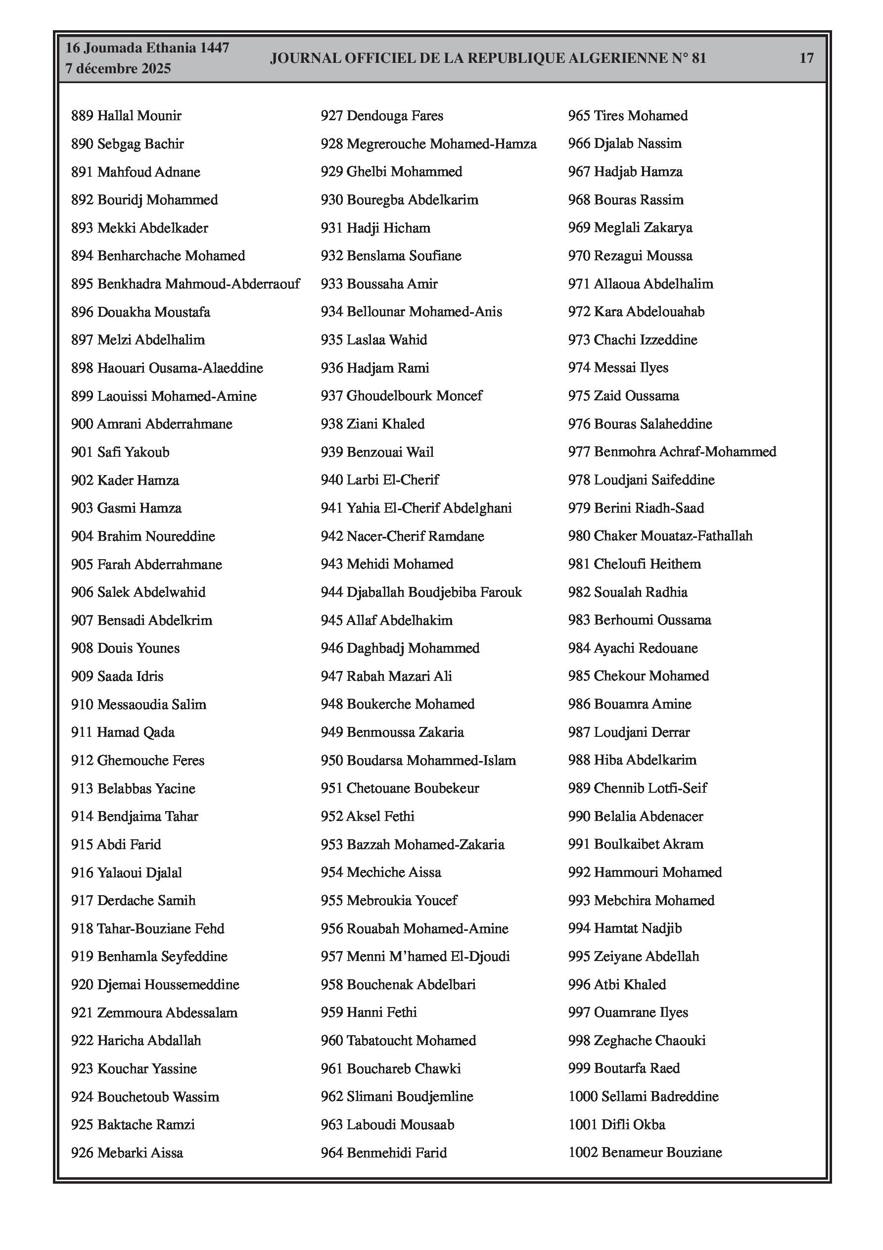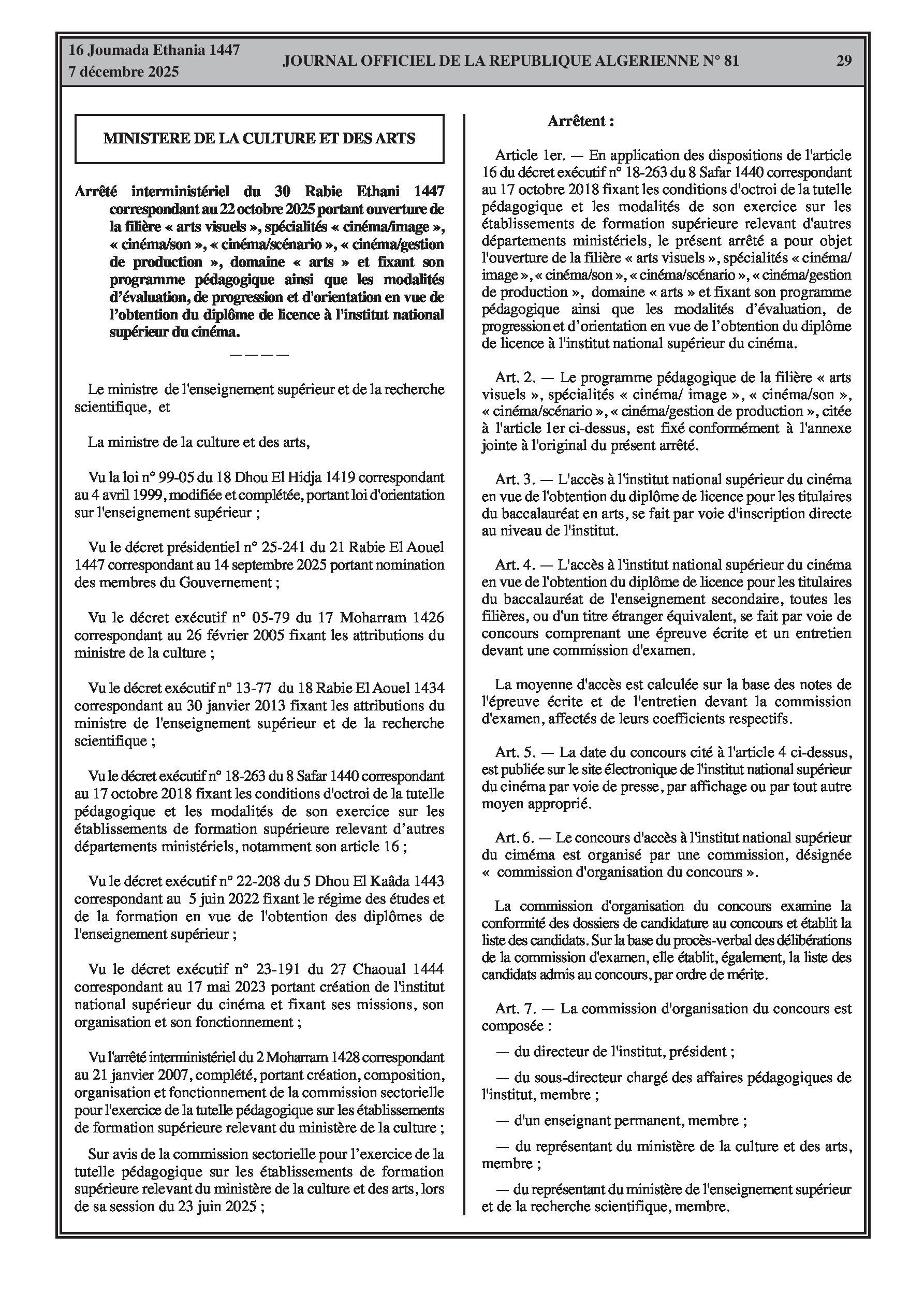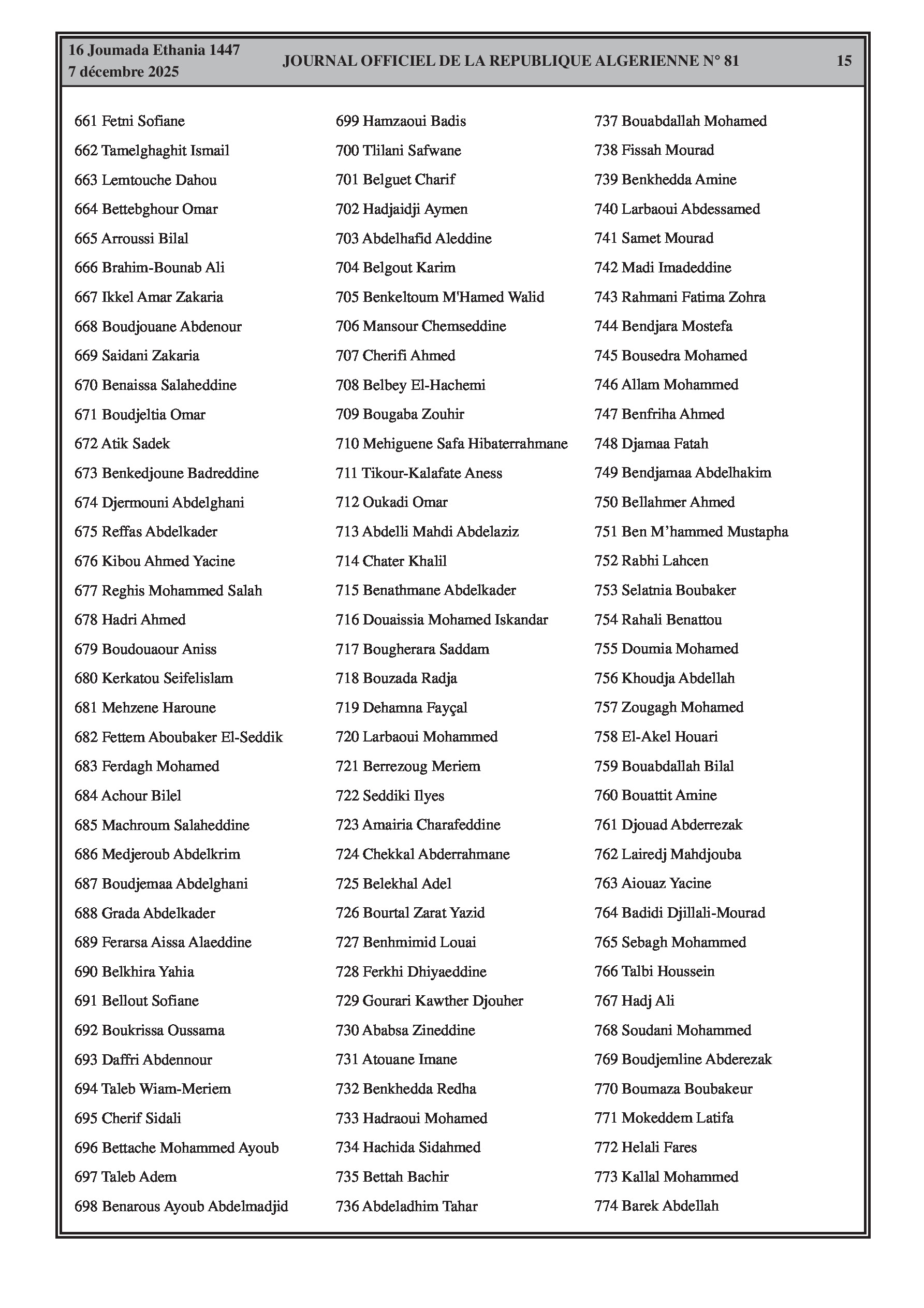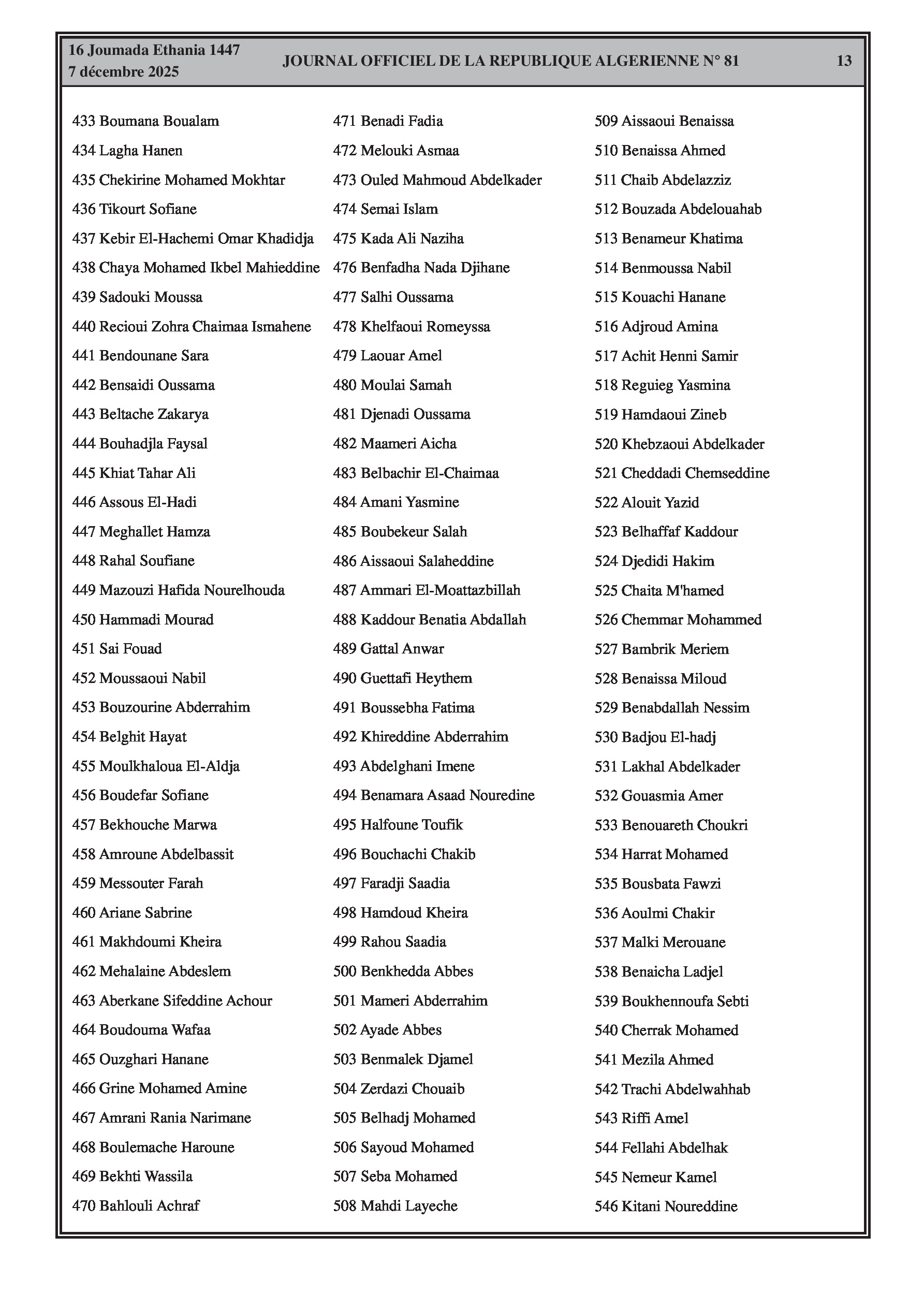 N°81 du Journal officiel de la République Algérienne Démocratique et Populaire publié le 07 décembre 2025: