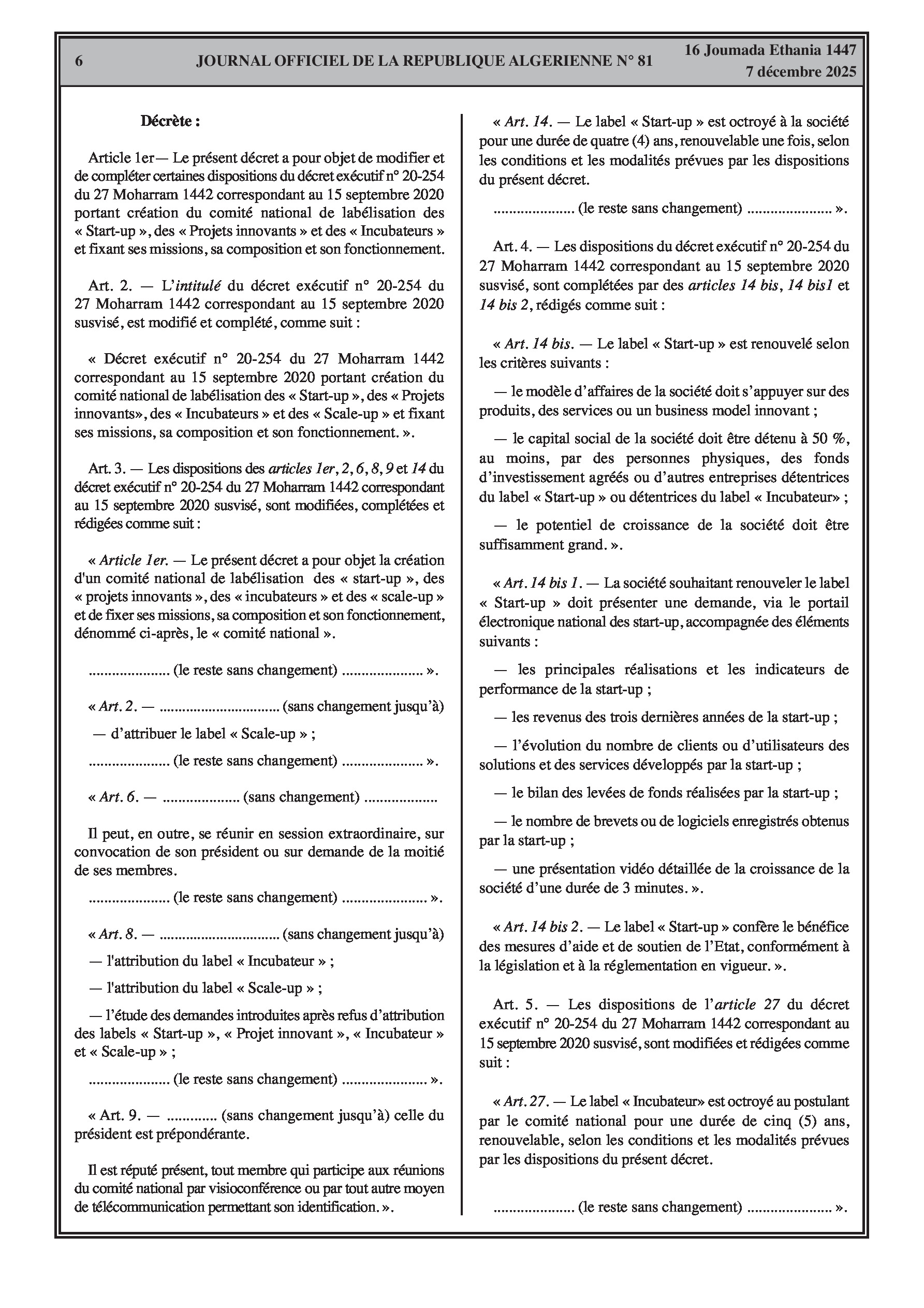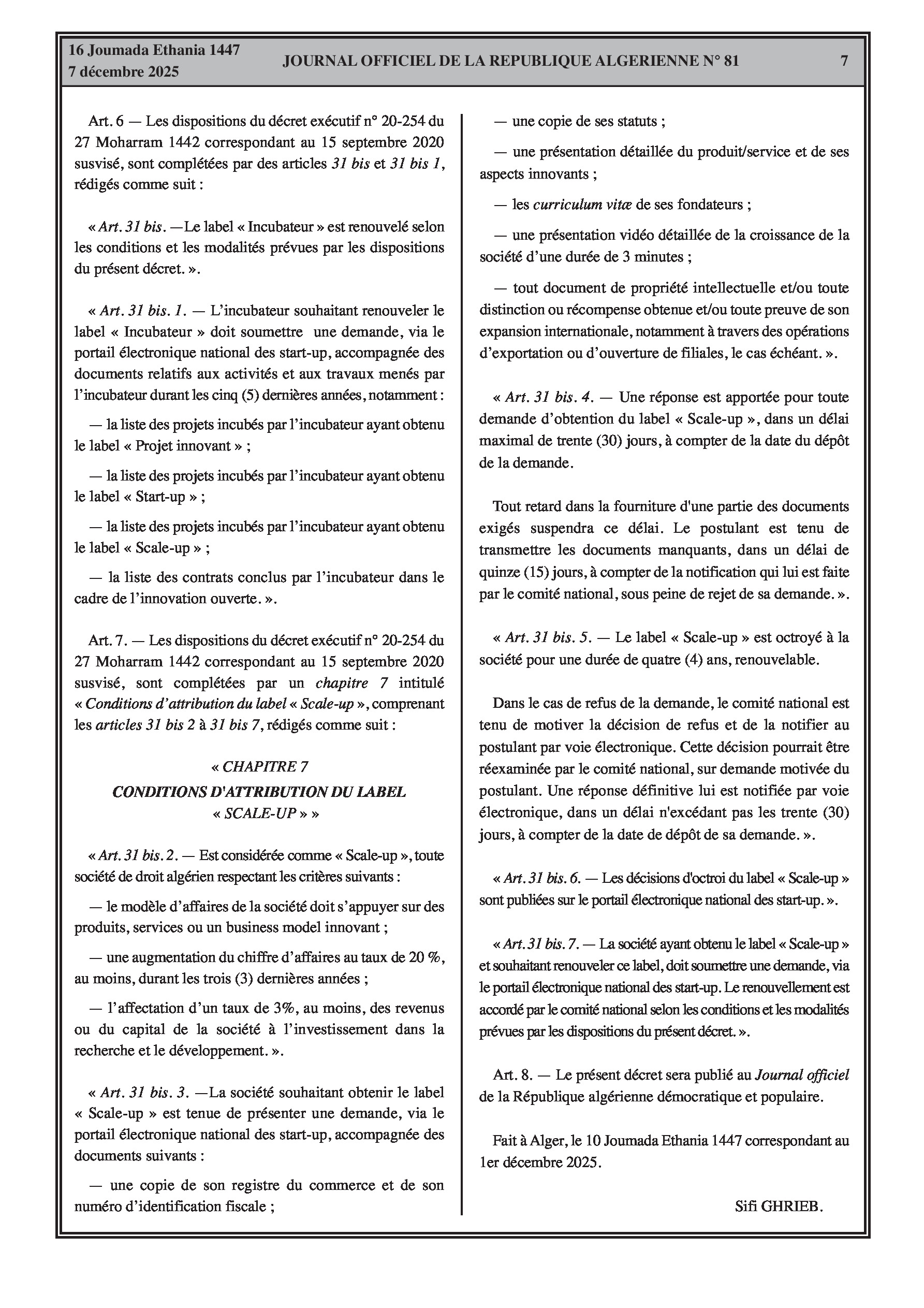 Le numéro 81 apporte des changements majeurs : nouveau label "Scale-up" pour les startups, recrutement de 500 élèves magistrats, classement de la Basilique d'Annaba et nomination du chef de cabinet du Premier ministre.
